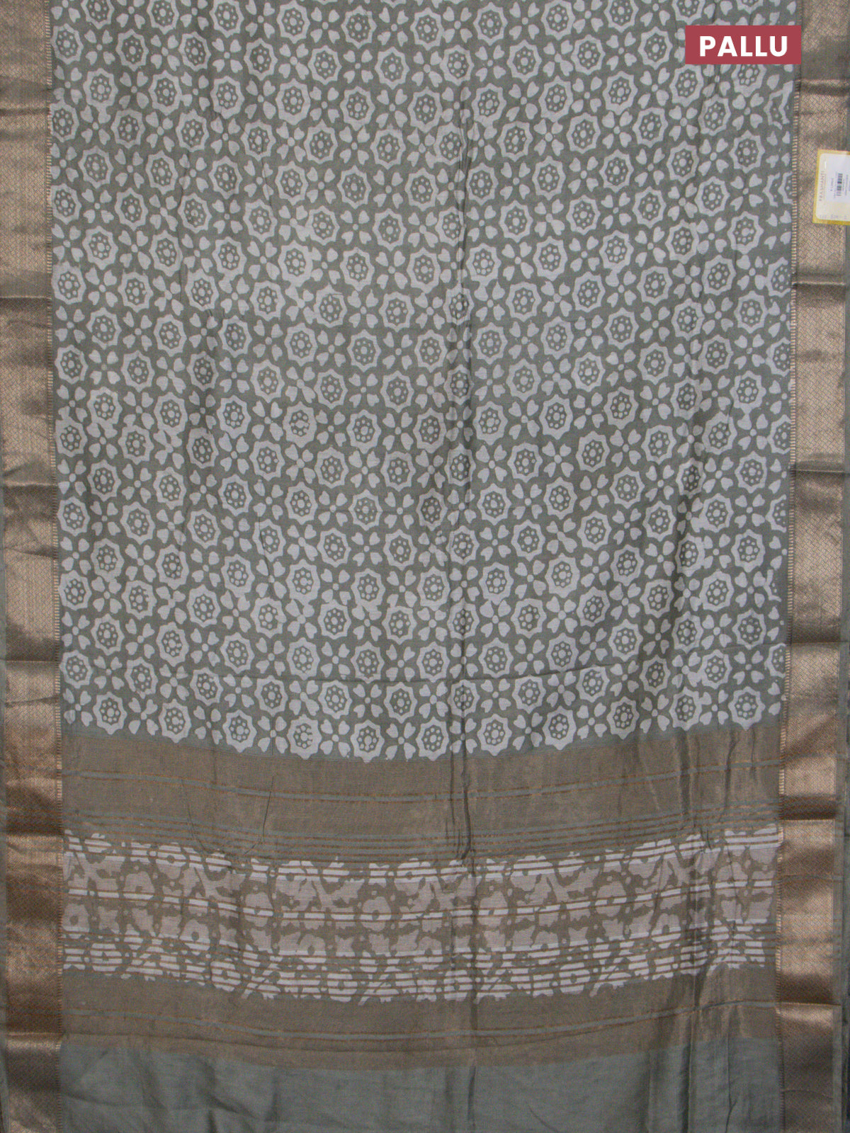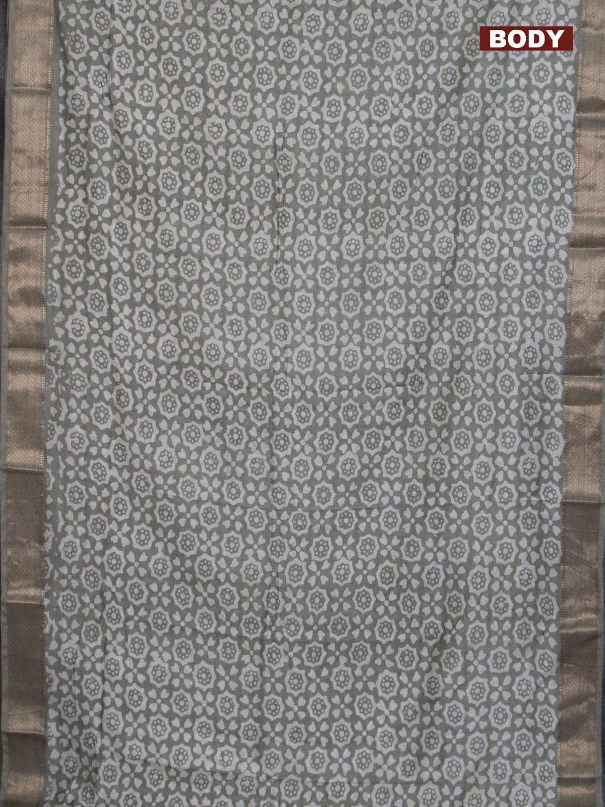 Semi chanderi saree grey shade with allover batik prints and zari woven border