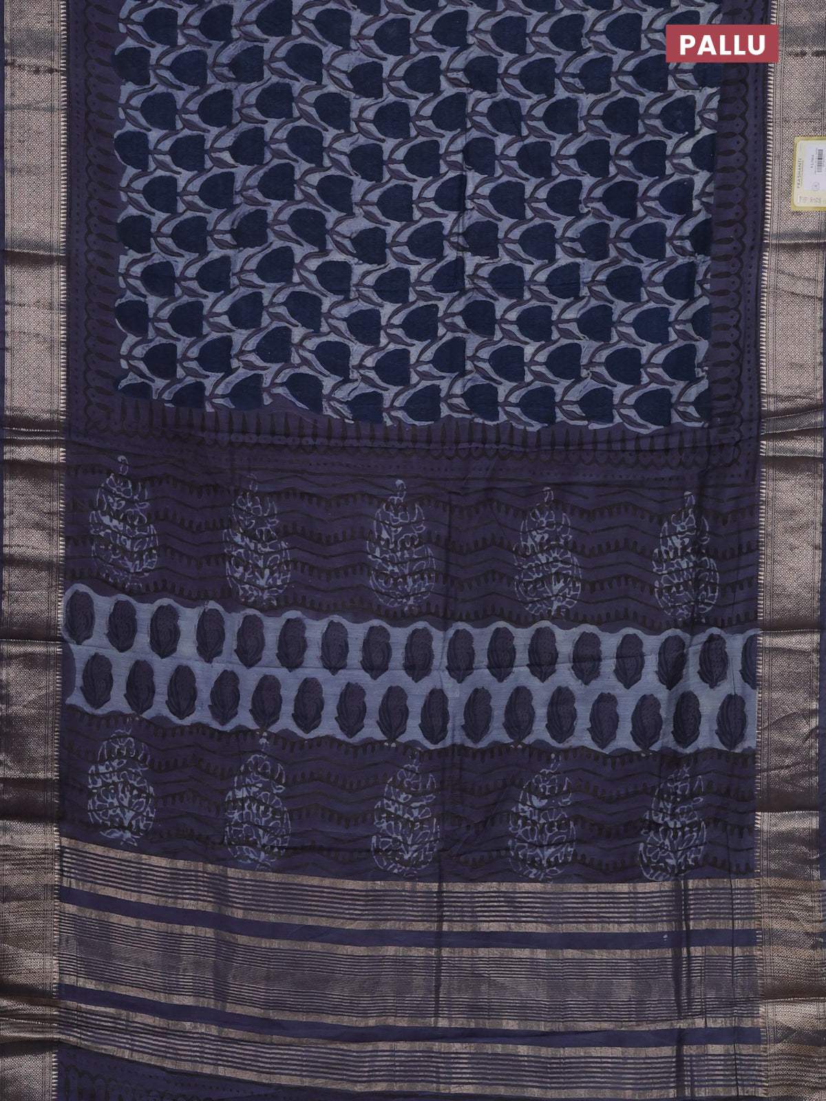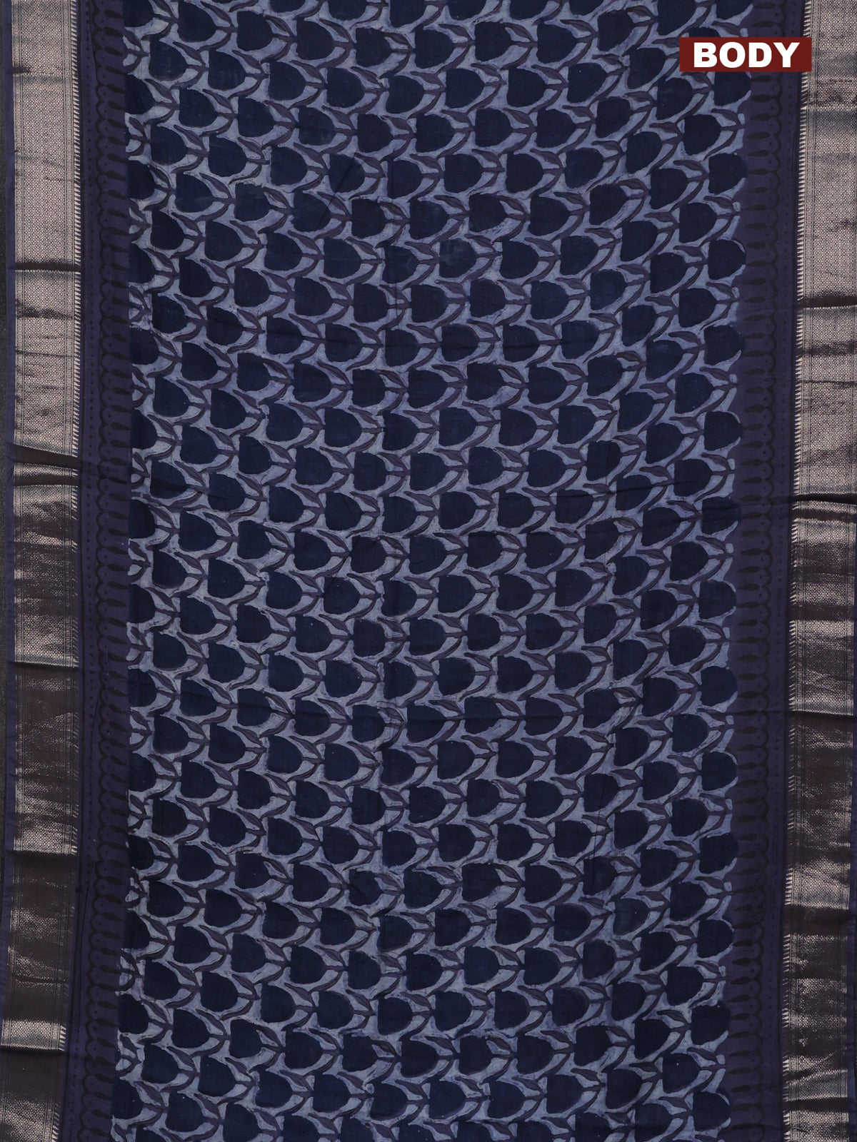 Semi chanderi saree indigo blue with allover ajrakh prints and zari woven border