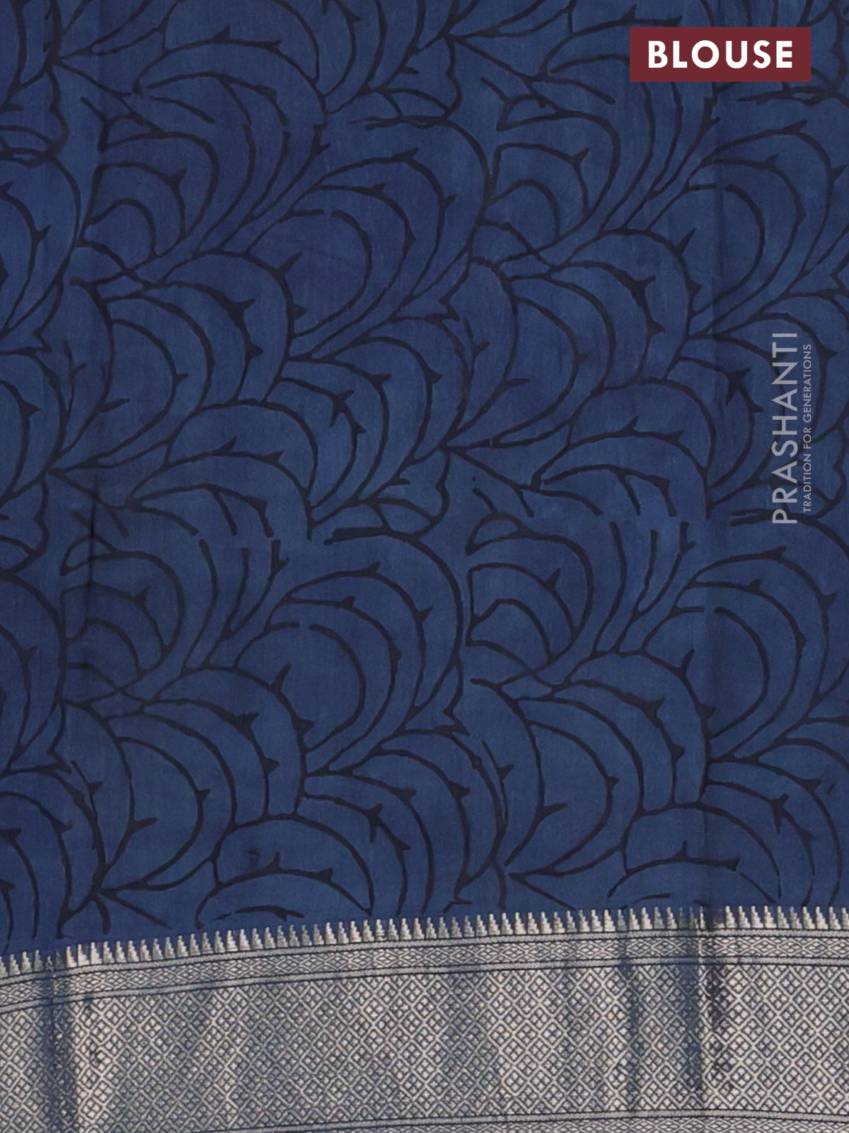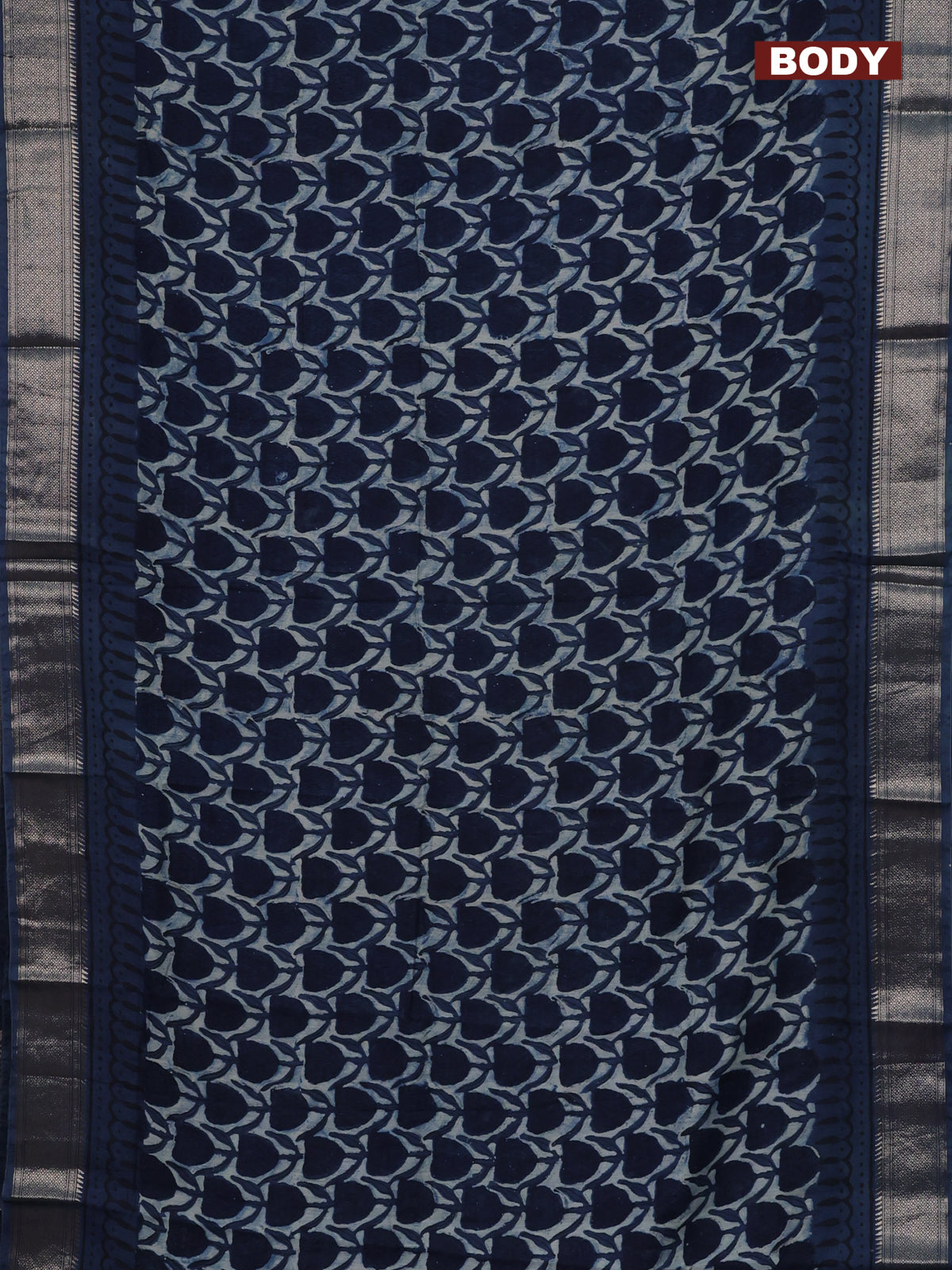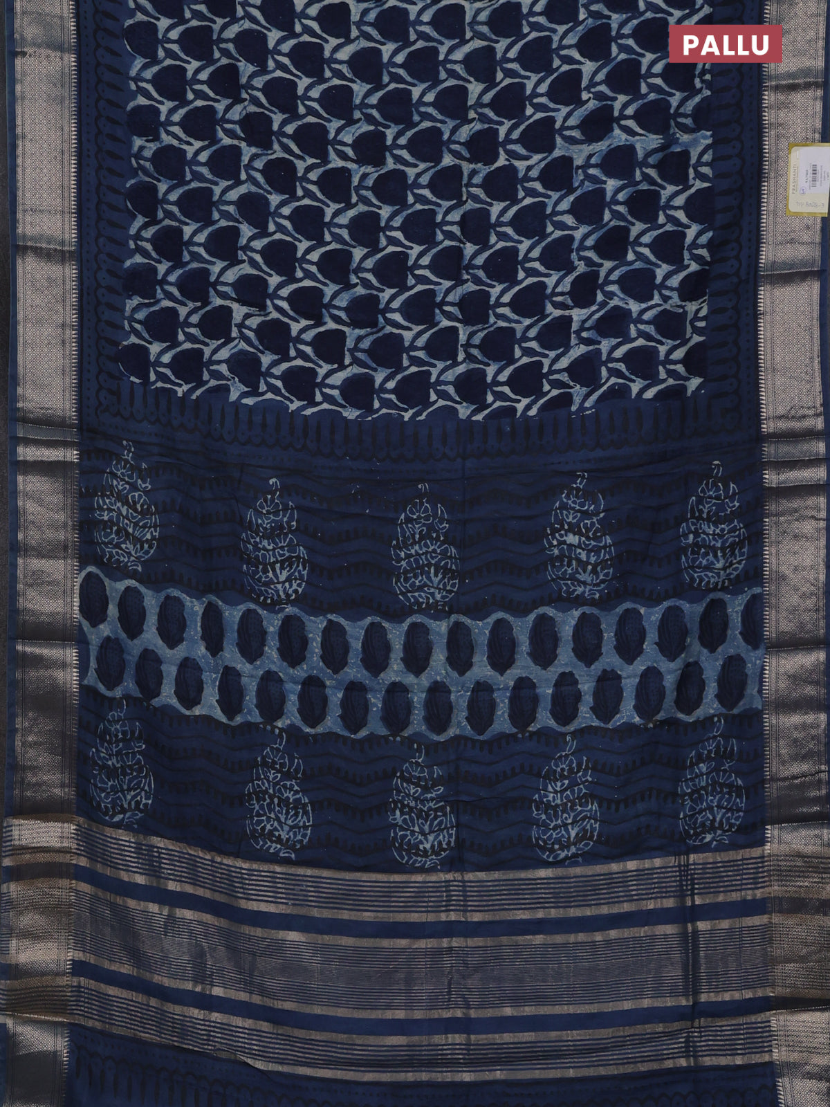 Semi chanderi saree indigo blue with allover ajrakh prints and zari woven border