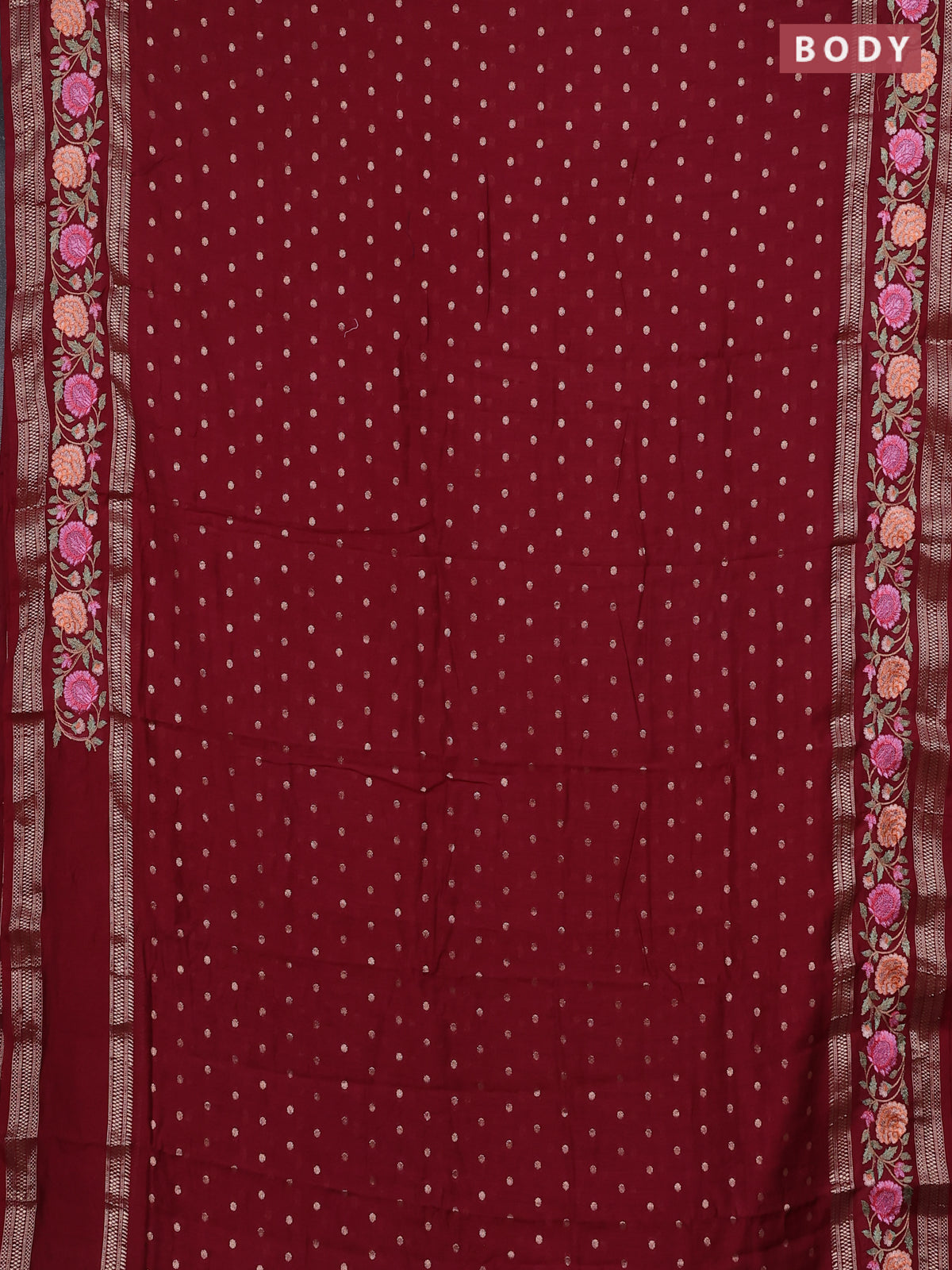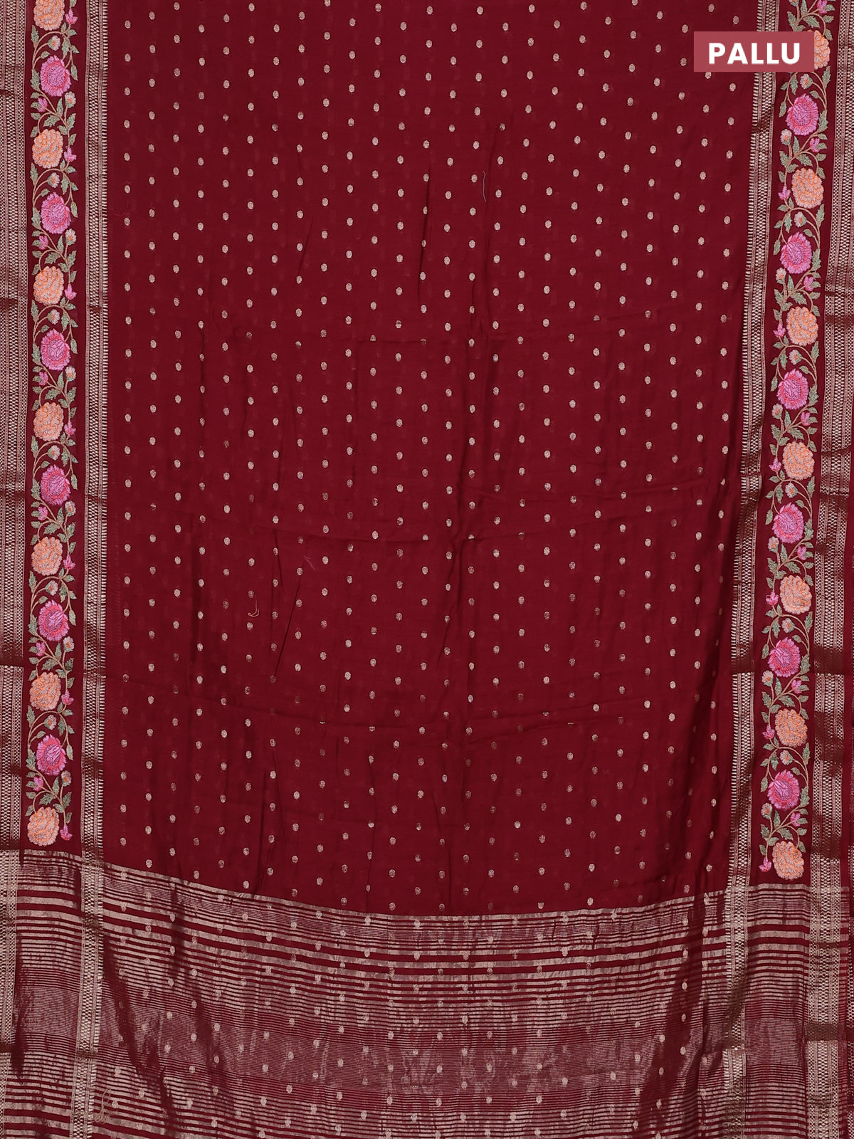 Semi chanderi saree maroon with zari woven buttas and floral embroidery border