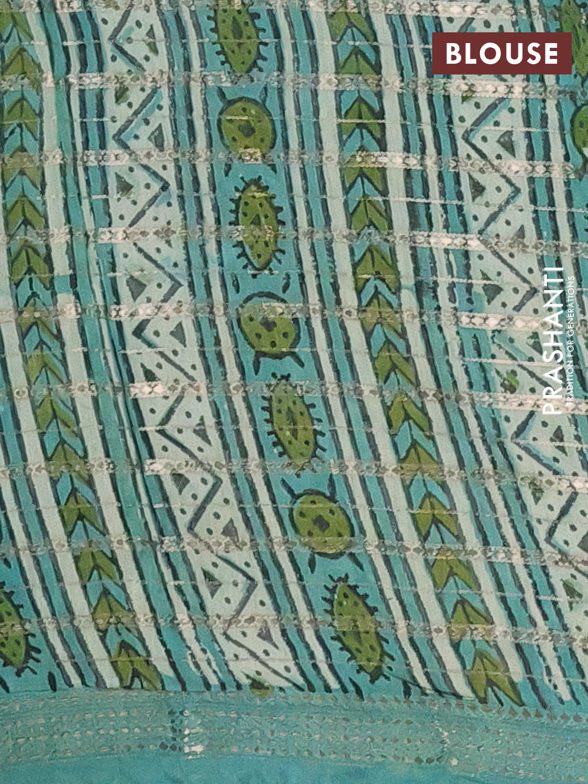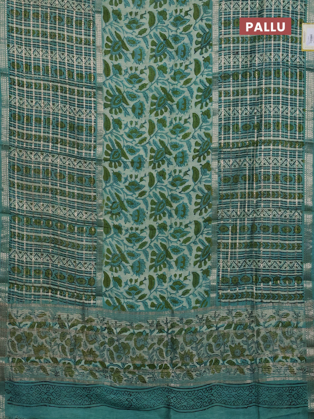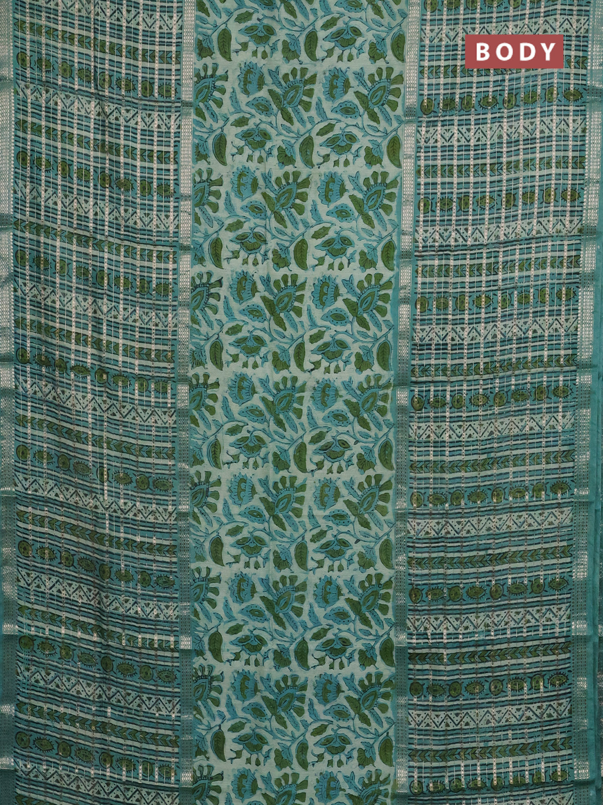 Semi chanderi saree pastel green and teal green shade with kalamkari prints and long printed zari woven border