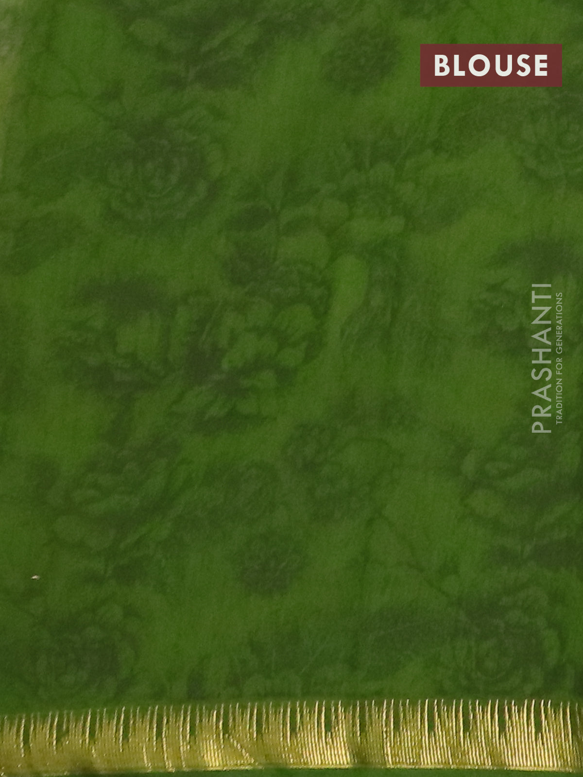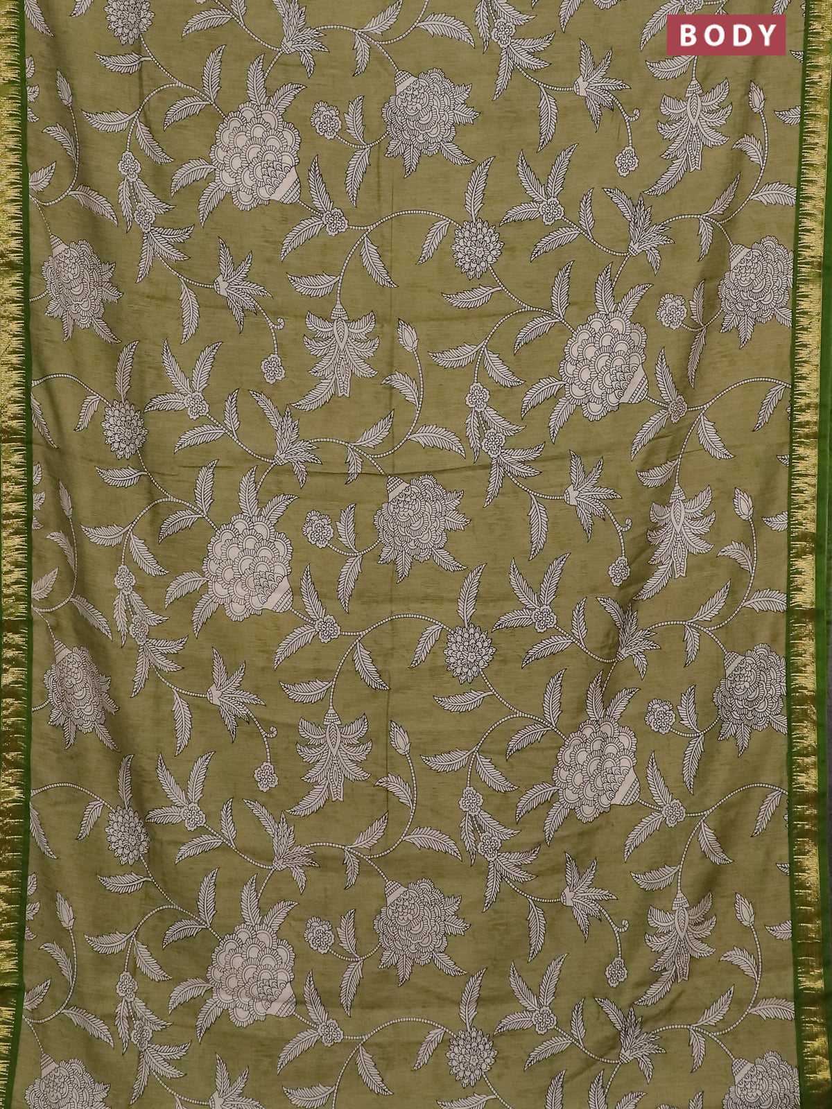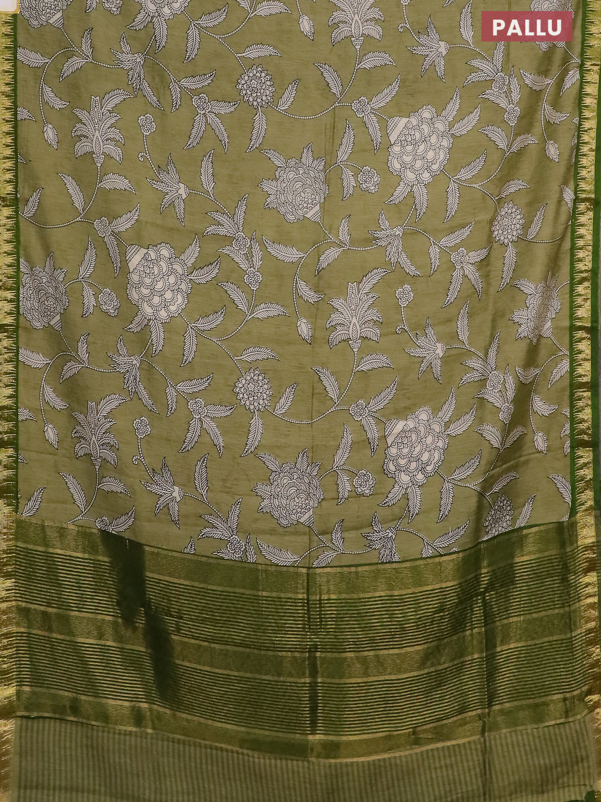 Semi chanderi saree pastel green with kalamkari prints and zari woven border