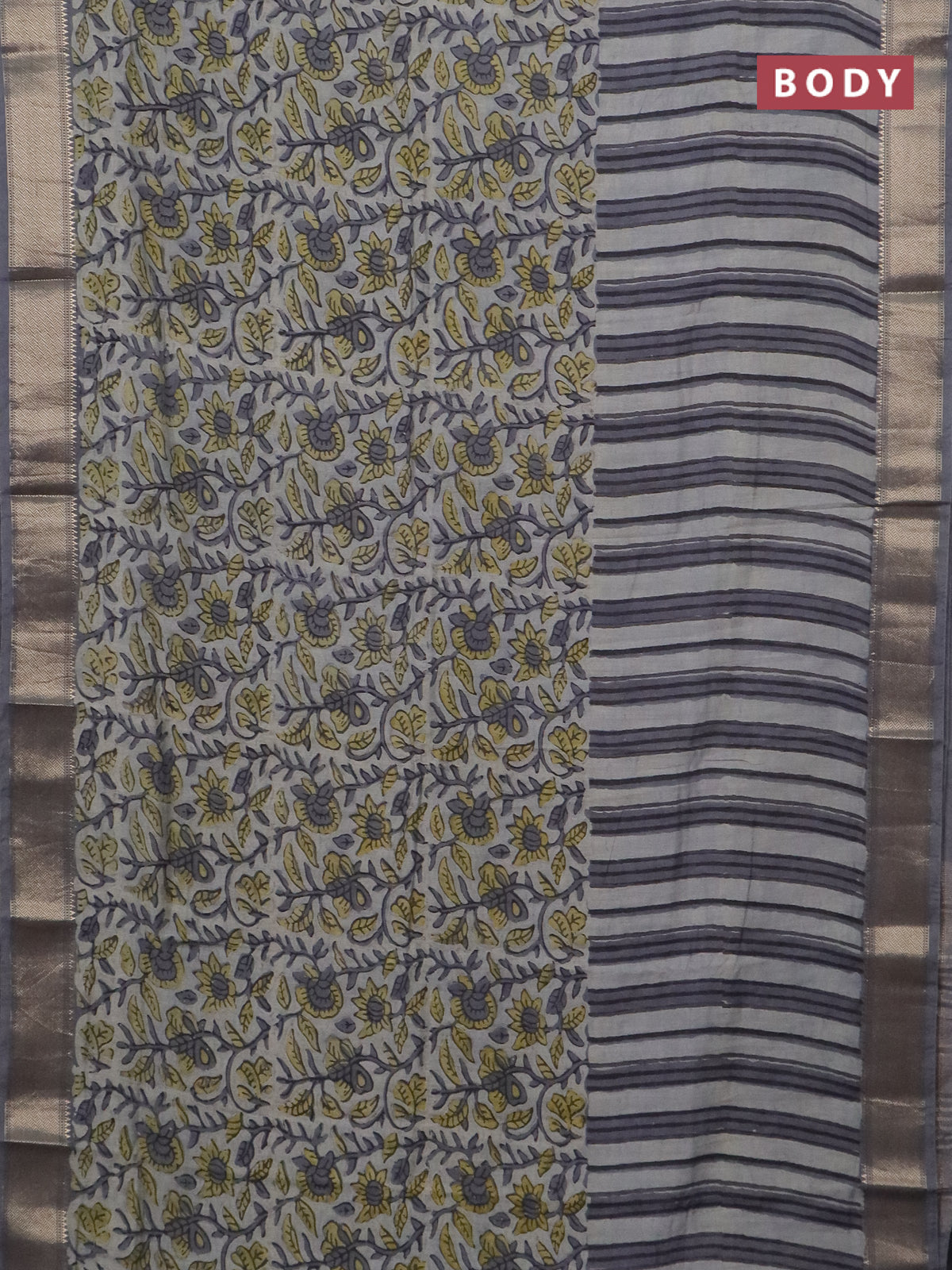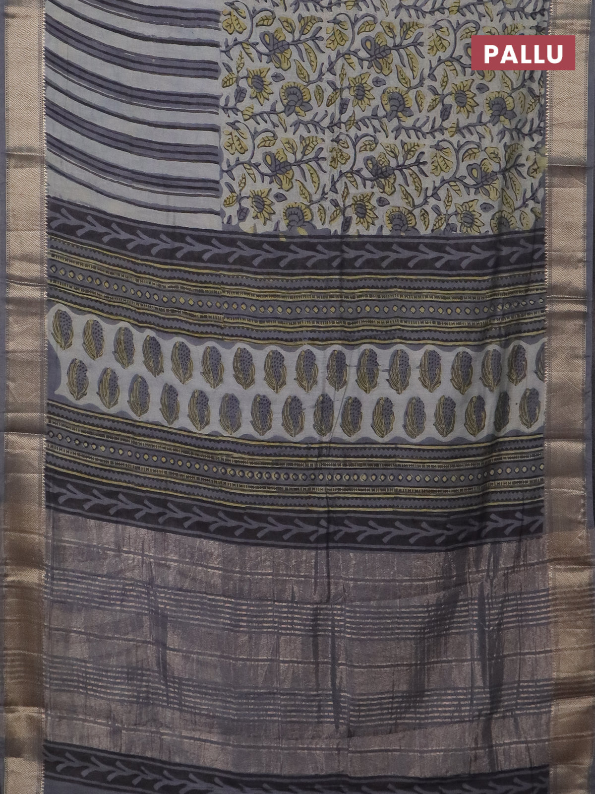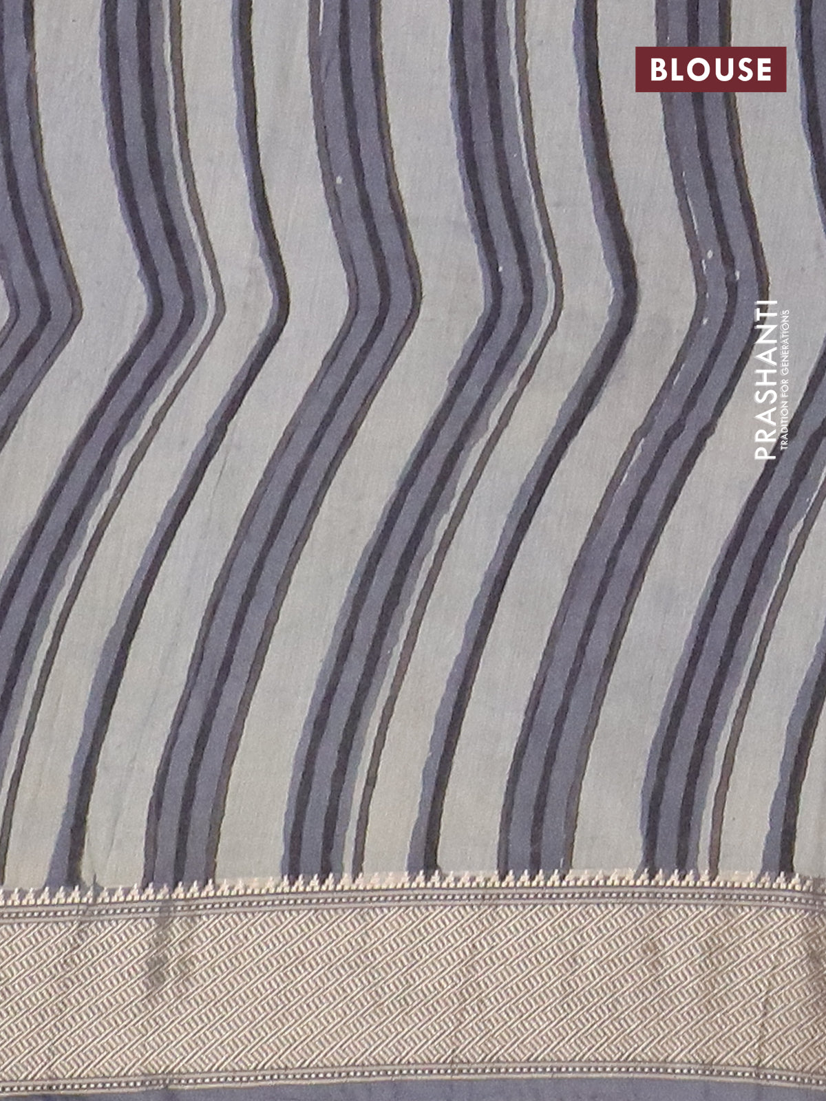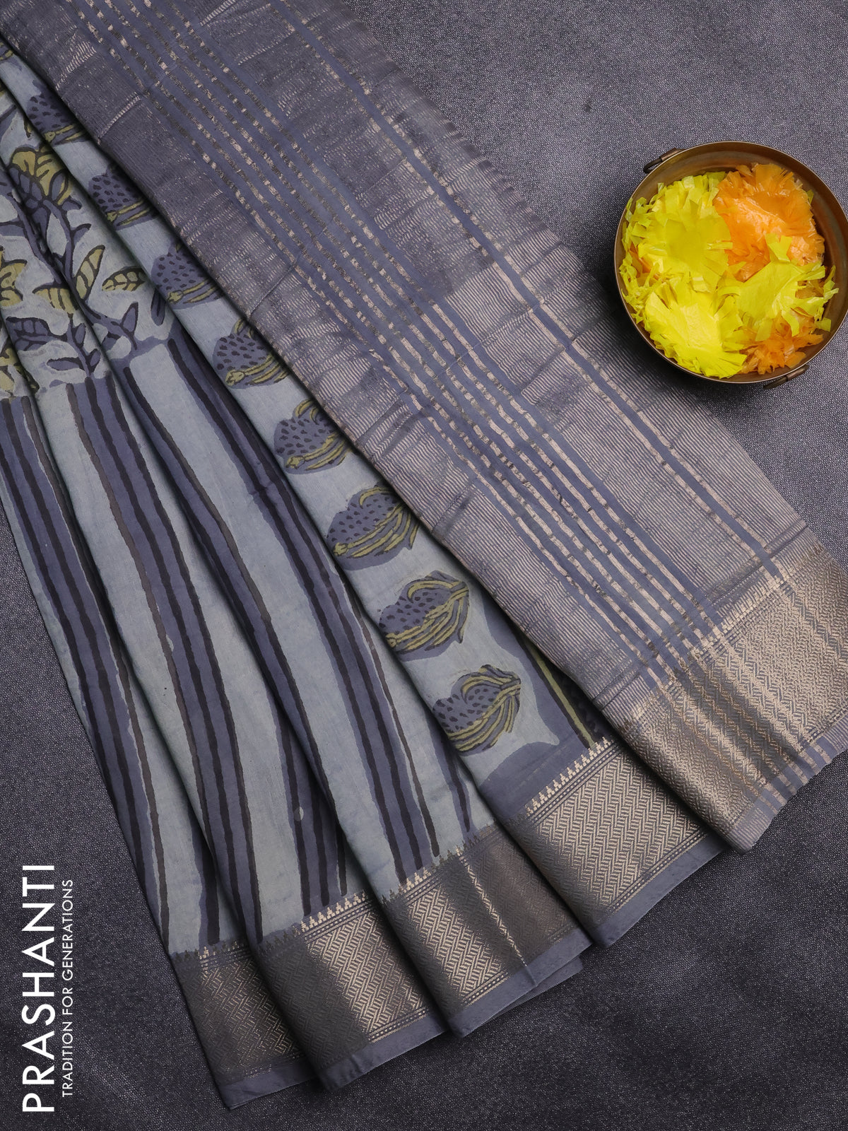 Semi chanderi saree pastel grey and grey with allover vanaspathi prints and zari woven border