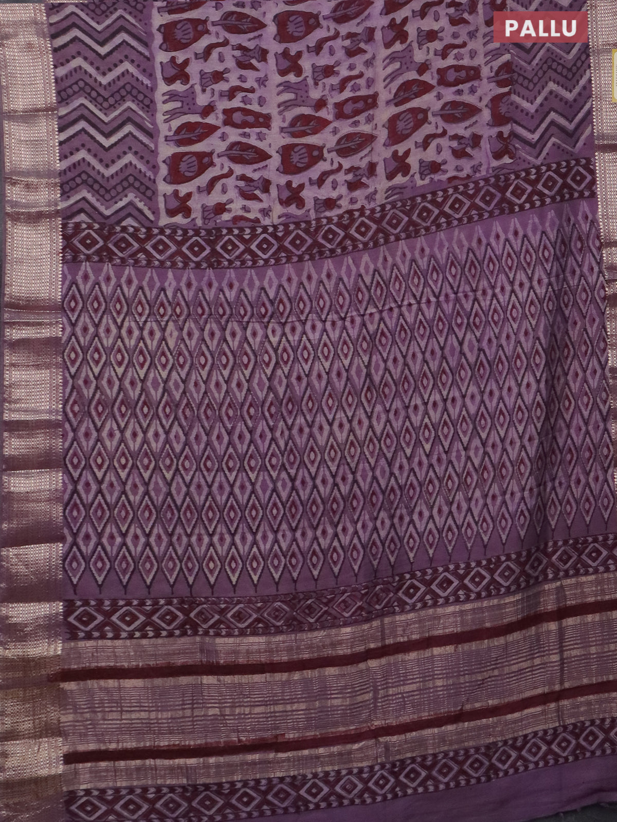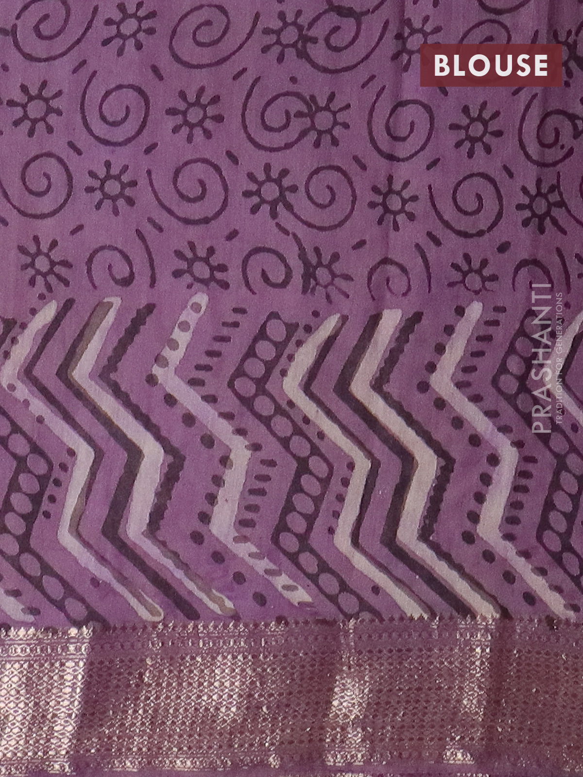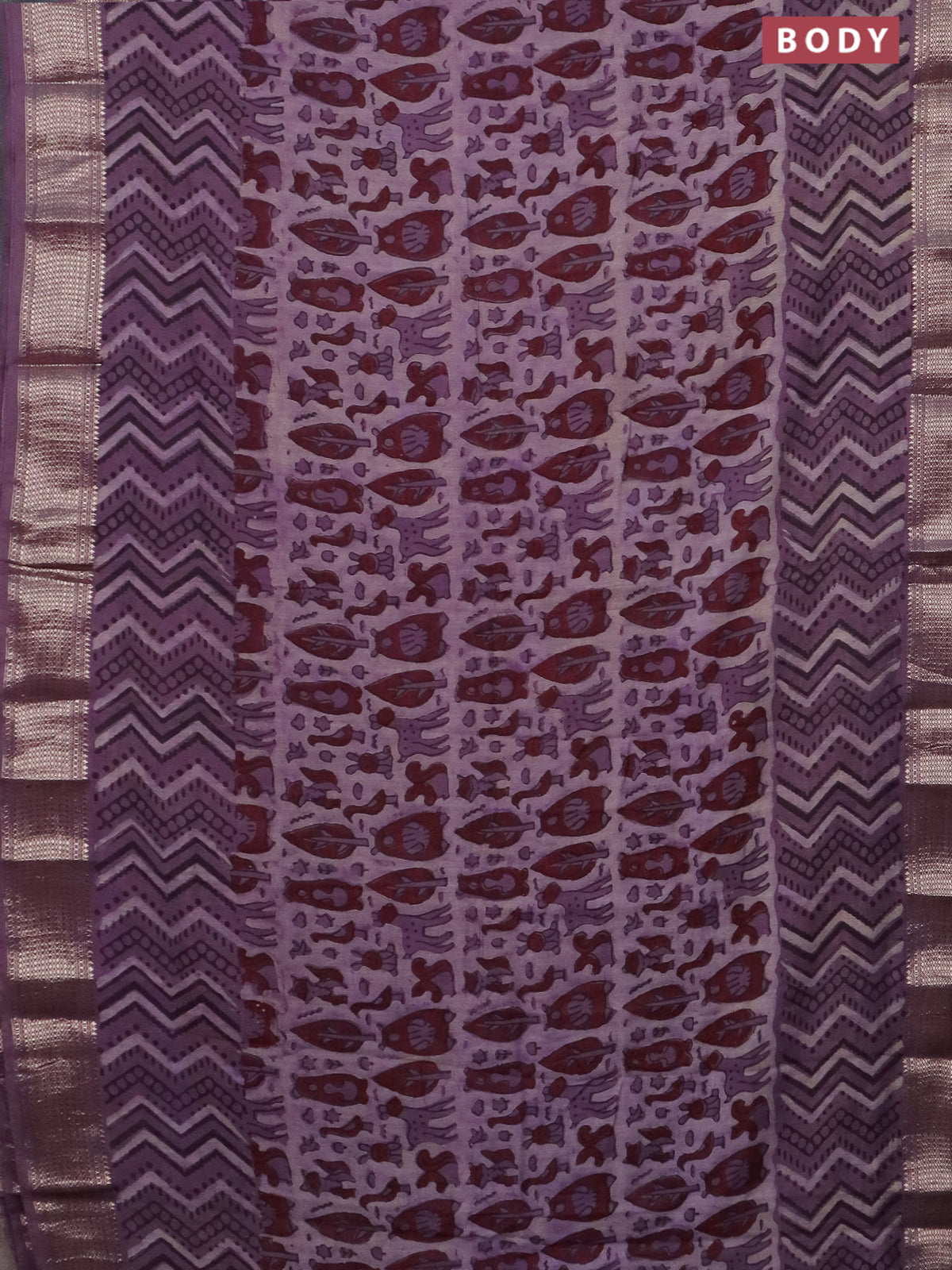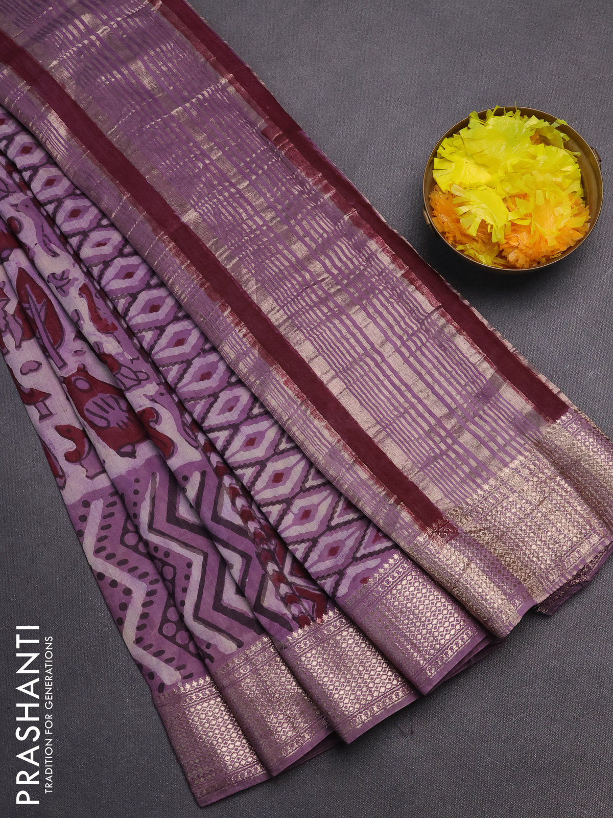 Semi chanderi saree pastel violet with allover vanaspathi prints and zari woven border