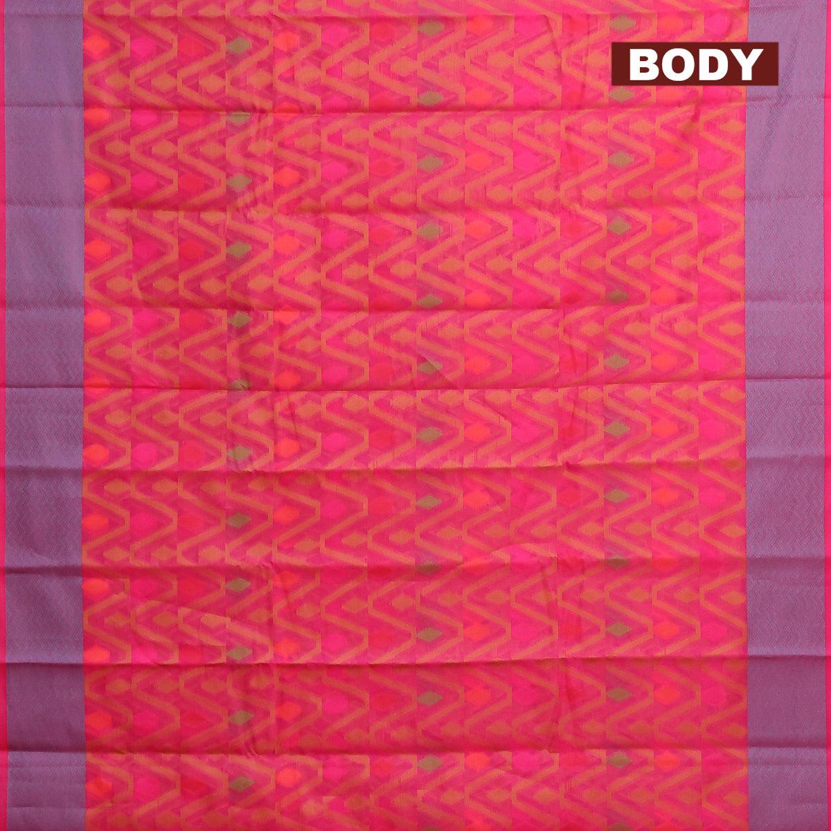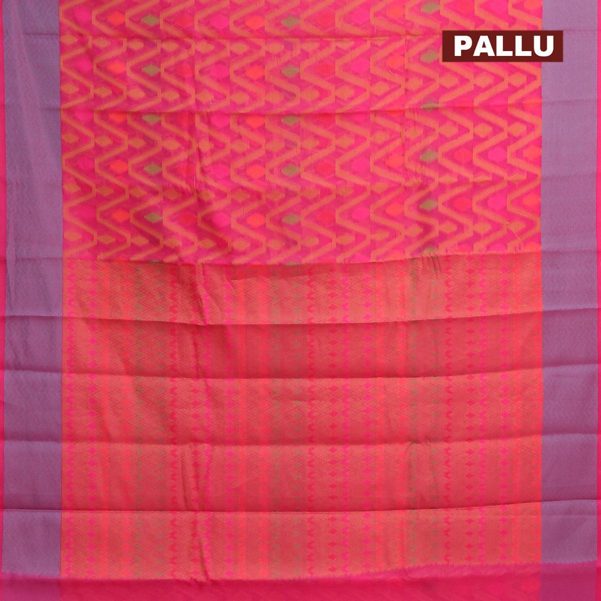 Semi chanderi saree pink and with allover thread weaves and woven border