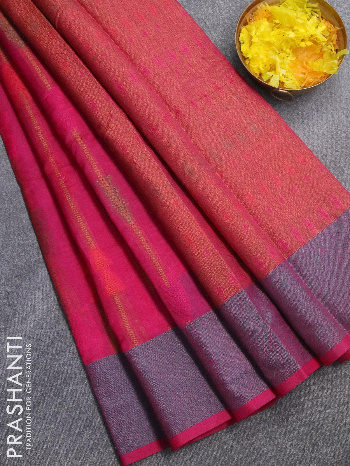 Semi chanderi saree pink and with allover thread weaves and woven border
