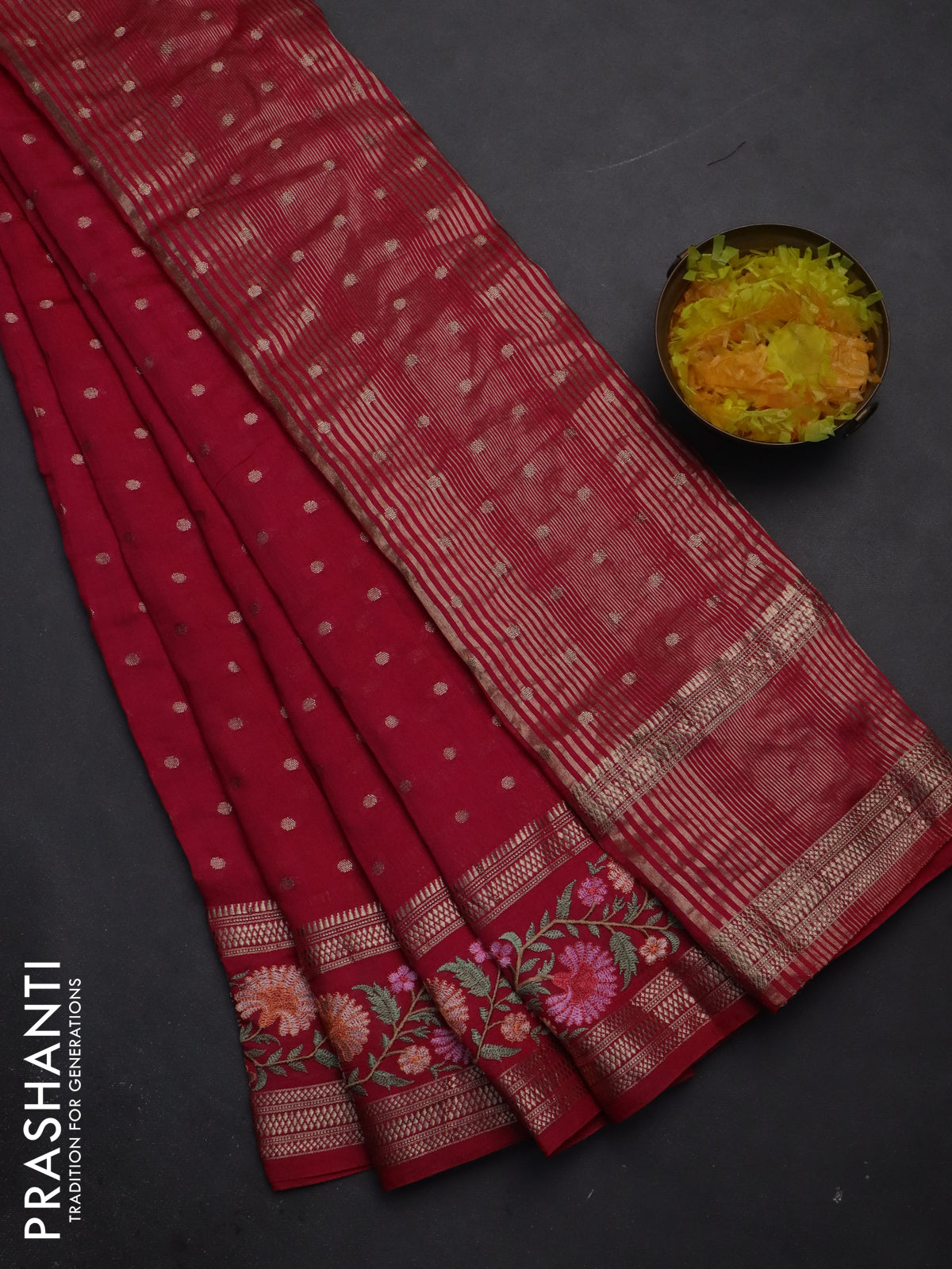 - Length of saree : 6.2 mts (5.5 mts saree & 70 cms blouse)