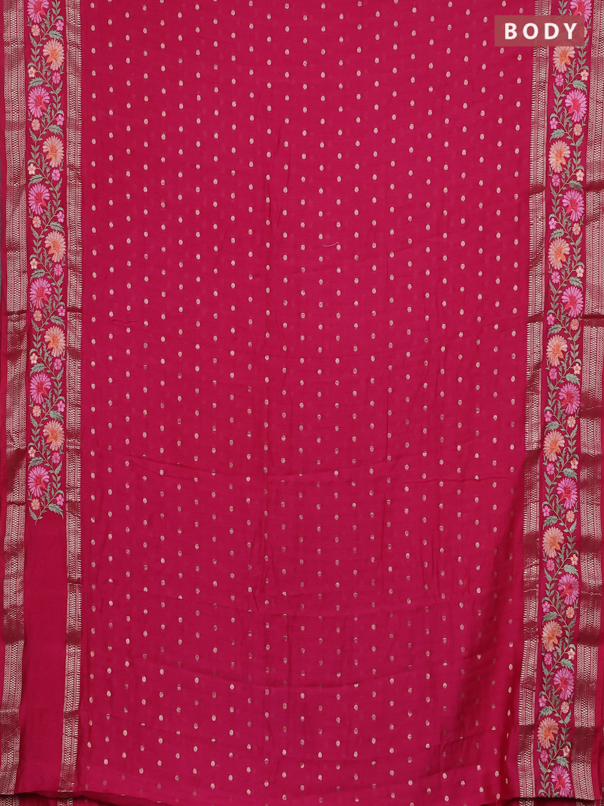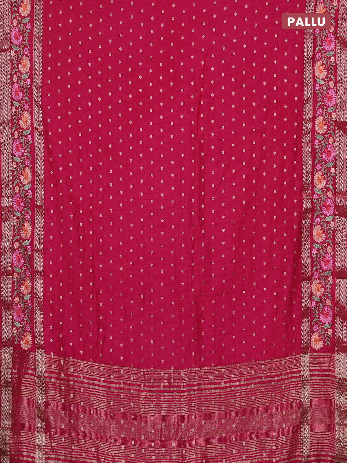 Semi chanderi saree pink with zari woven buttas and floral embroidery border