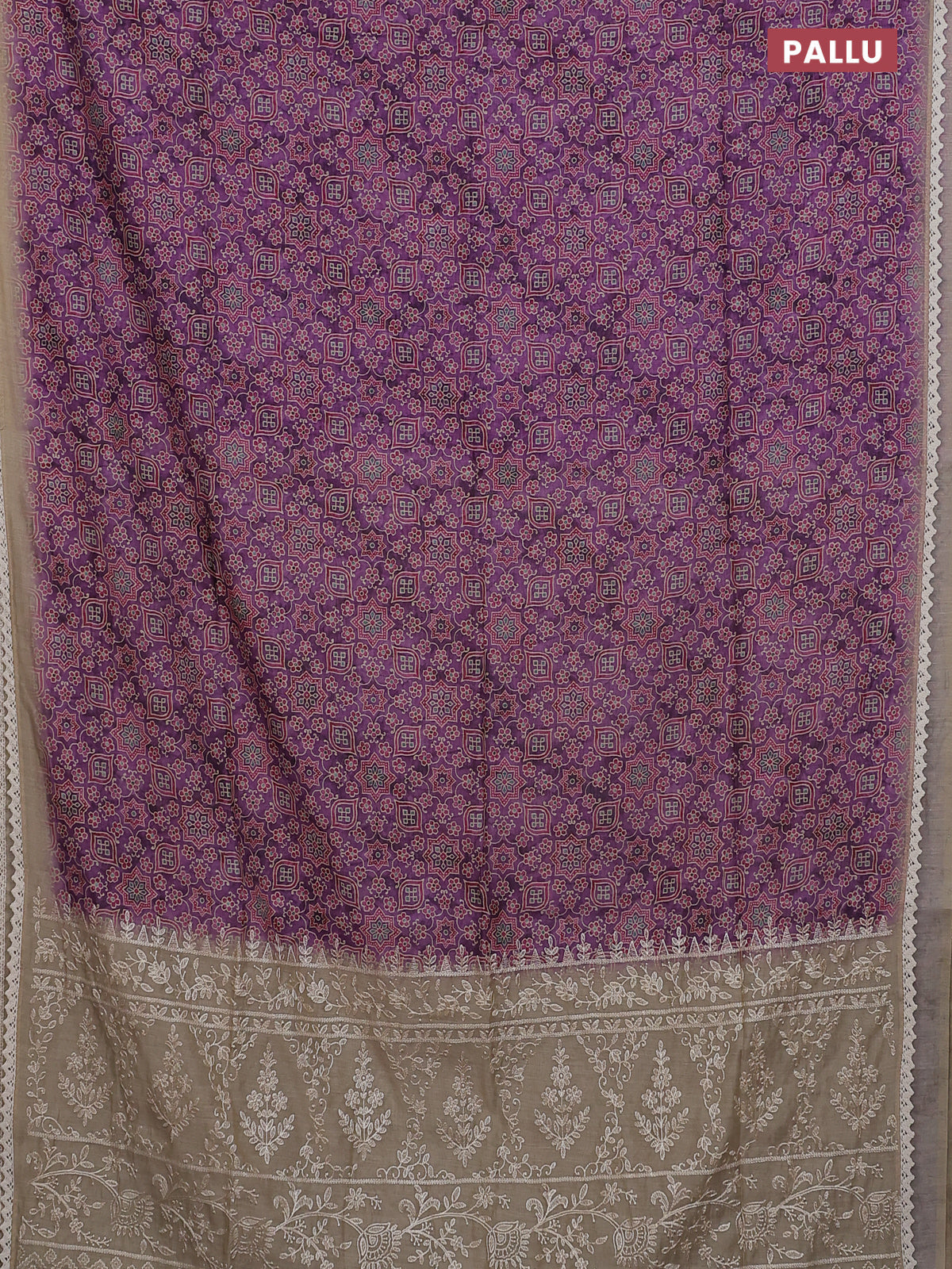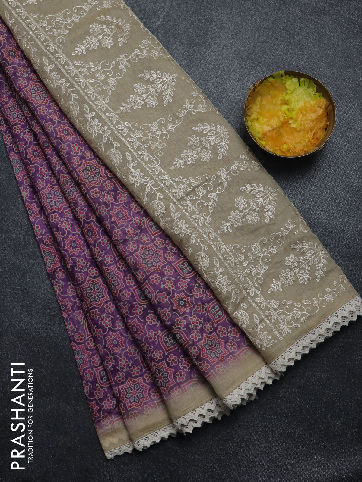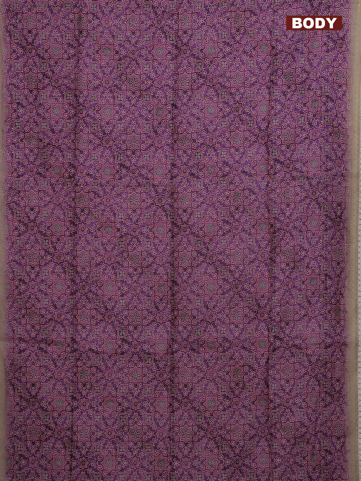 Semi chanderi saree purple and beige with allover ajrakh prints and embroidery pallu
