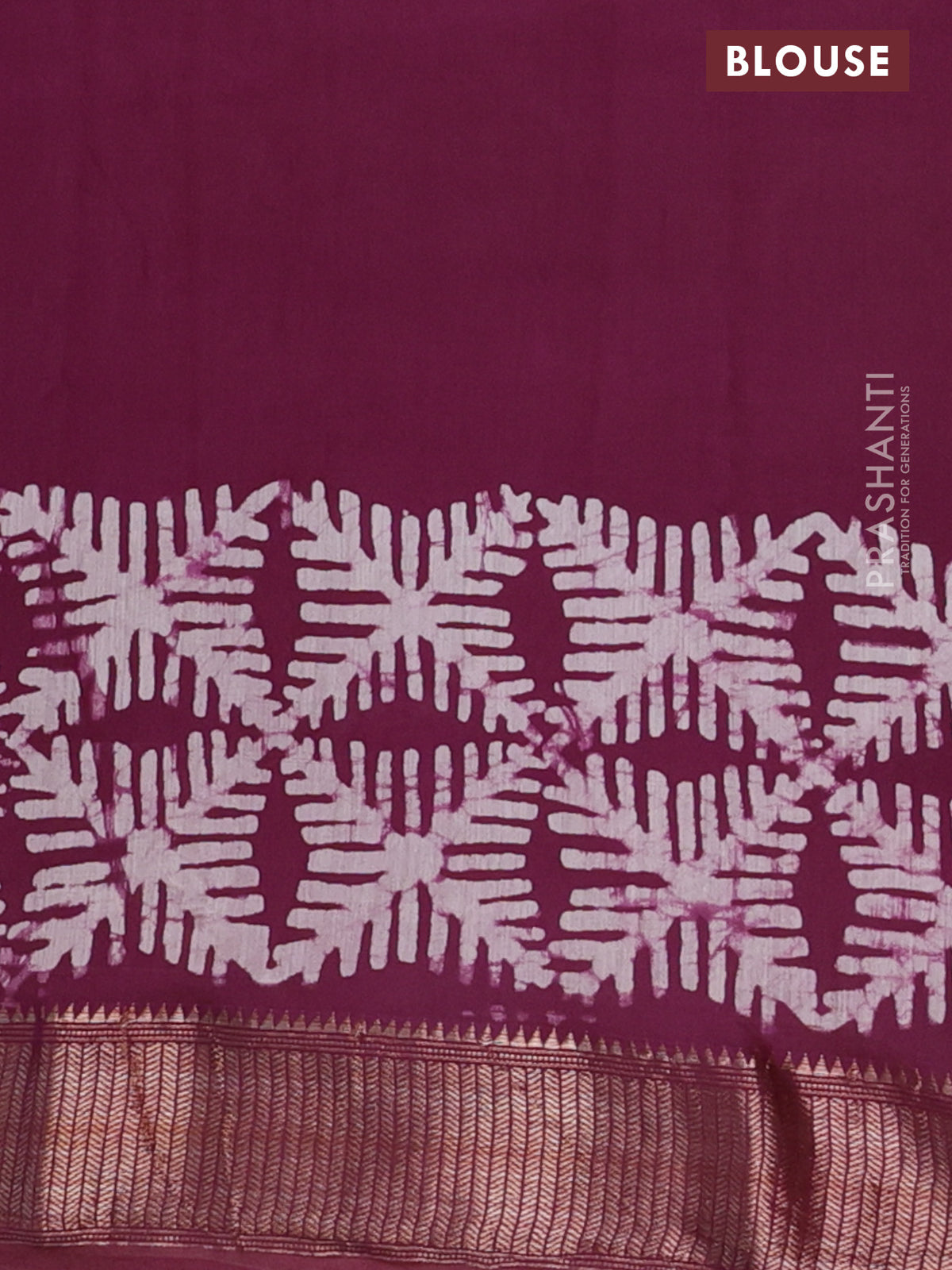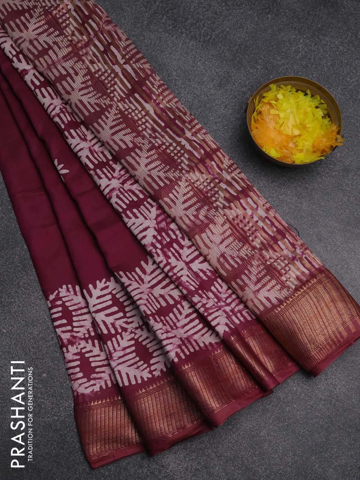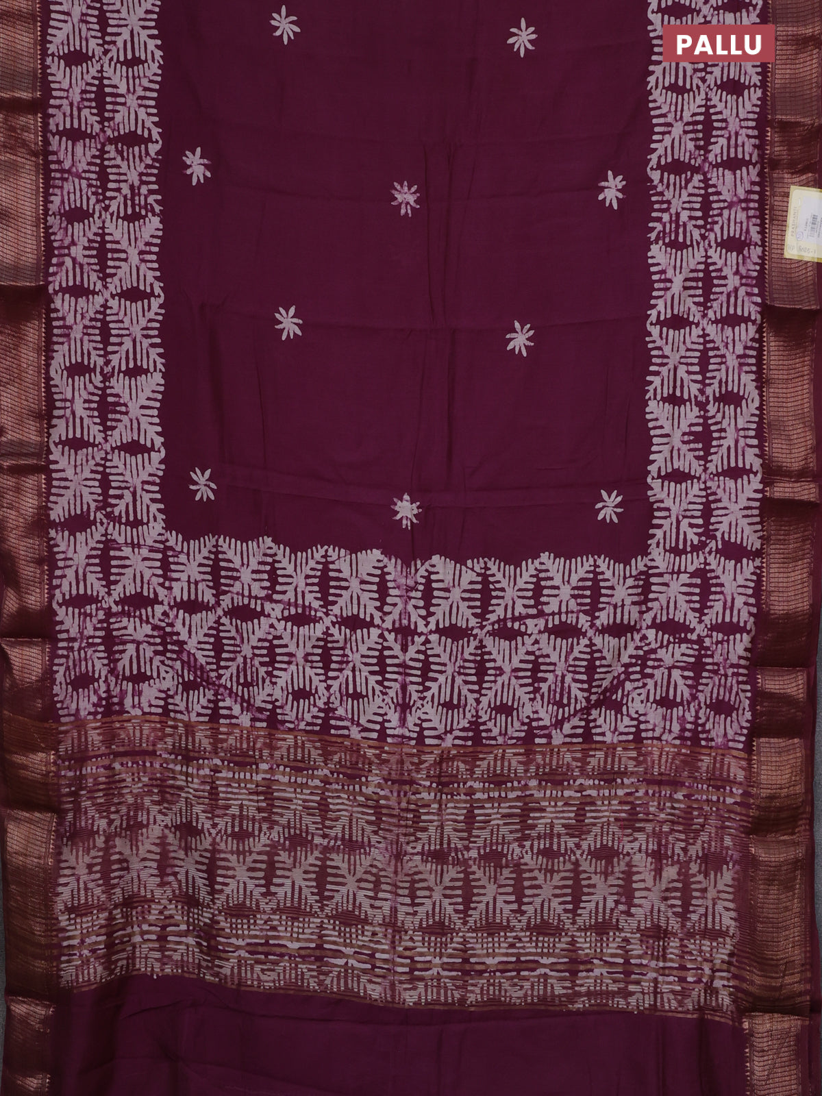 Semi chanderi saree wine shade with batik butta prints and woven border
