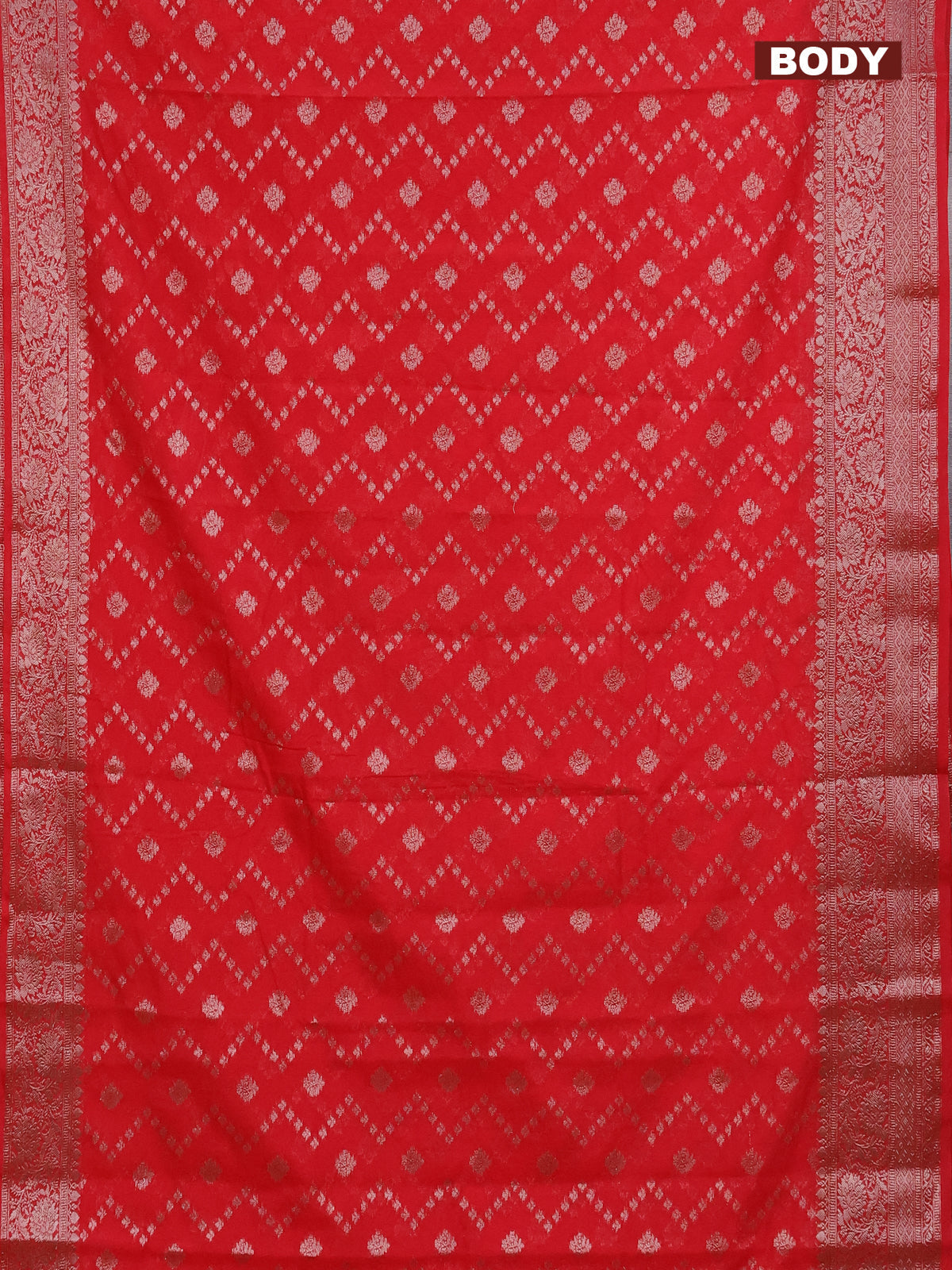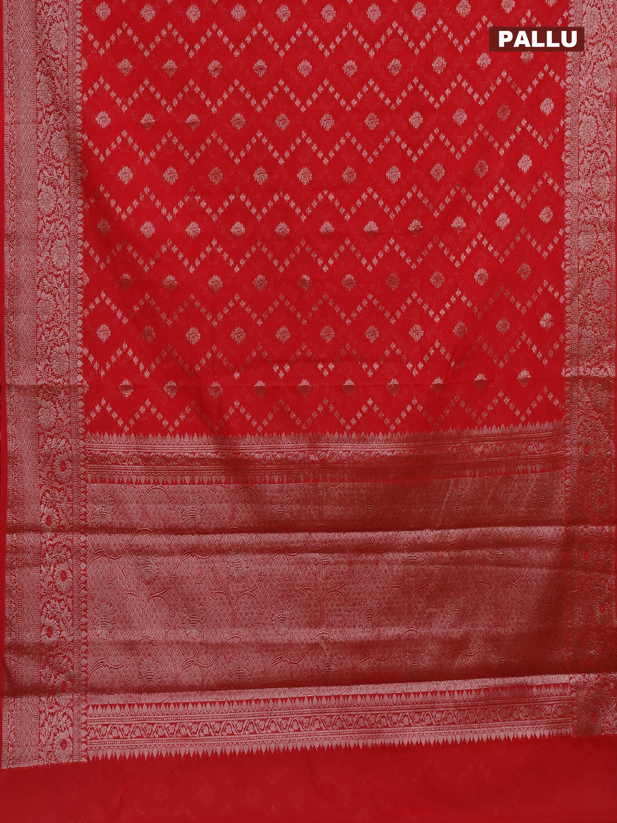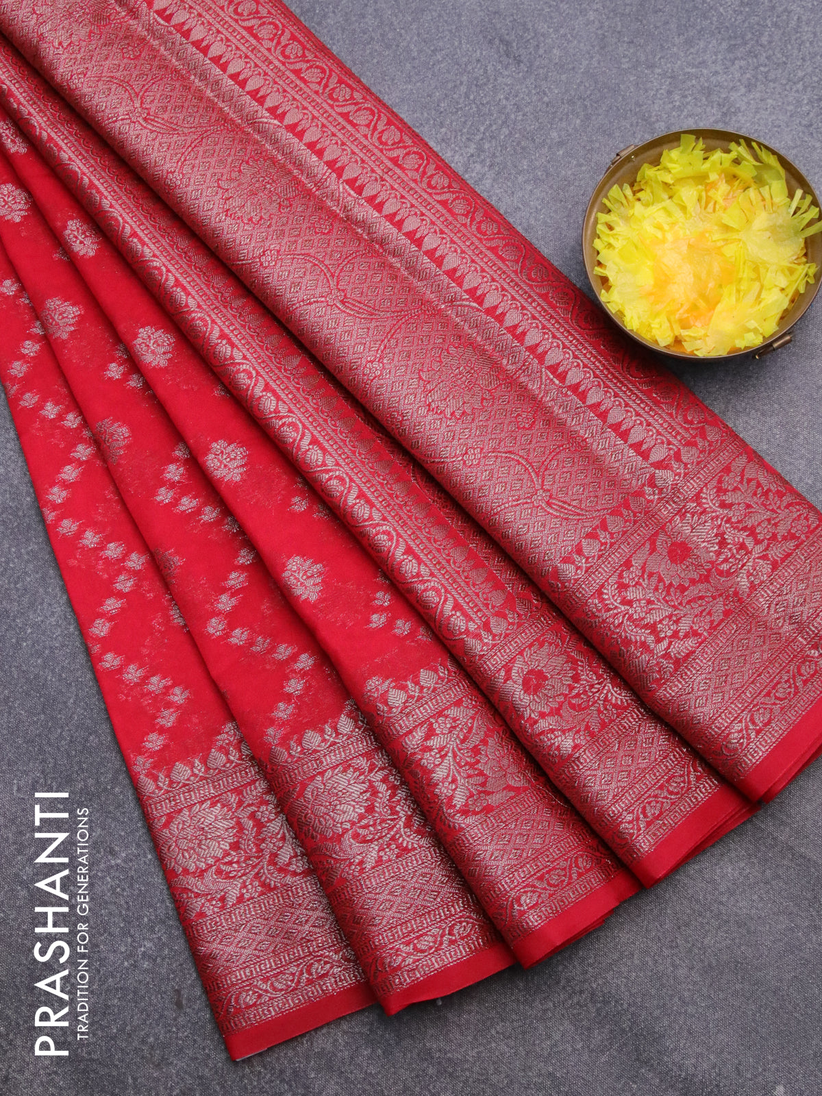 Semi chiniya saree red with allover thread & zari weaves and banarasi style border