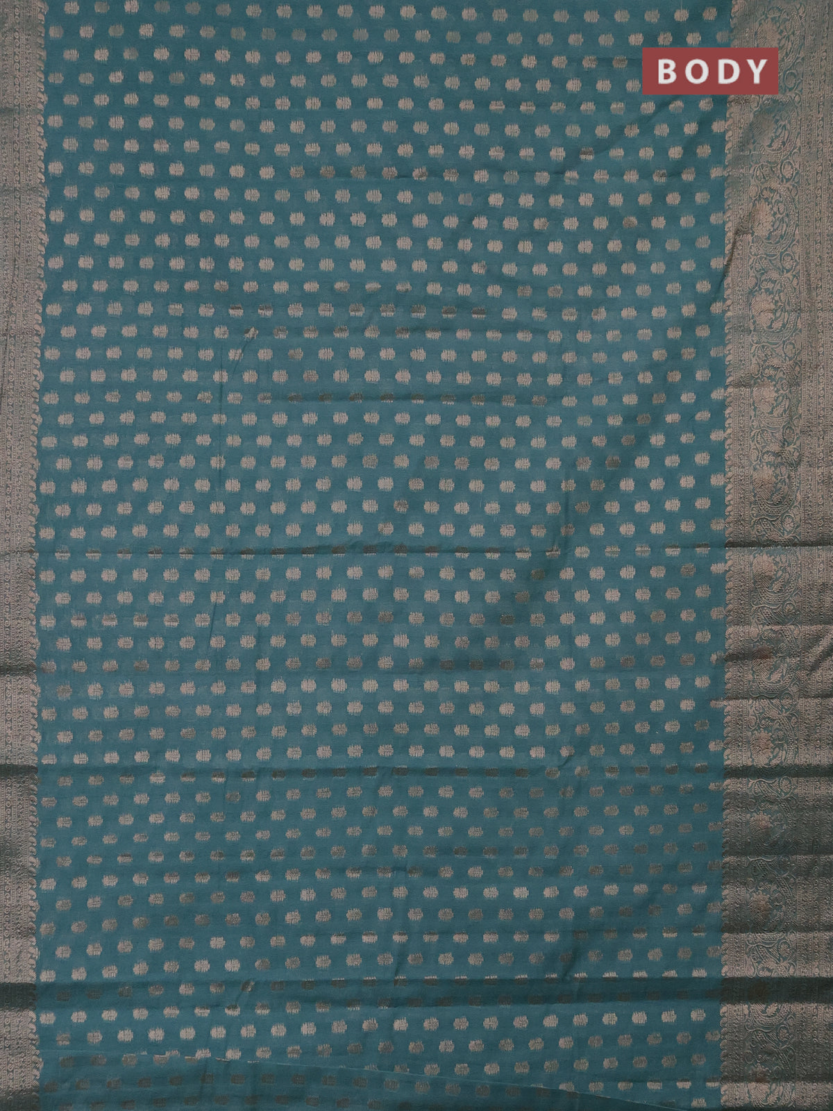 Semi chiniya saree teal blue with woven buttas and woven border