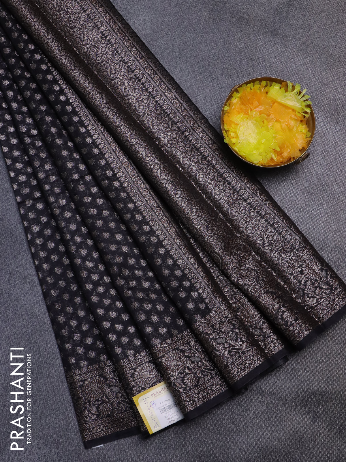 Semi chiniya silk saree black with allover zari woven buttas and zari woven border