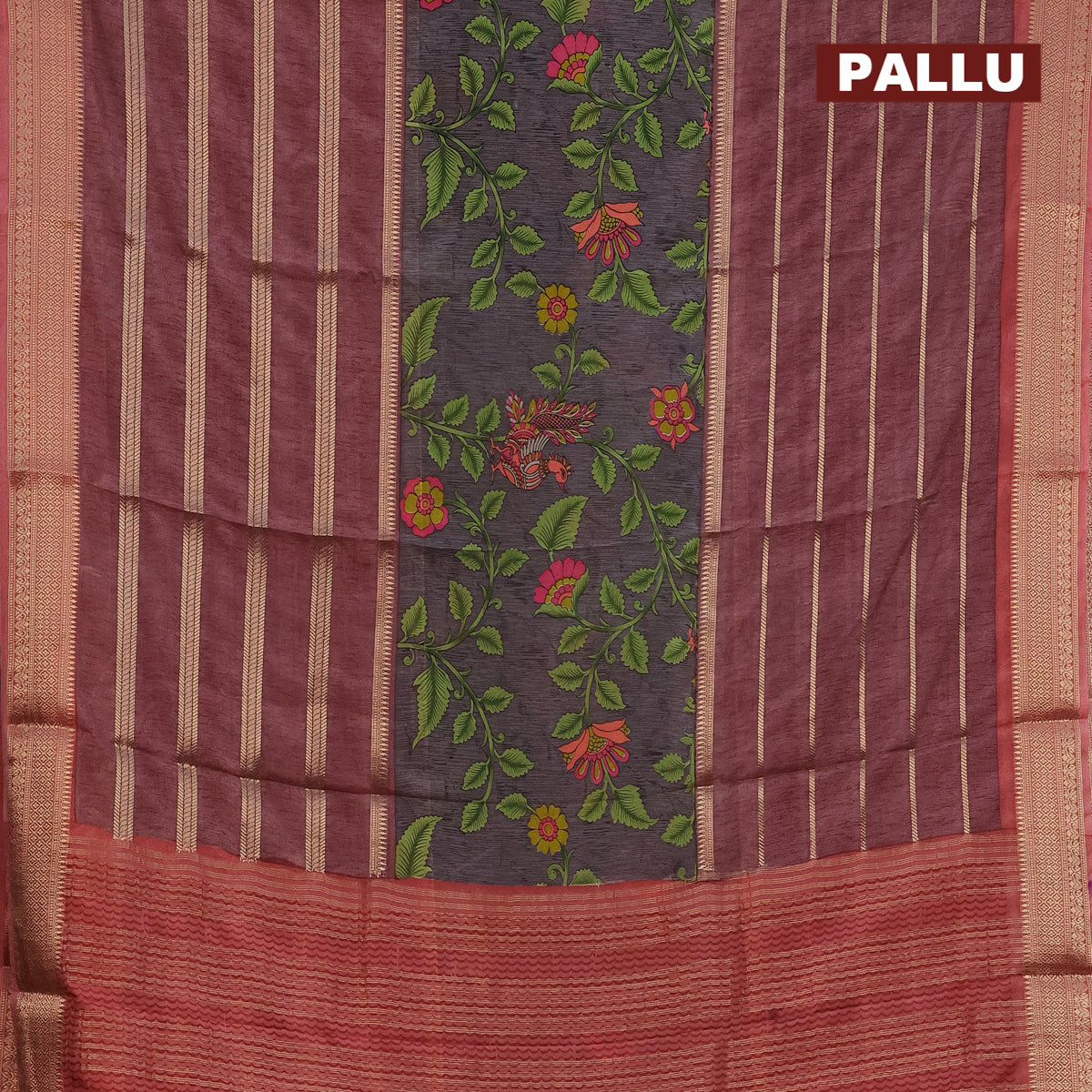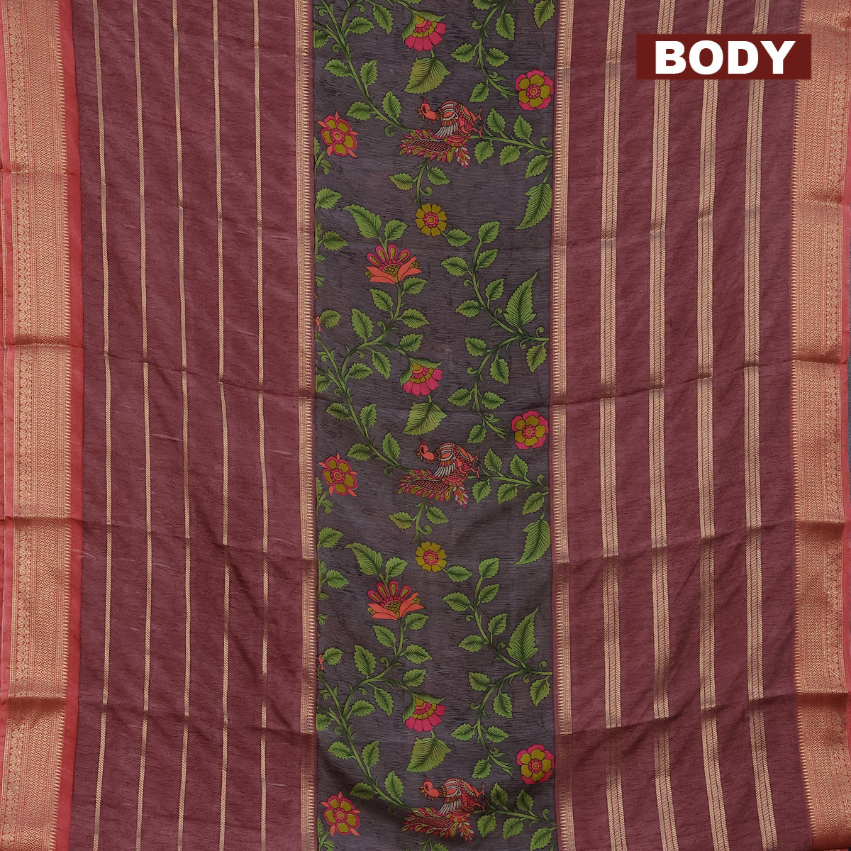 Semi crepe saree grey shade and pastel maroon shade with kalamkari prints and long zari woven simple border