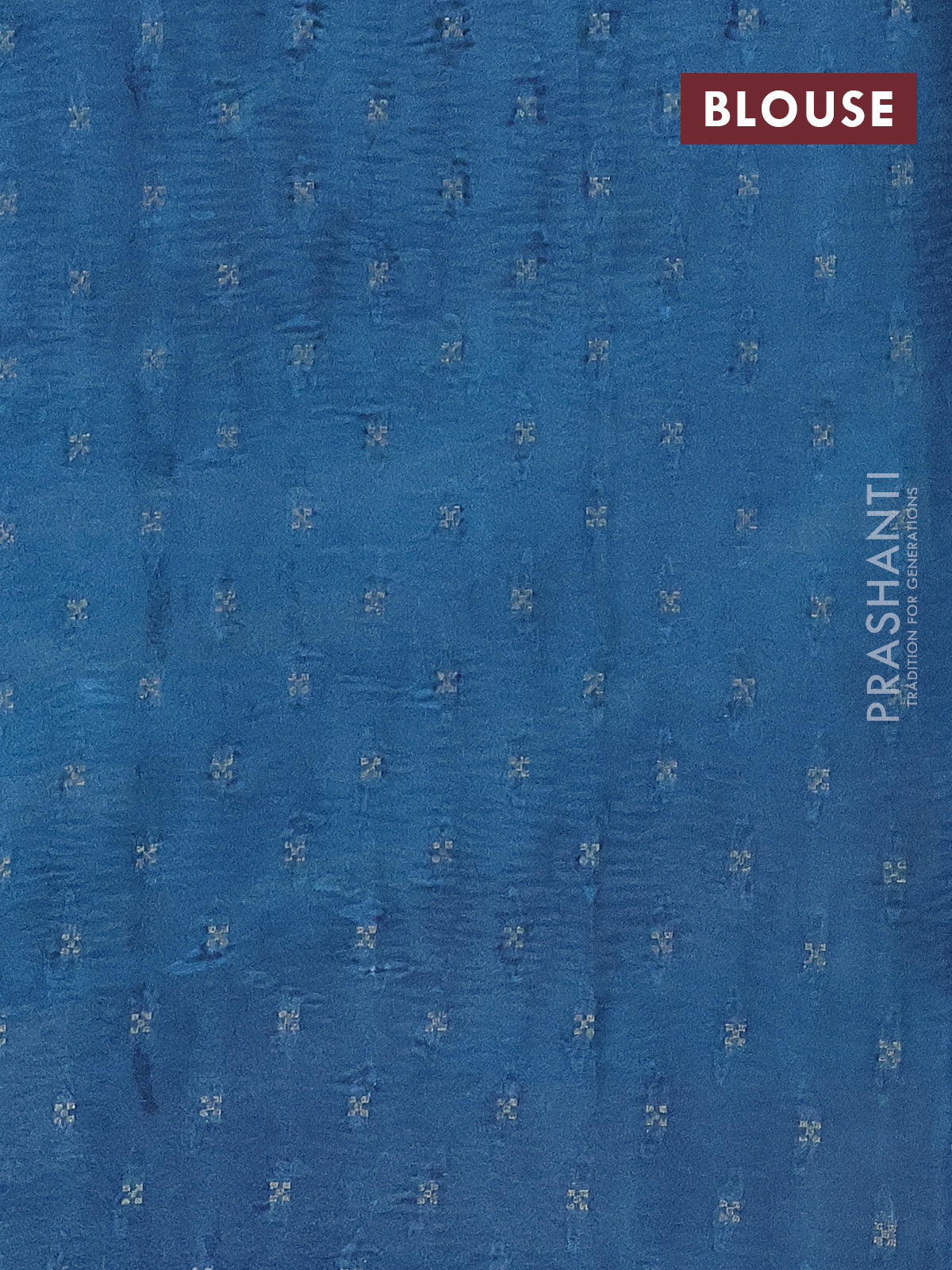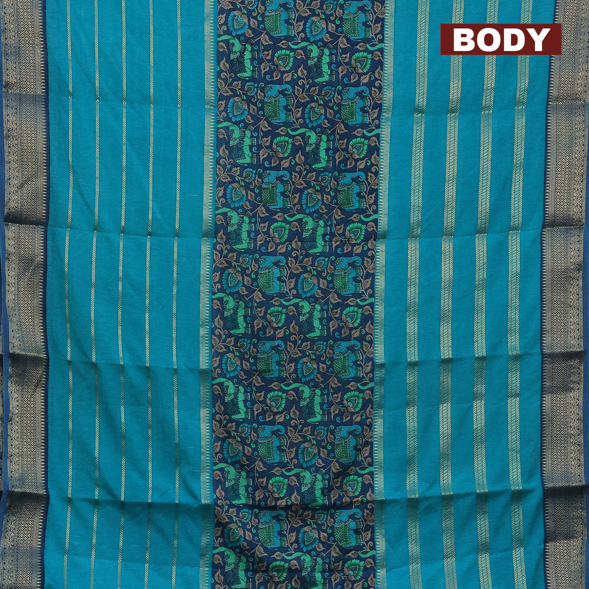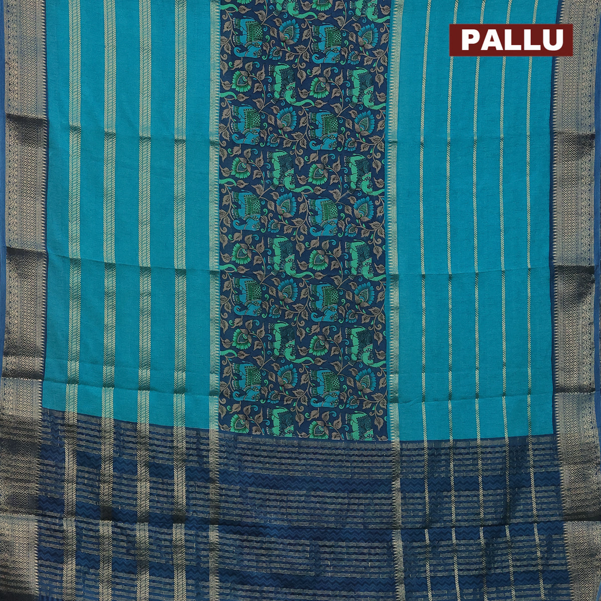 Semi crepe saree peacock blue and teal blue with kalamkari prints and long zari woven simple border