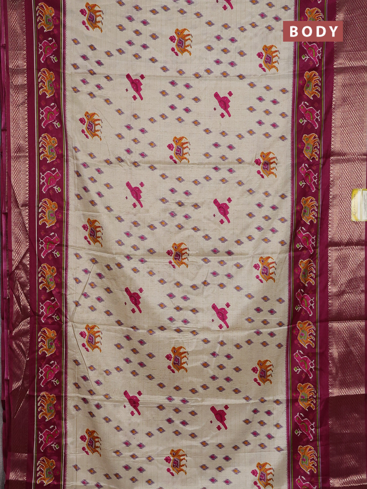 Semi dola saree cream and wine shade with allover patola prints and zari woven border
