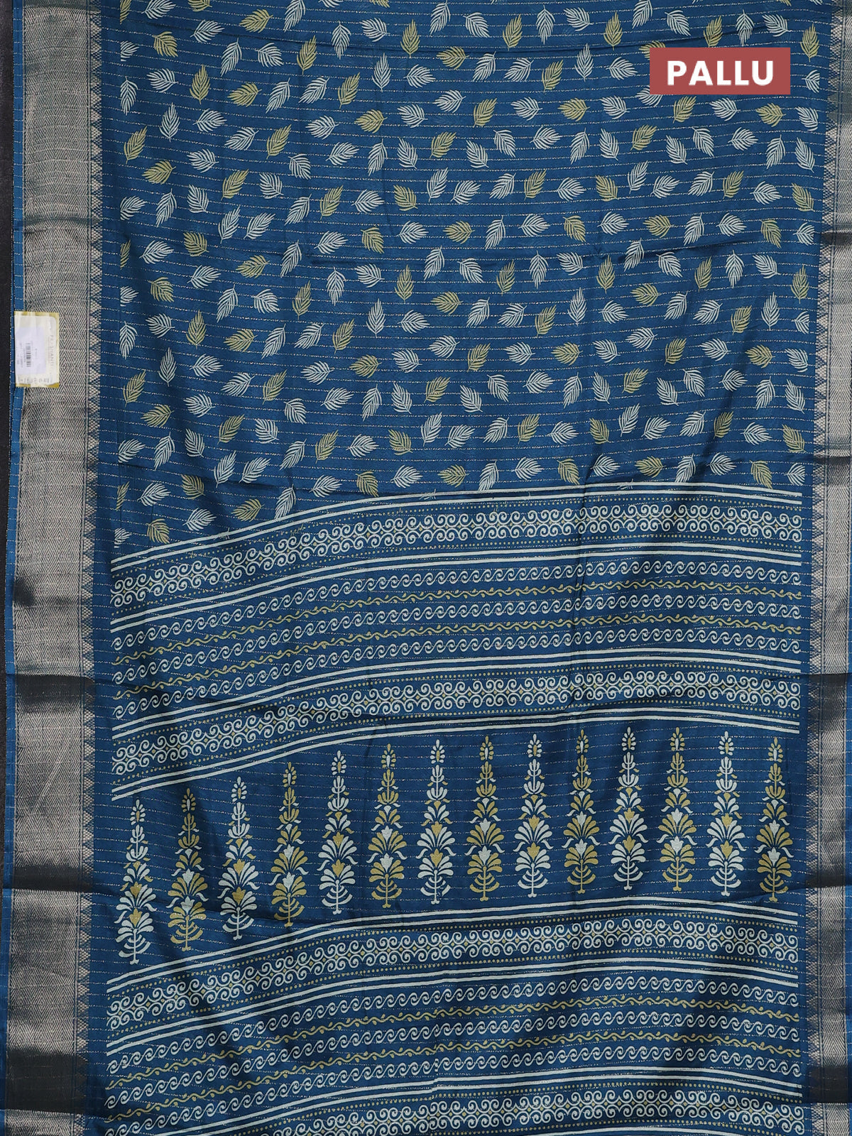 Semi dola saree cs blue with allover zari weaves & leaf prints and zari woven border
