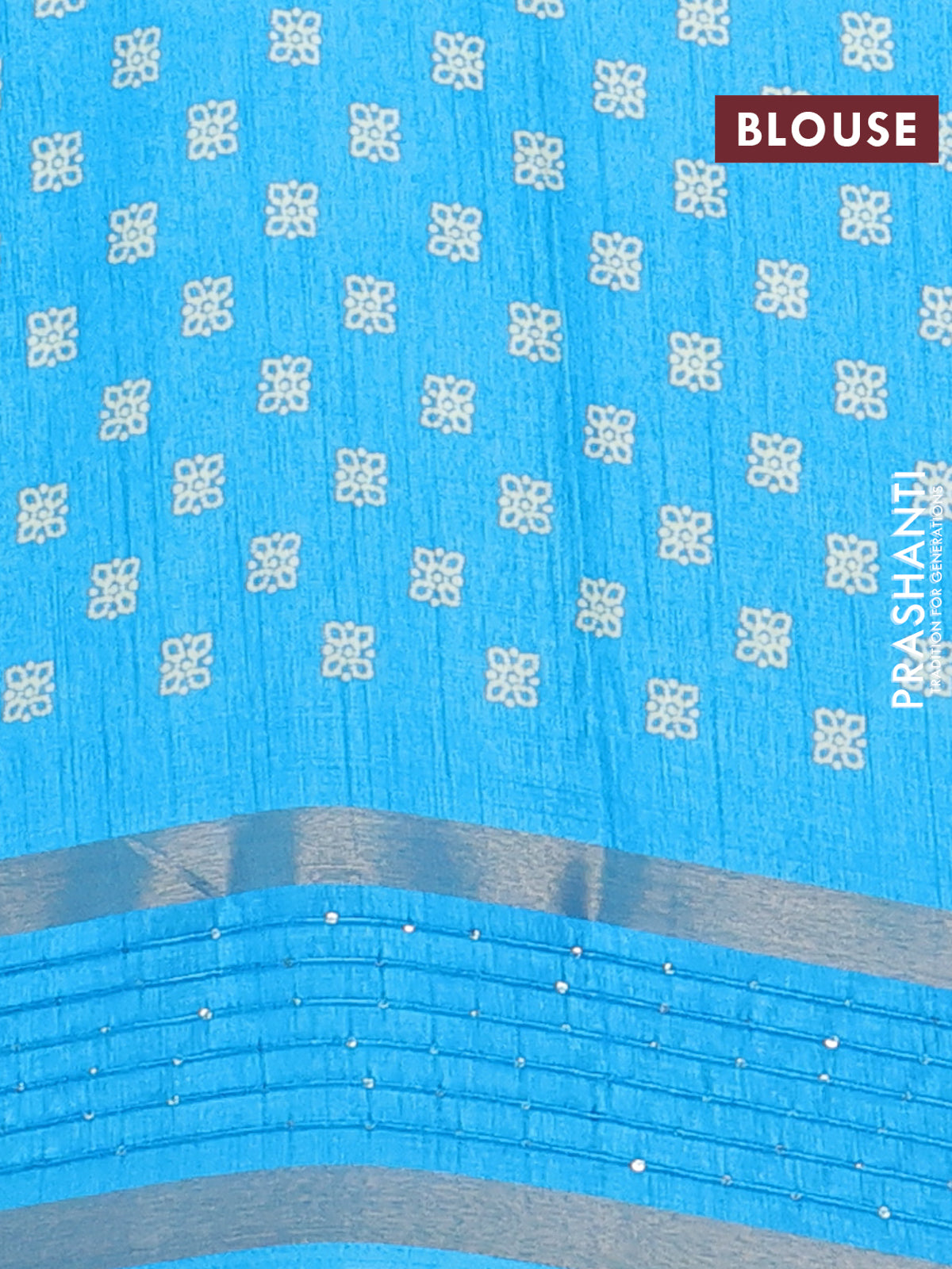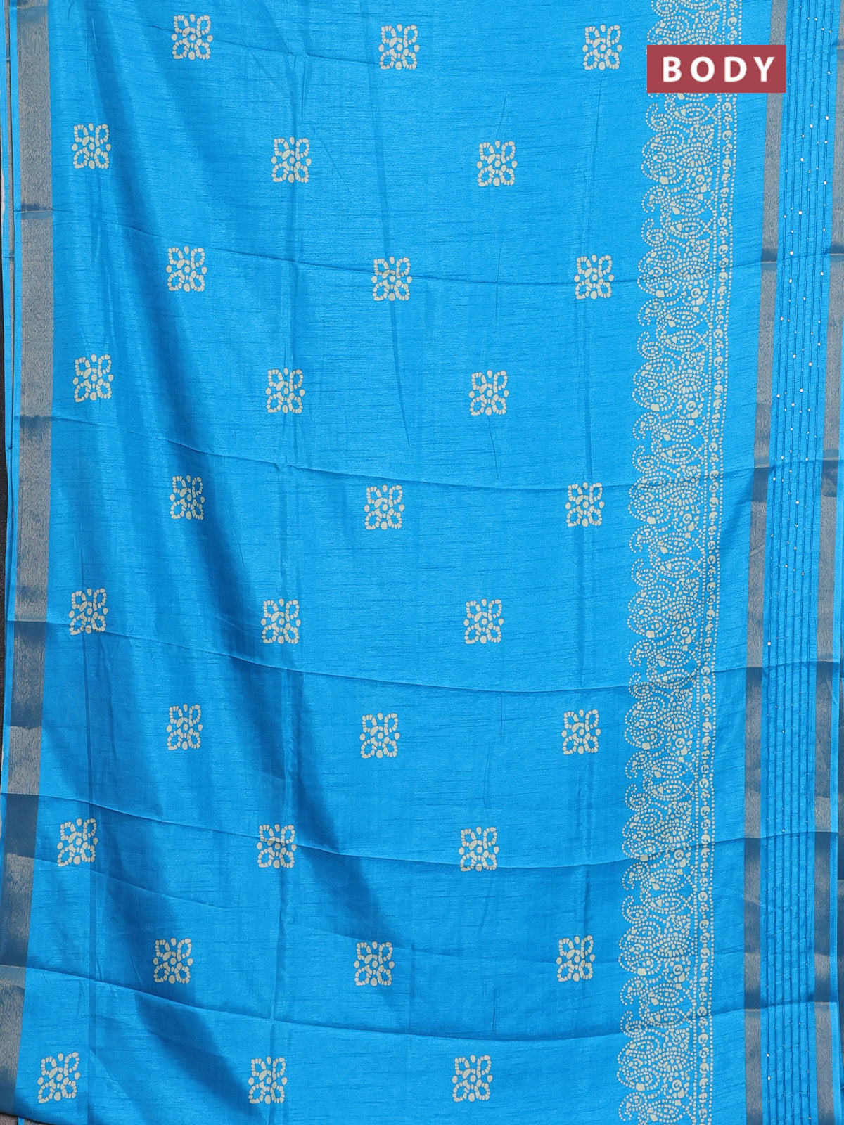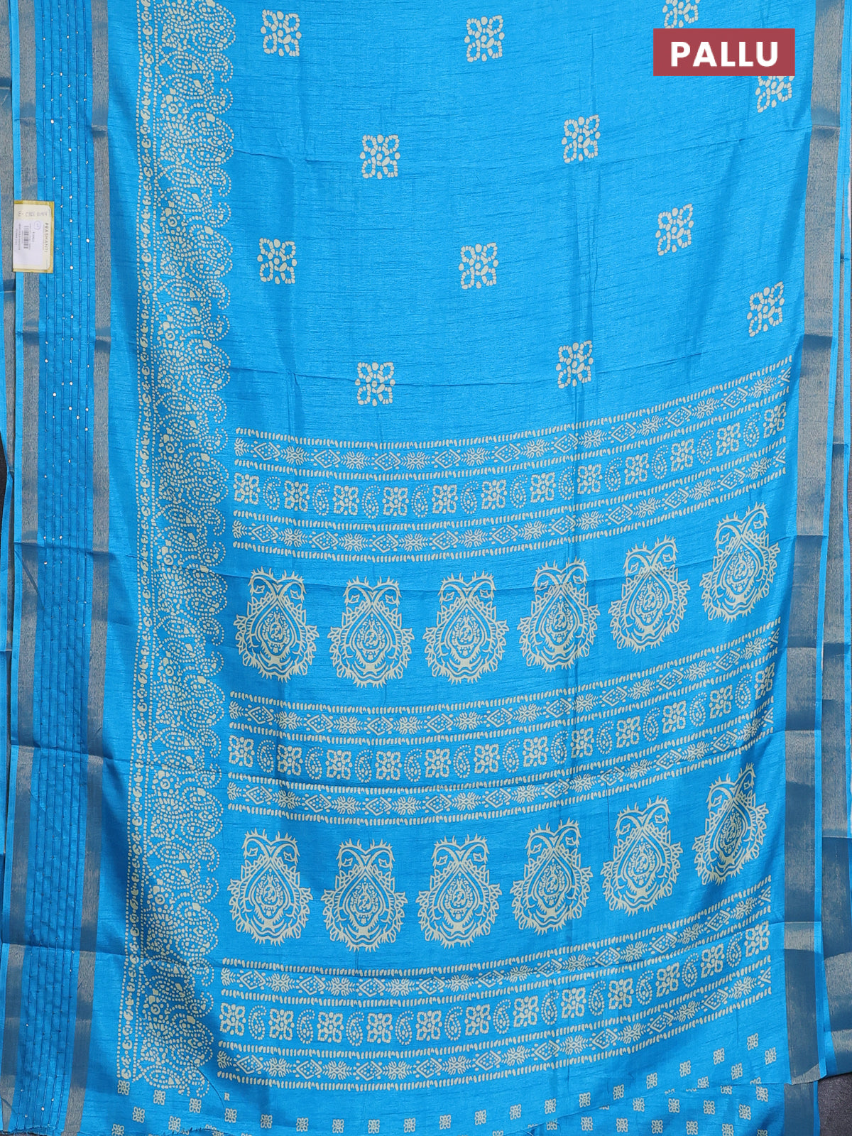 Semi dola saree cs blue with batik butta prints and sequin work border