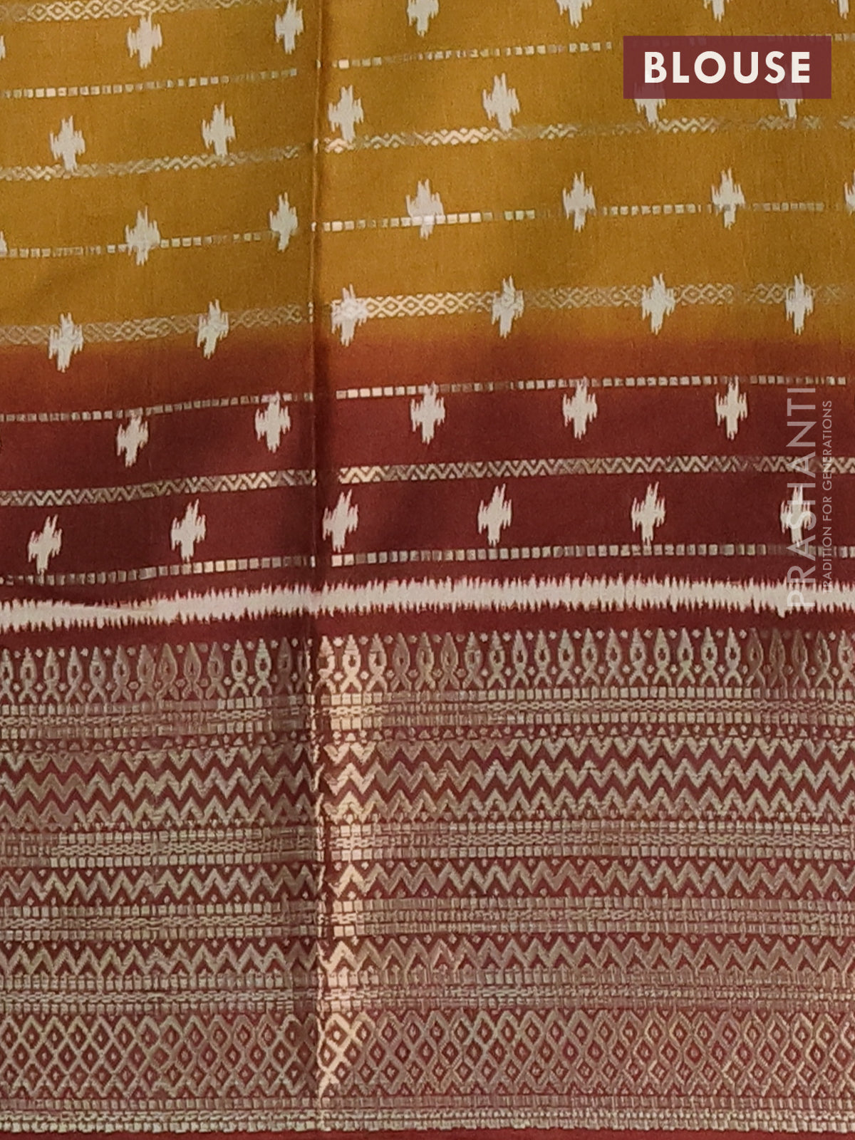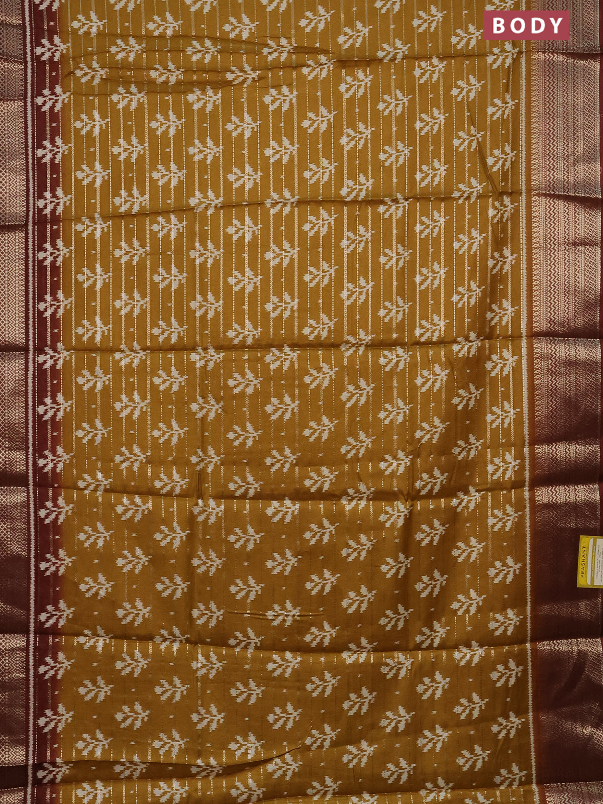 Semi dola saree dark mustard and brown with allover zari weaves & ikat buttas and zari woven border