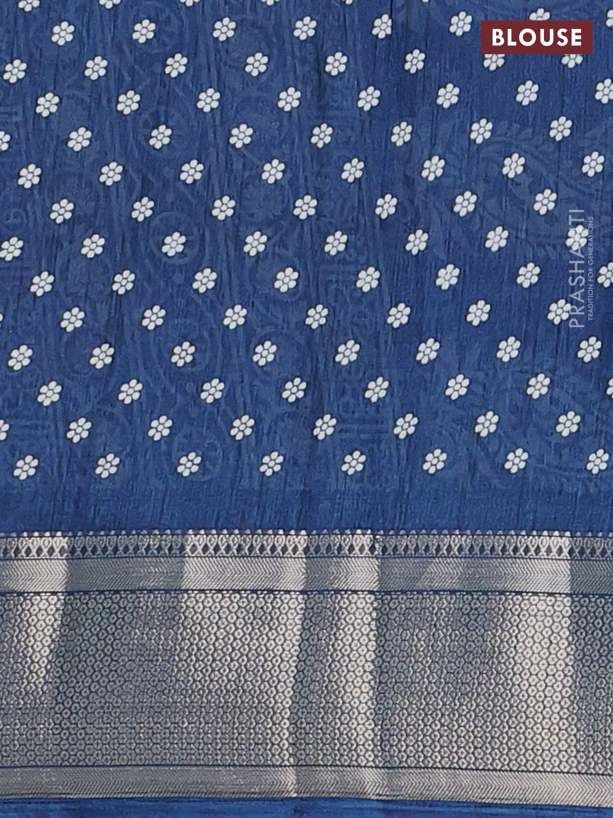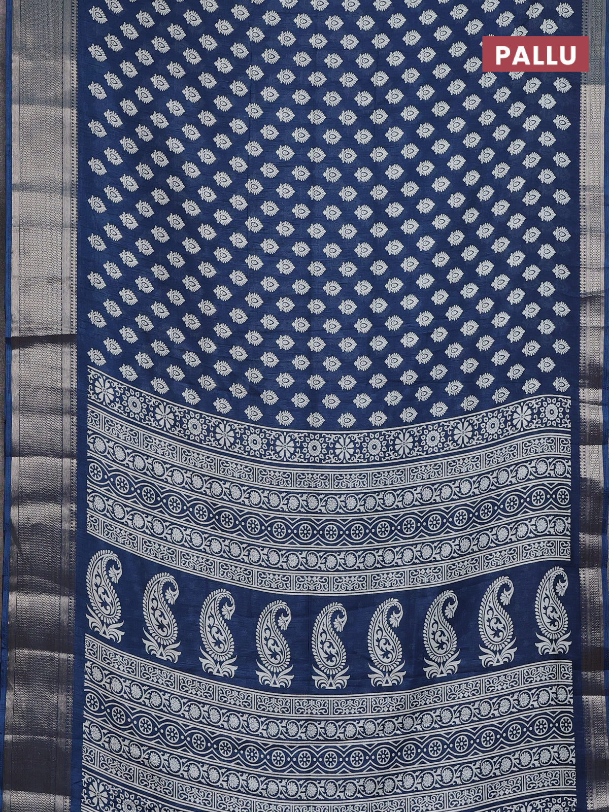 Semi dola saree dark peacock blue with allover butta prints and zari woven border