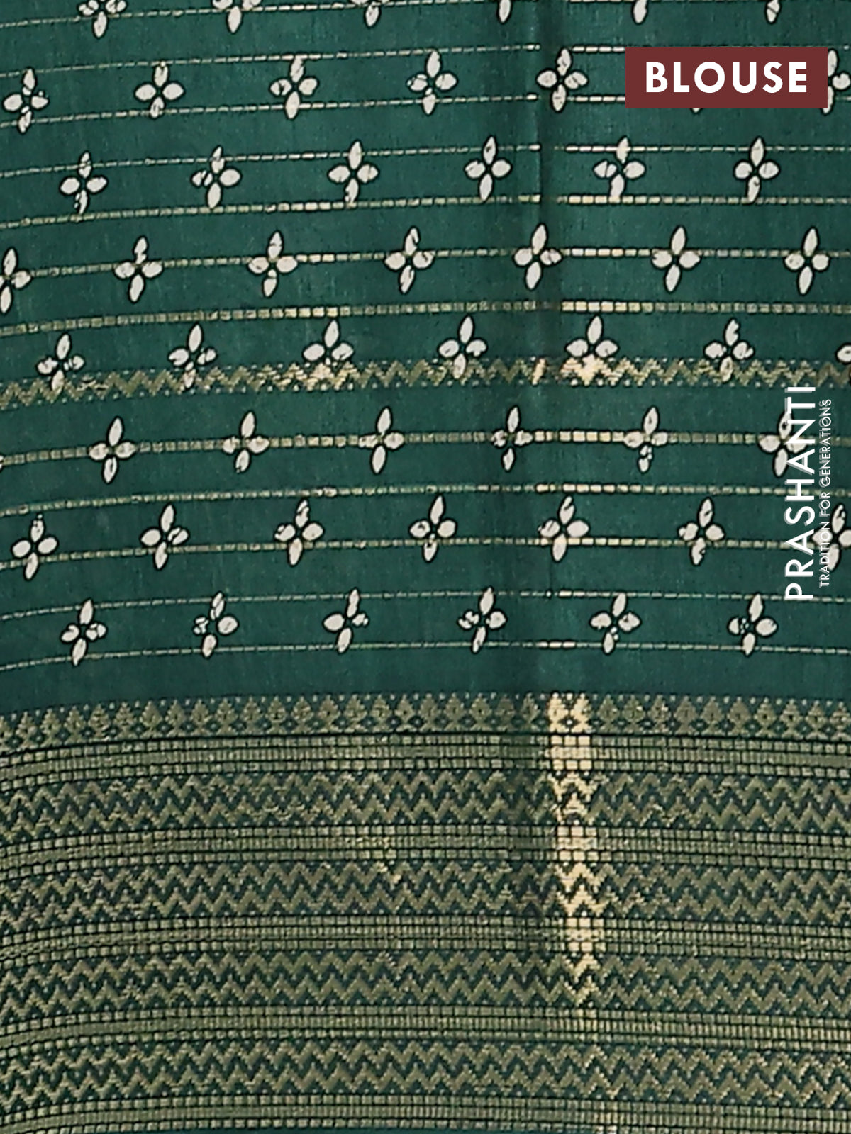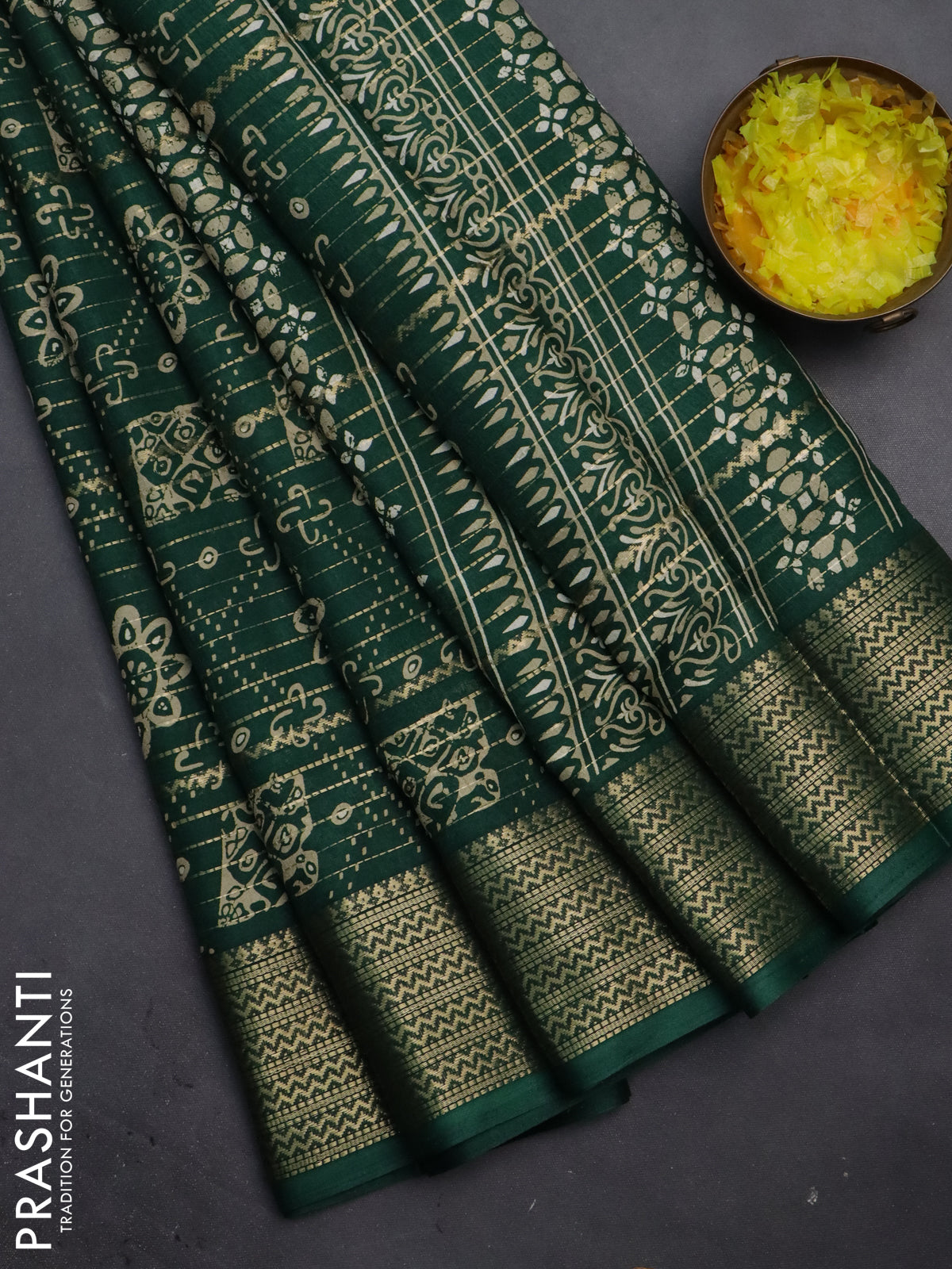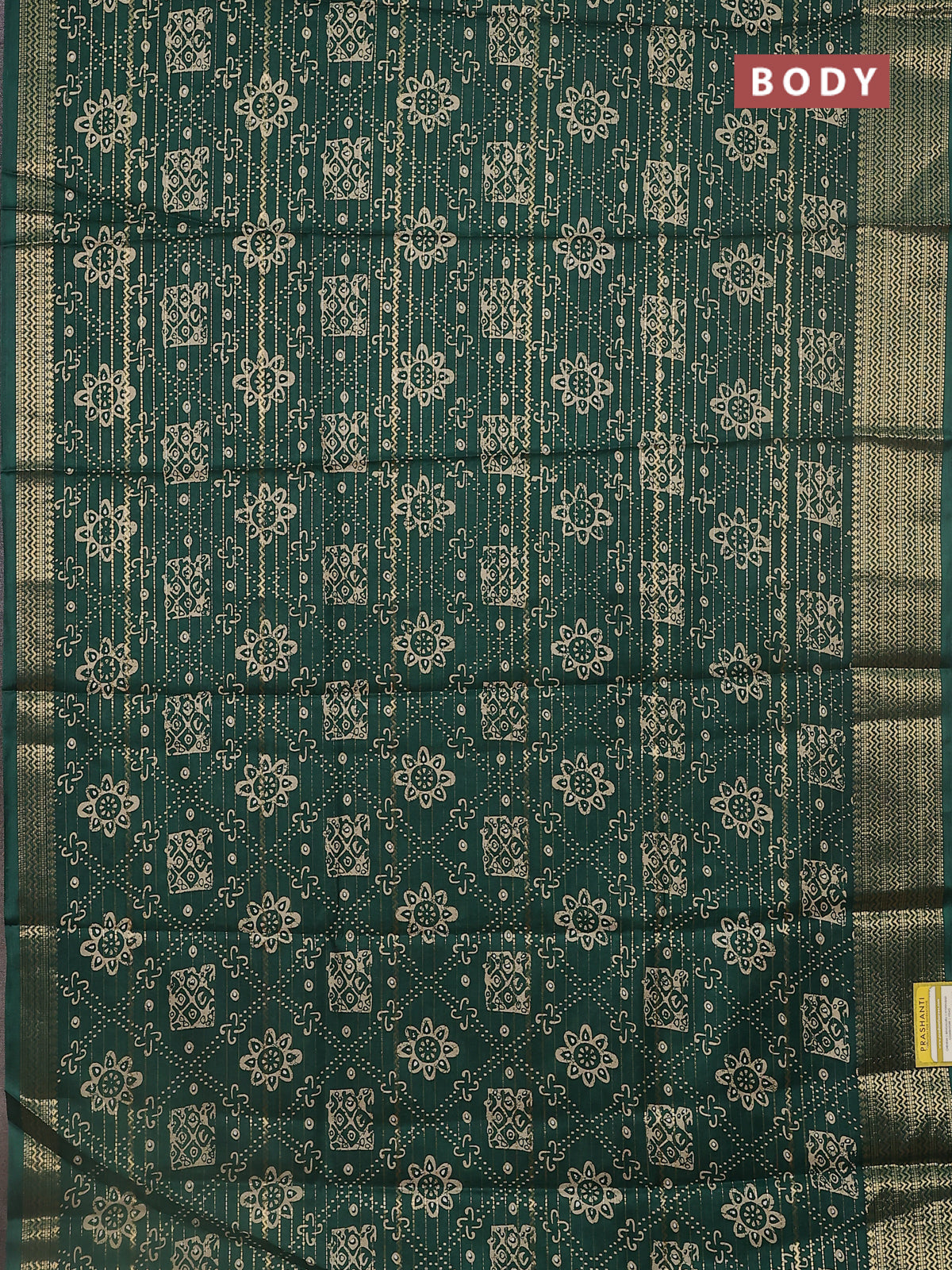 Semi dola saree green with allover zari stripes & prints and zari woven border