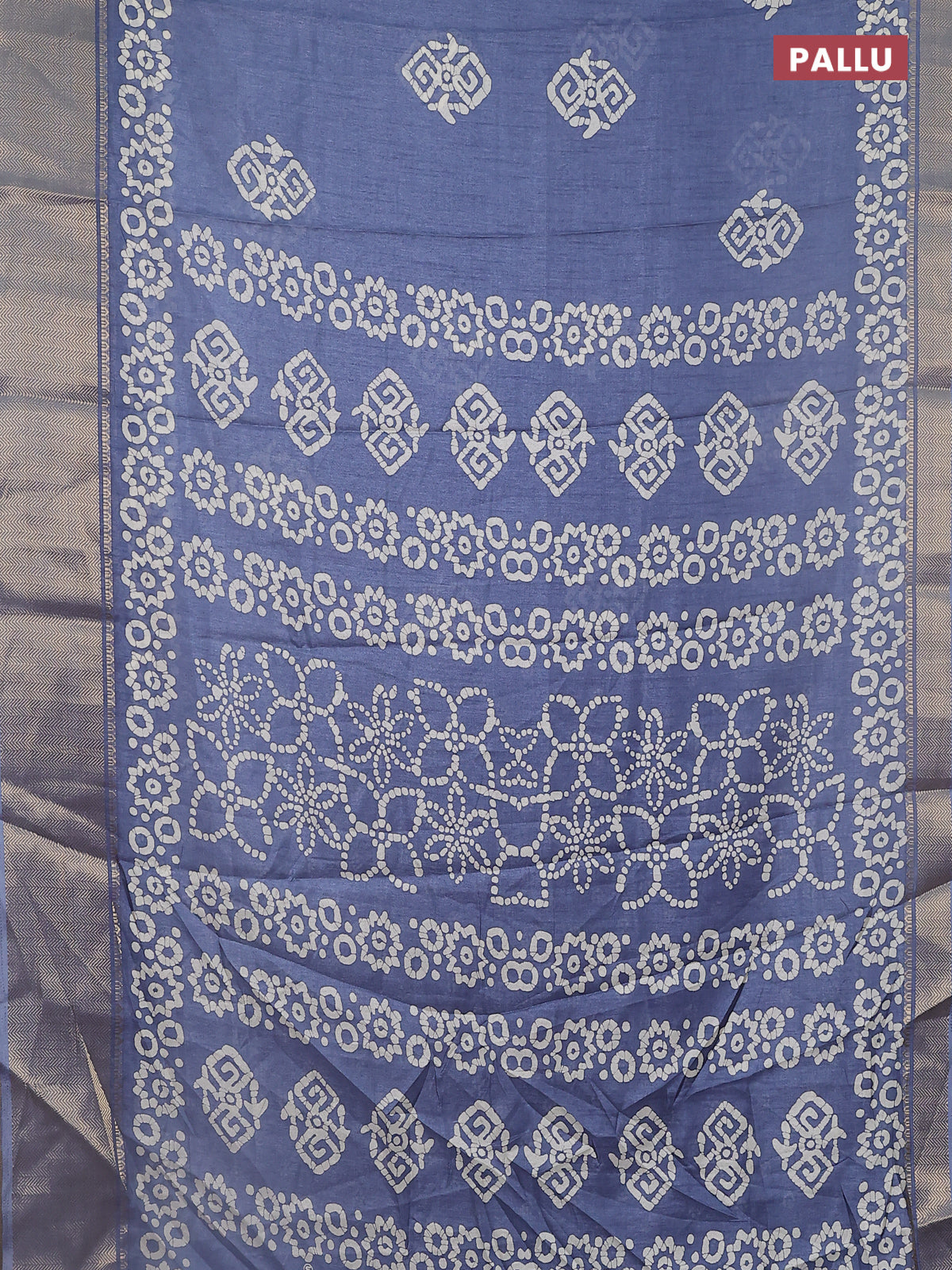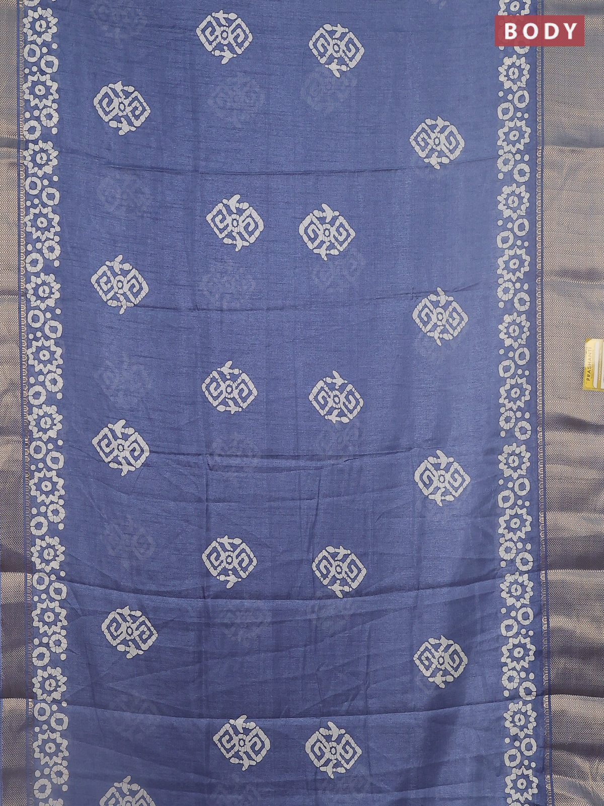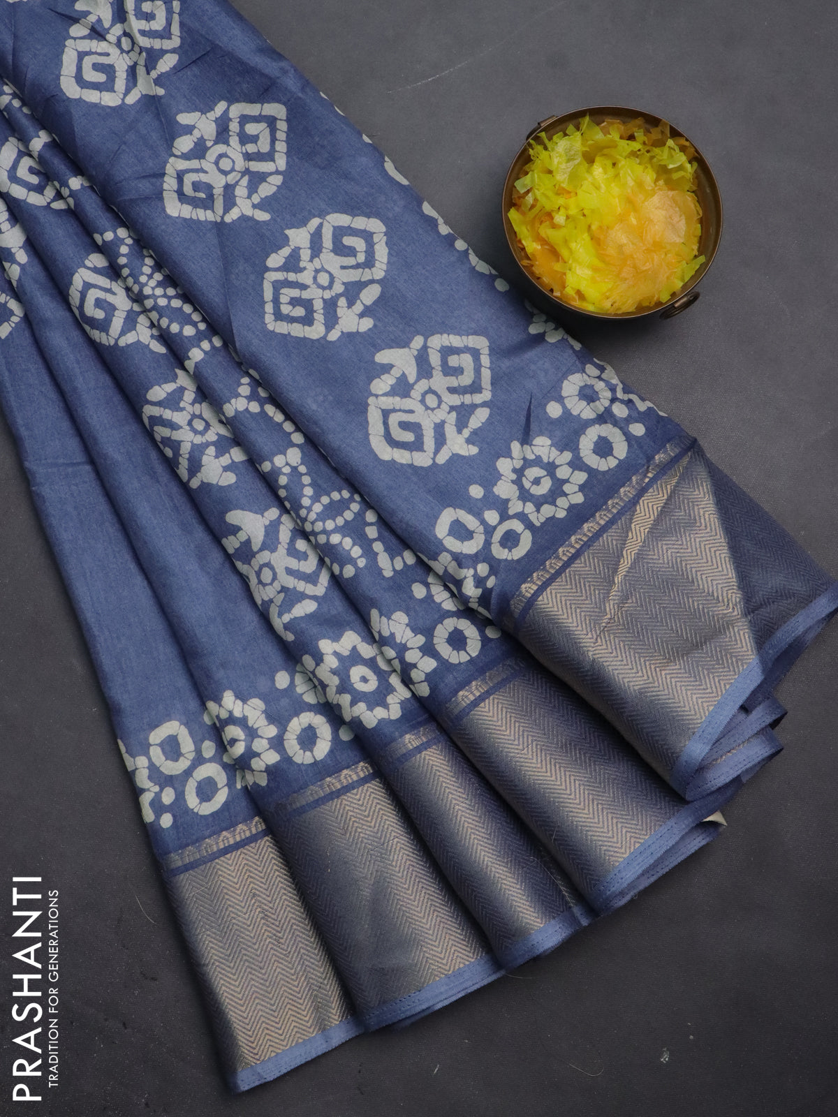 Semi dola saree grey with batik butta prints and zari woven border