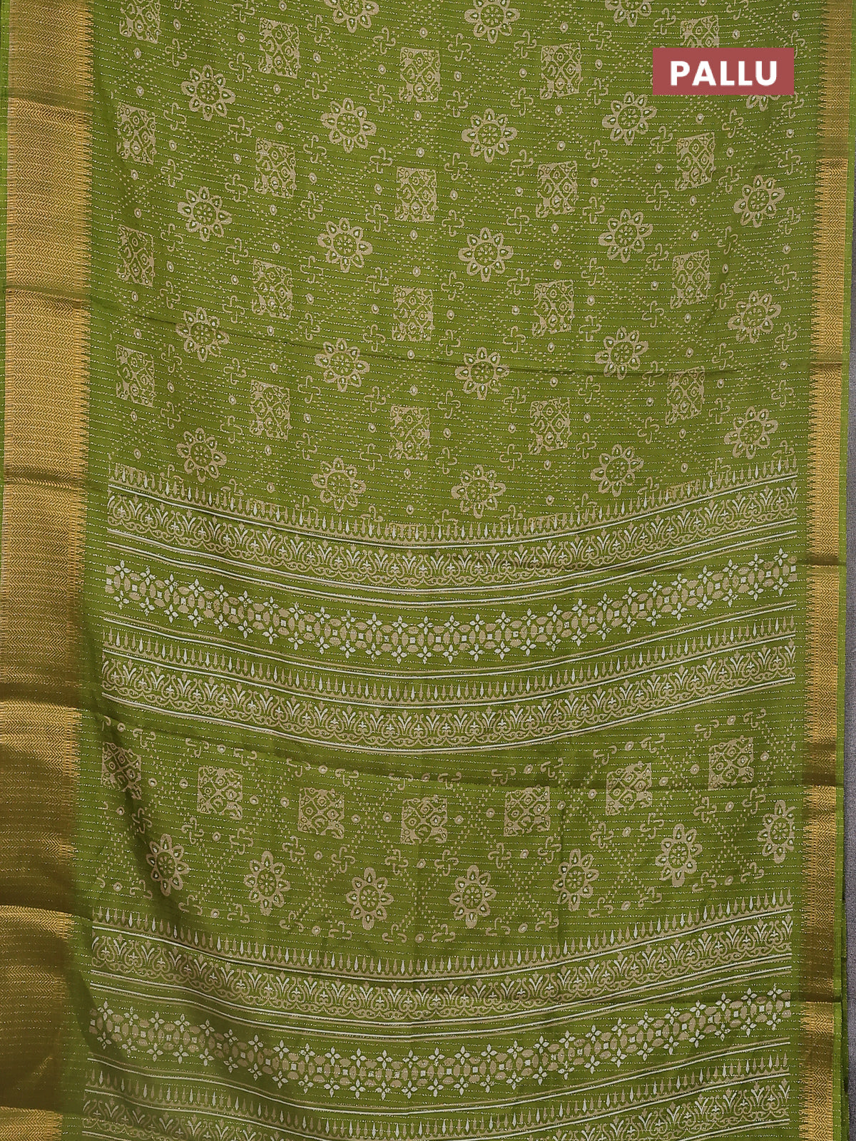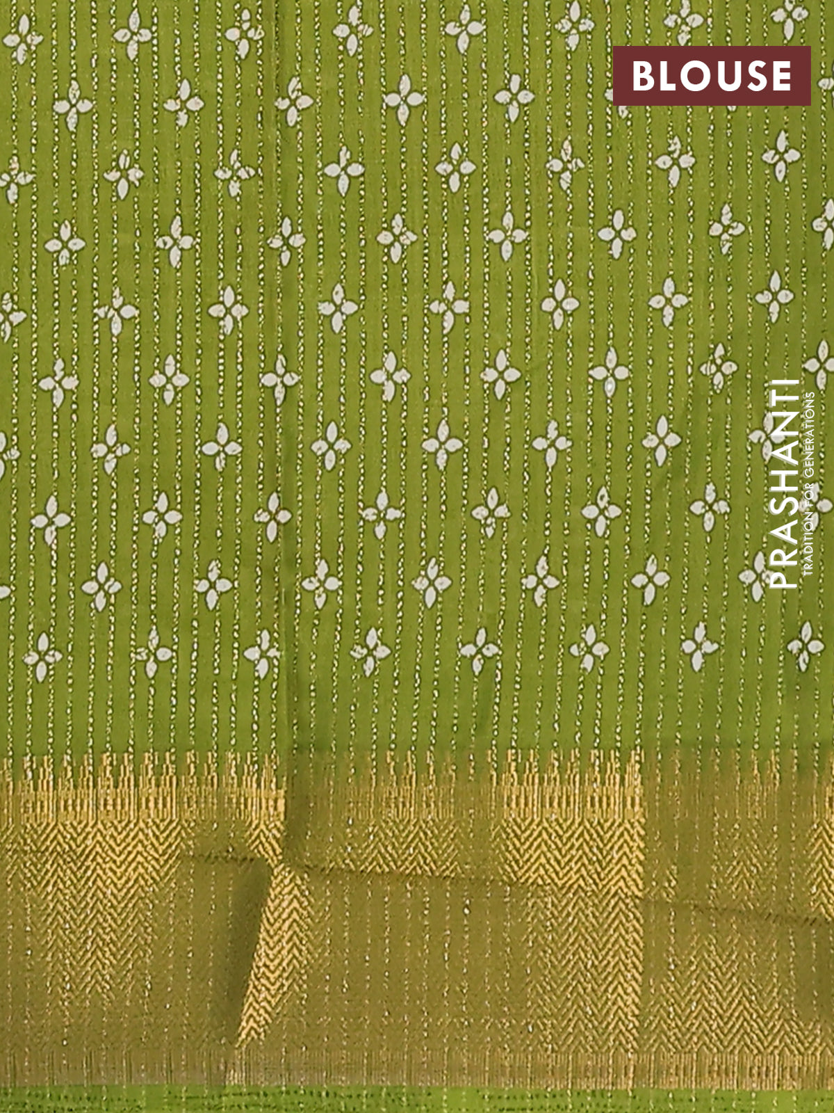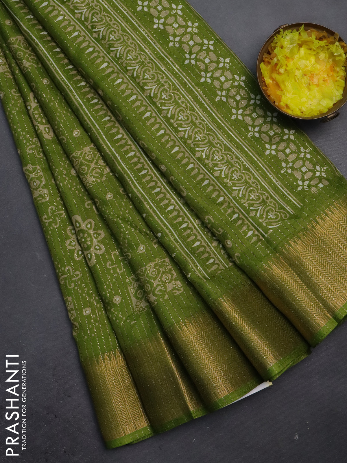 Semi dola saree light green with allover zari stripes & prints and zari woven border