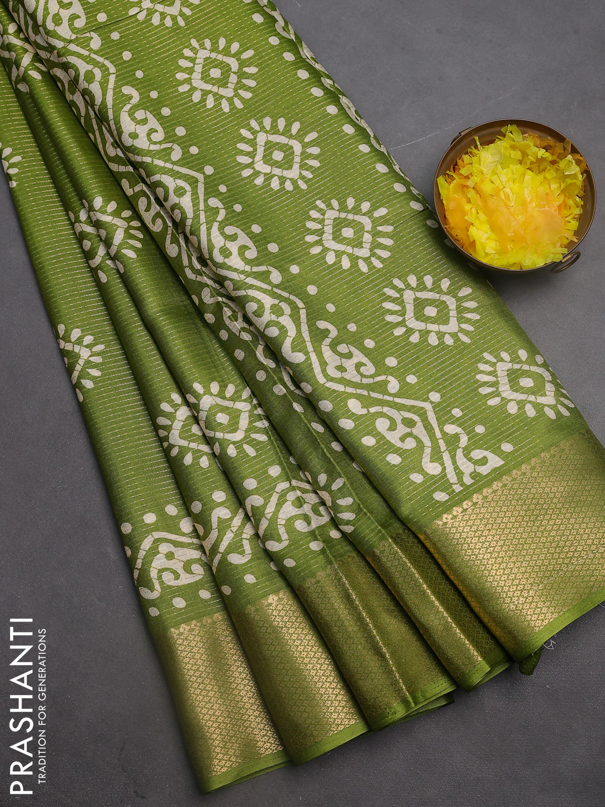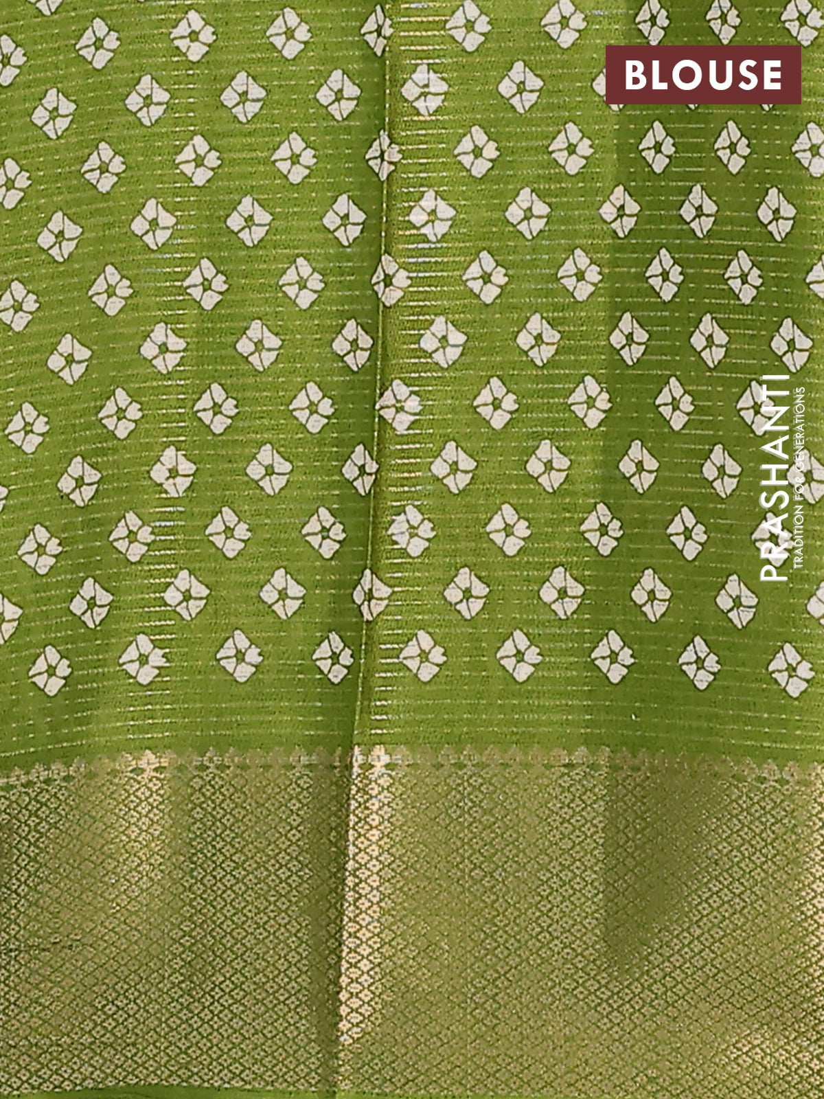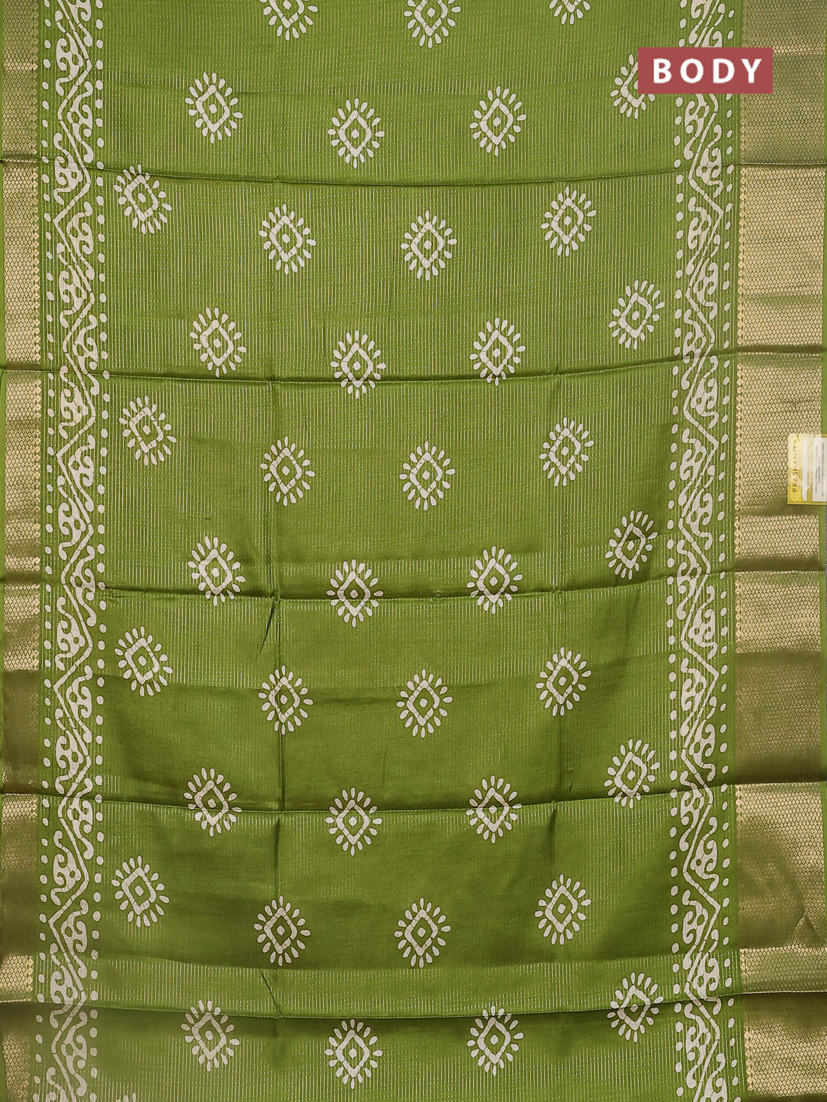 Semi dola saree light green with allover zari weaves & batik butta prints and zari woven border