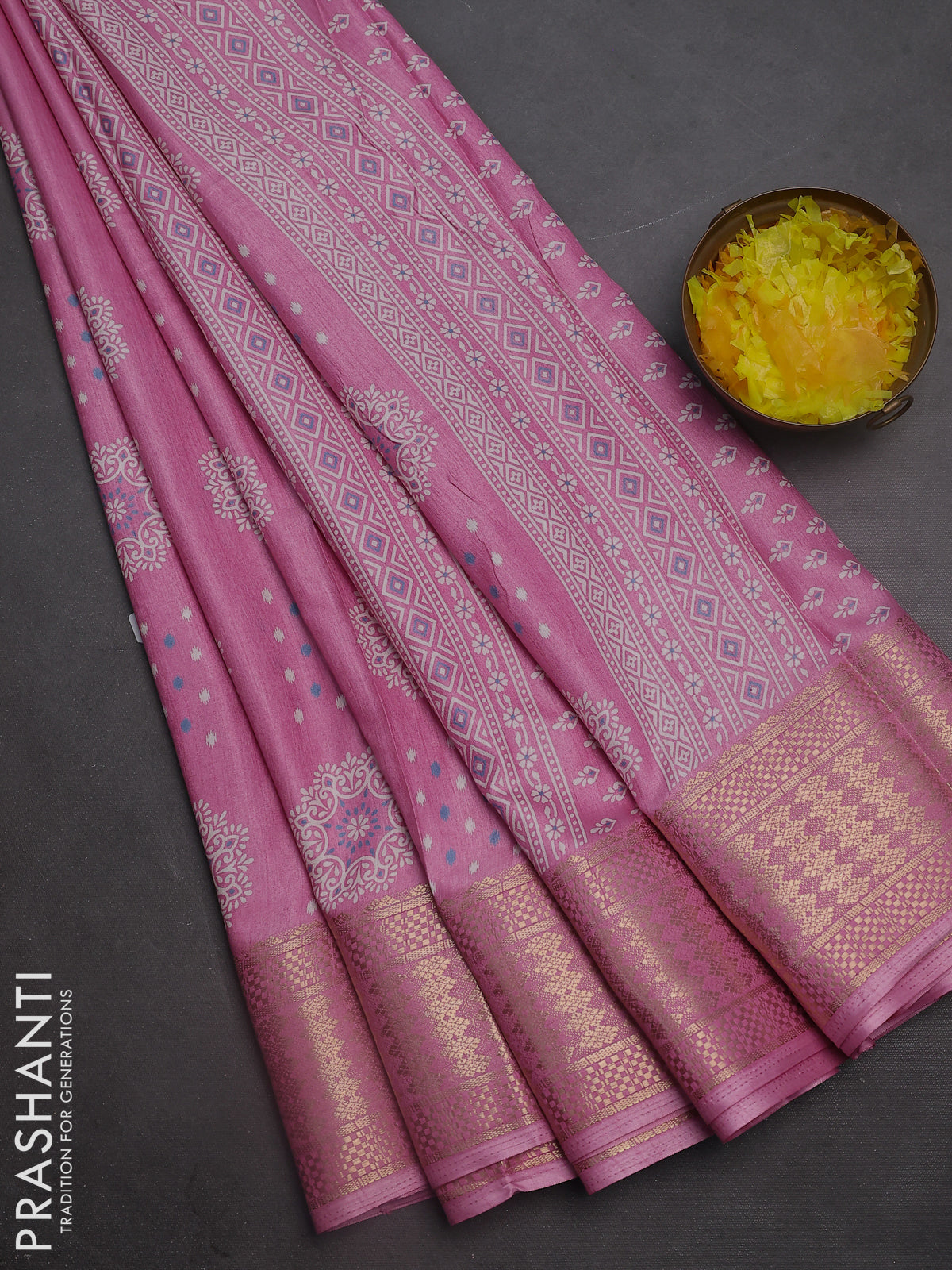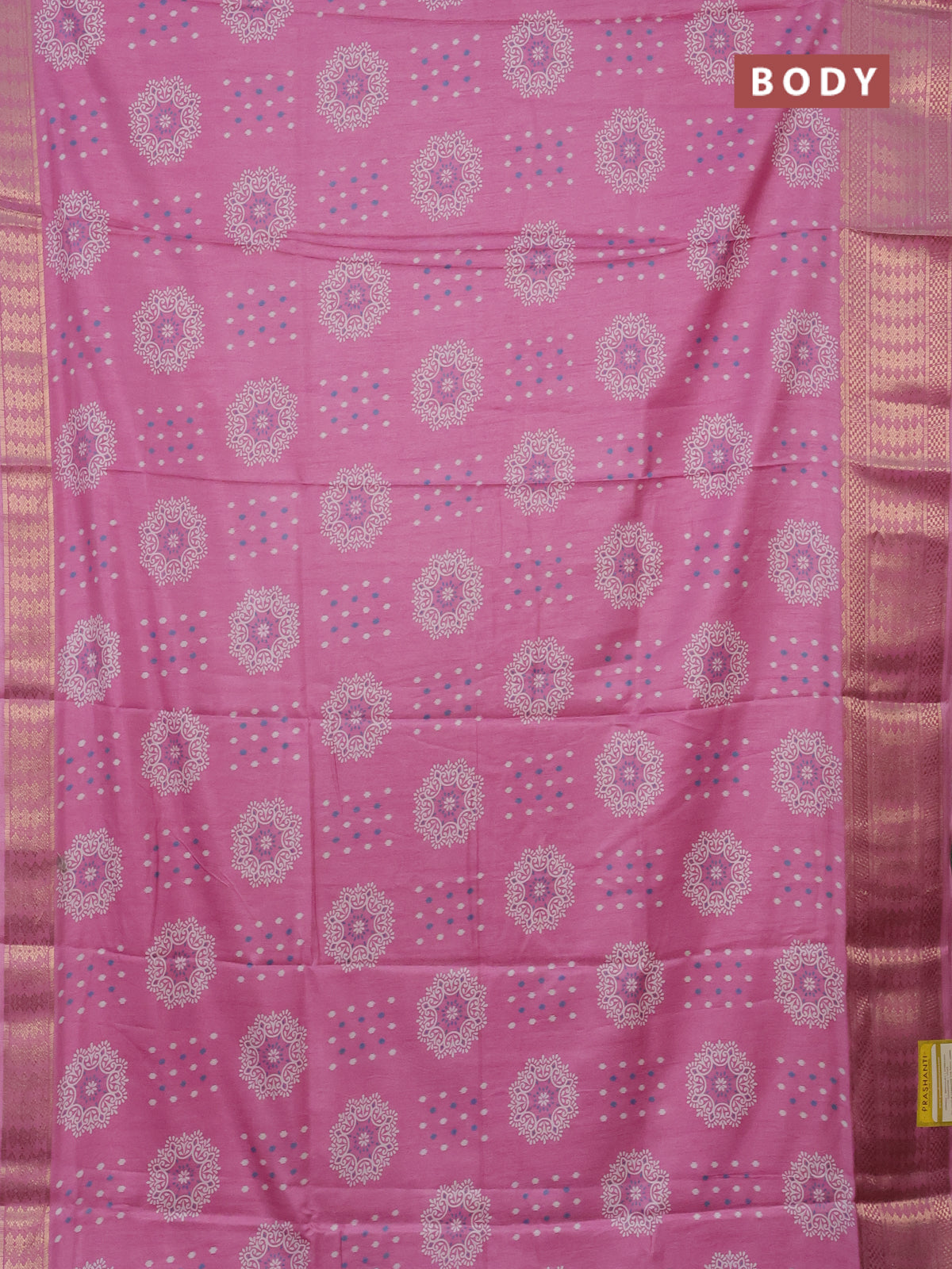 Semi dola saree lightpink with allover butta prints and zari woven border