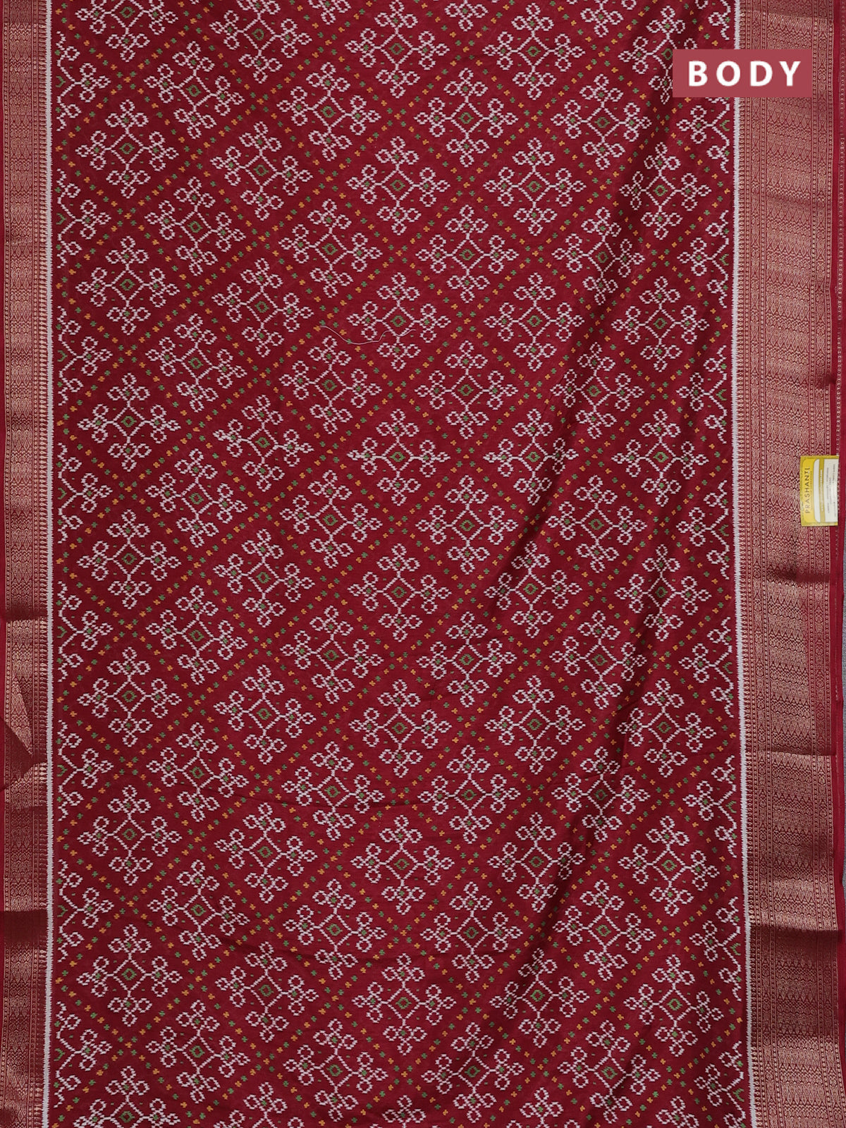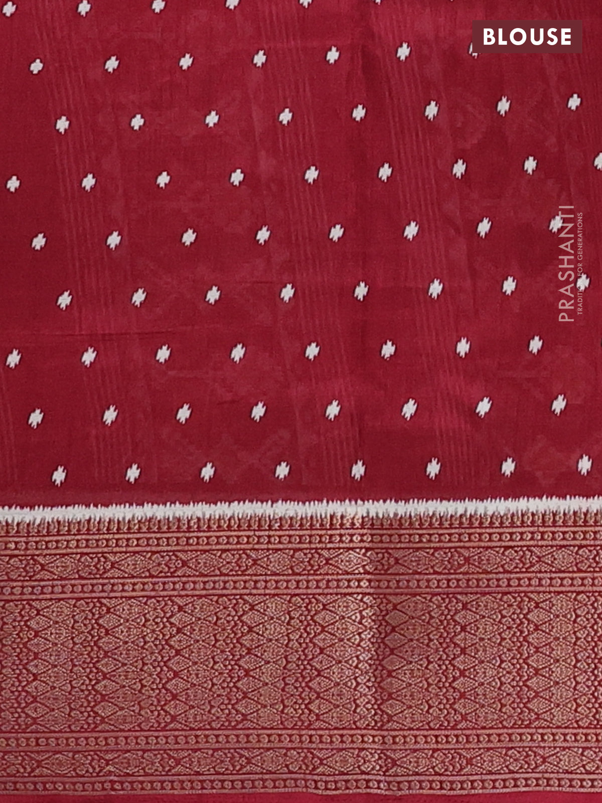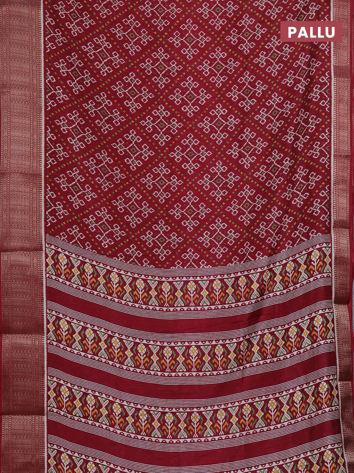 Semi dola saree maroon with allover ikat prints and zari woven border