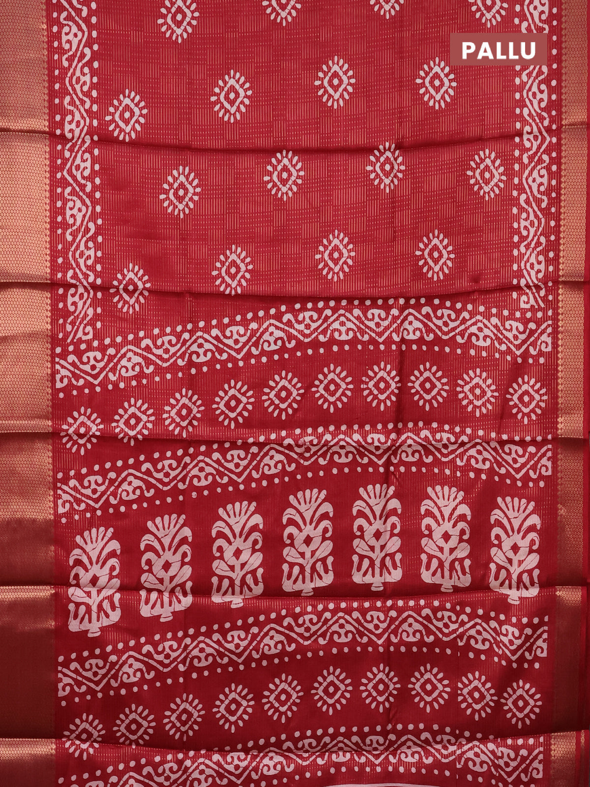 Semi dola saree maroon with allover zari weaves & batik butta prints and zari woven border