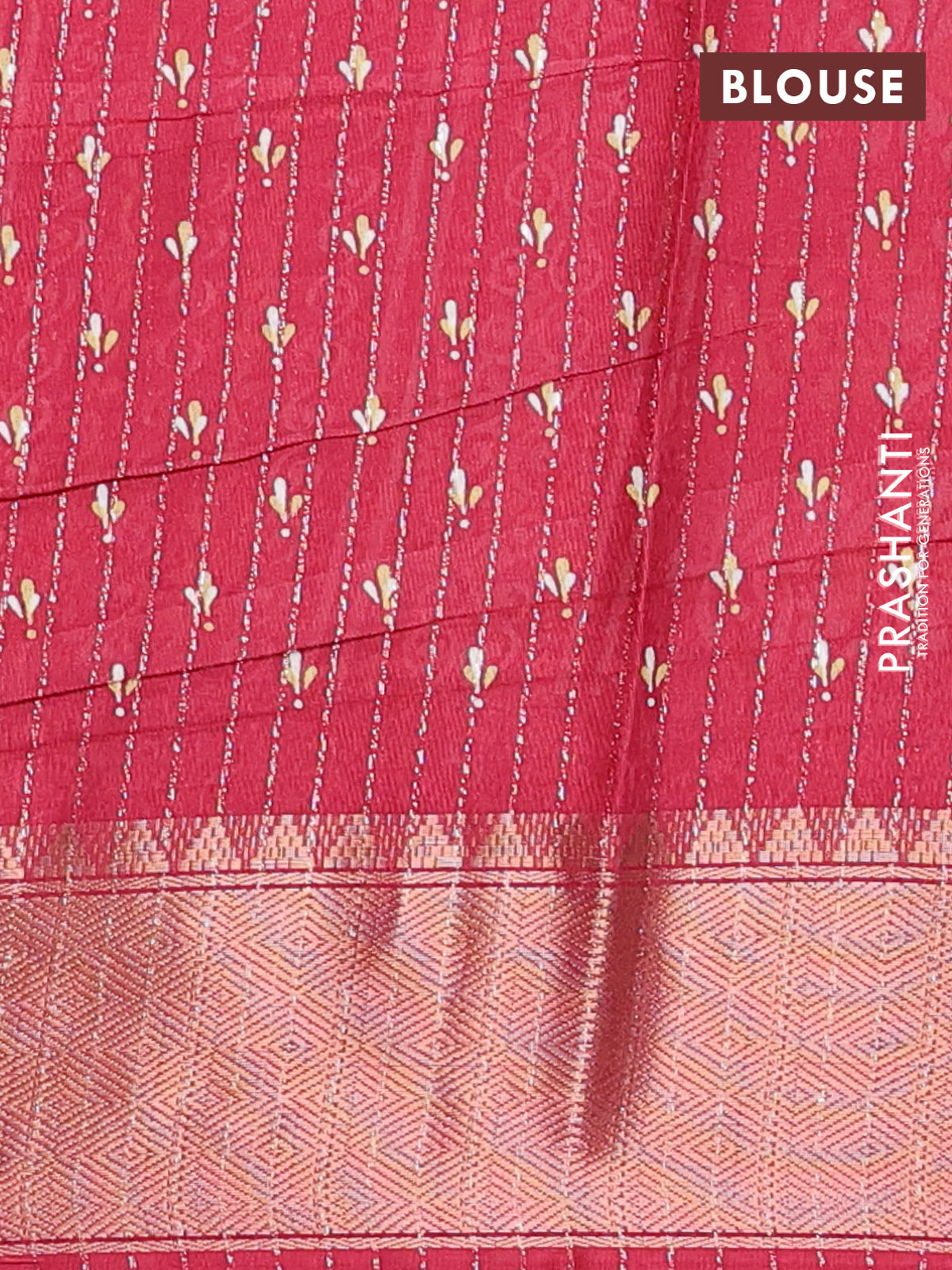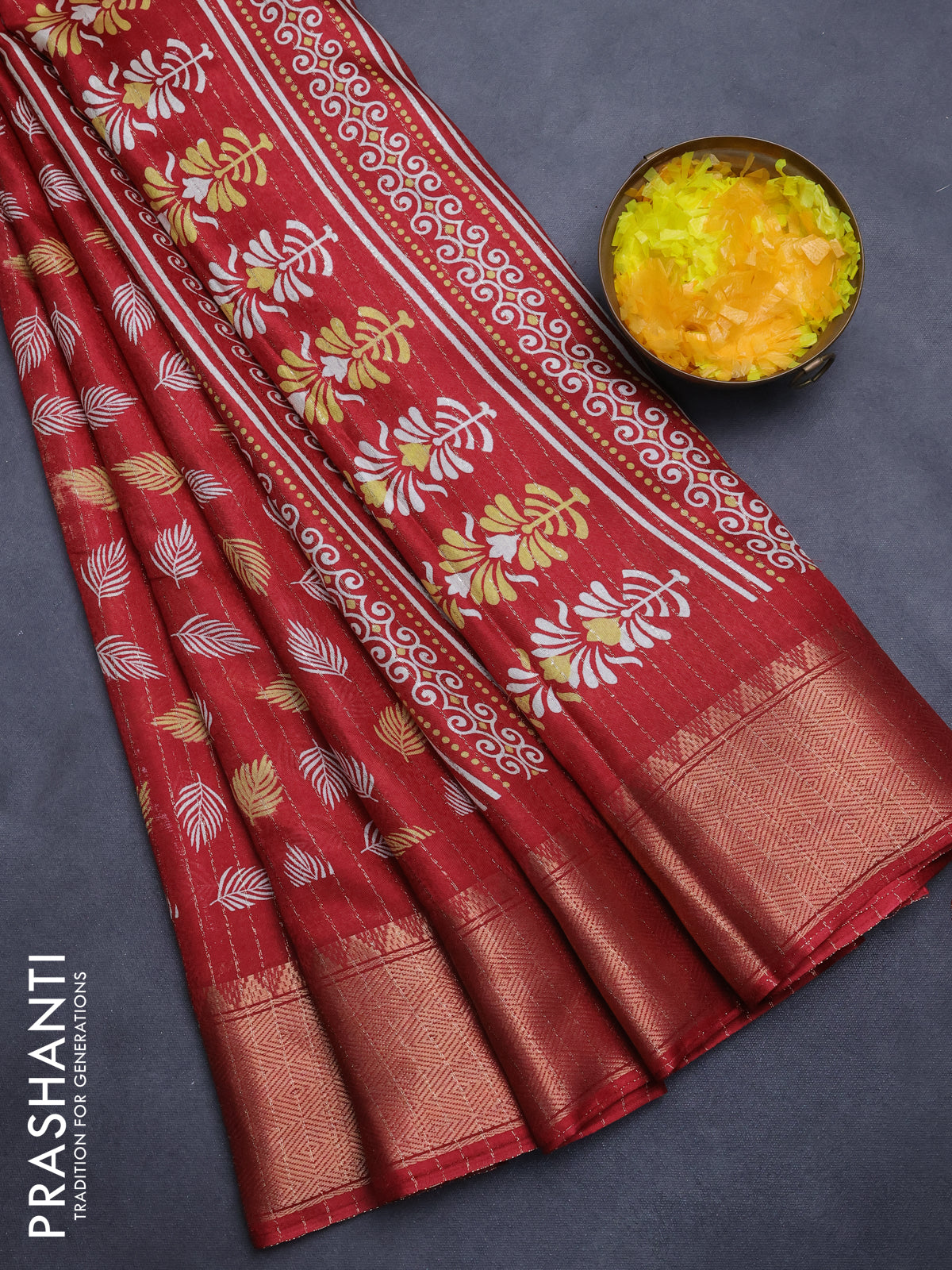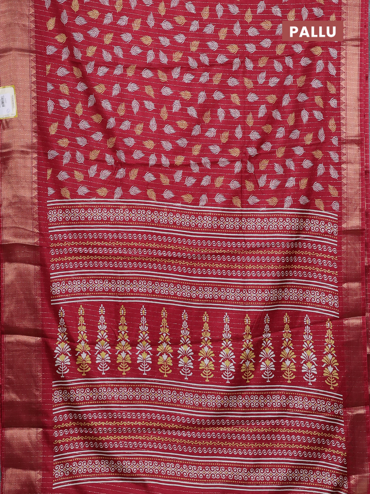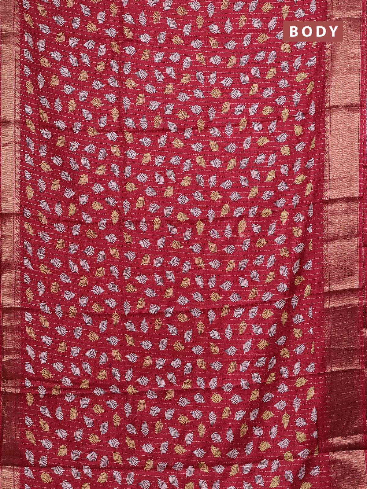 Semi dola saree maroon with allover zari weaves & leaf prints and zari woven border