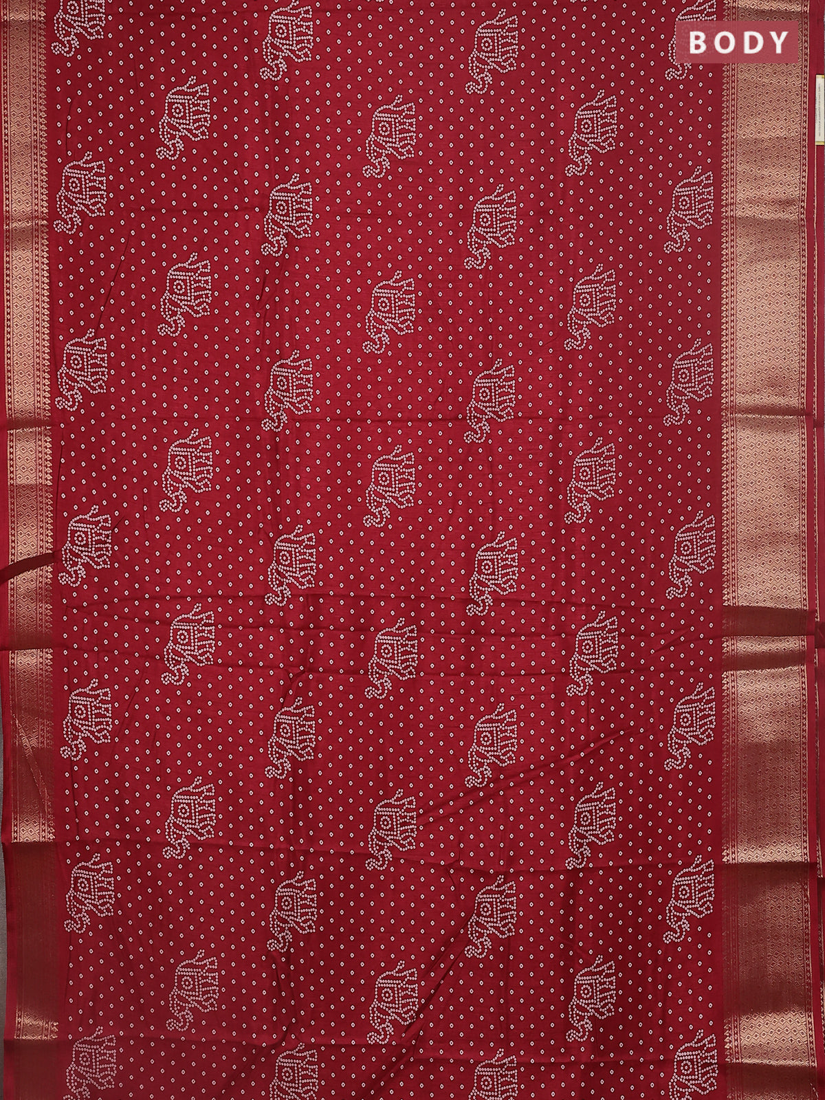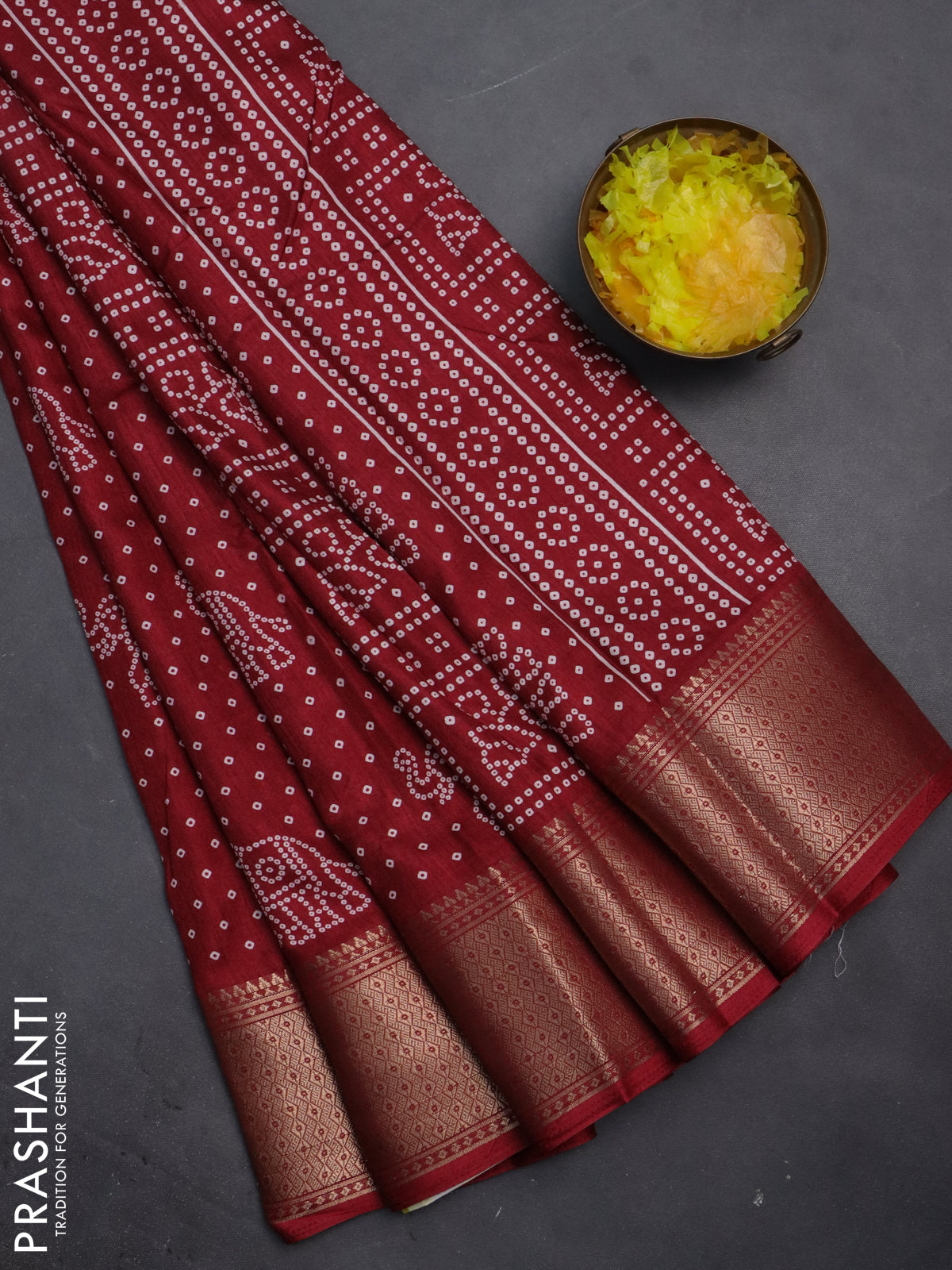Semi dola saree maroon with bandhani butta prints and zari woven border