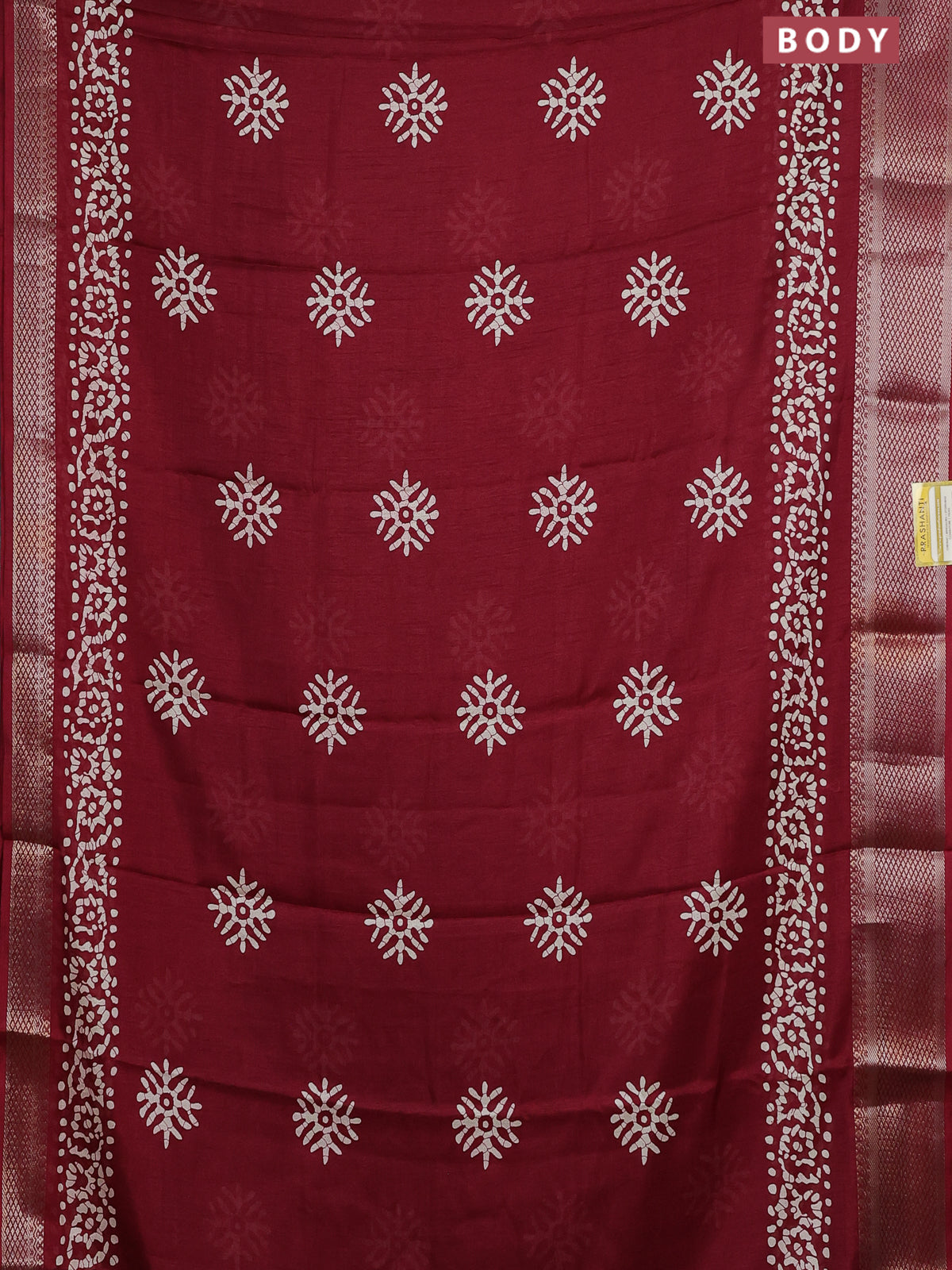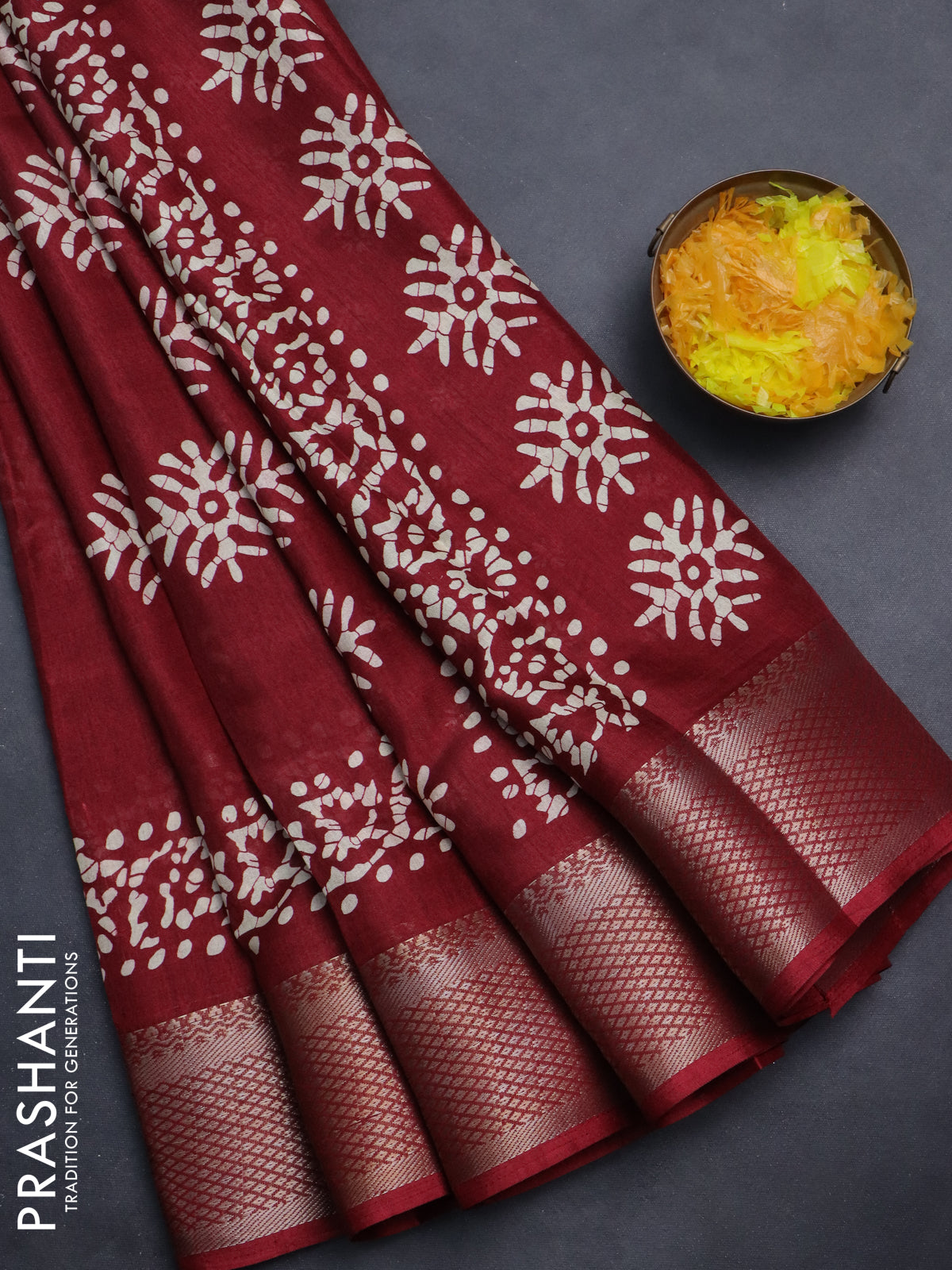 Semi dola saree maroon with butta prints and zari woven border