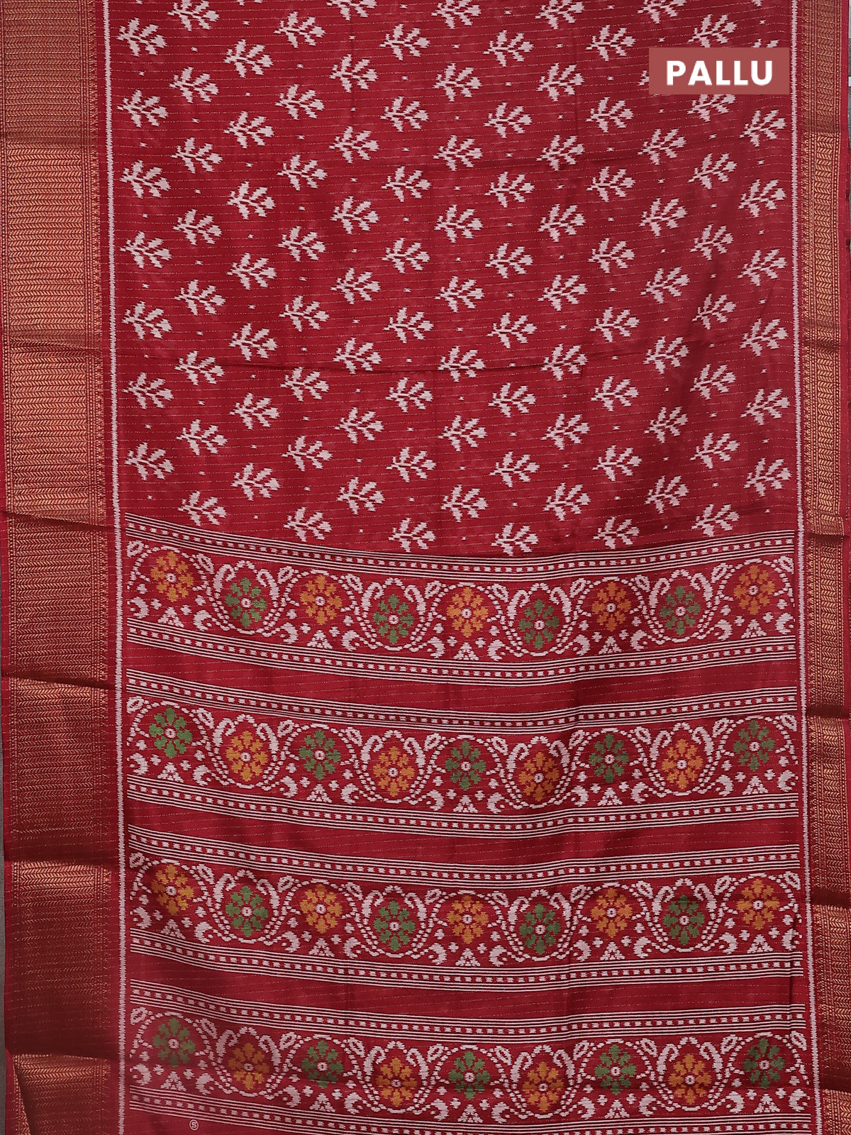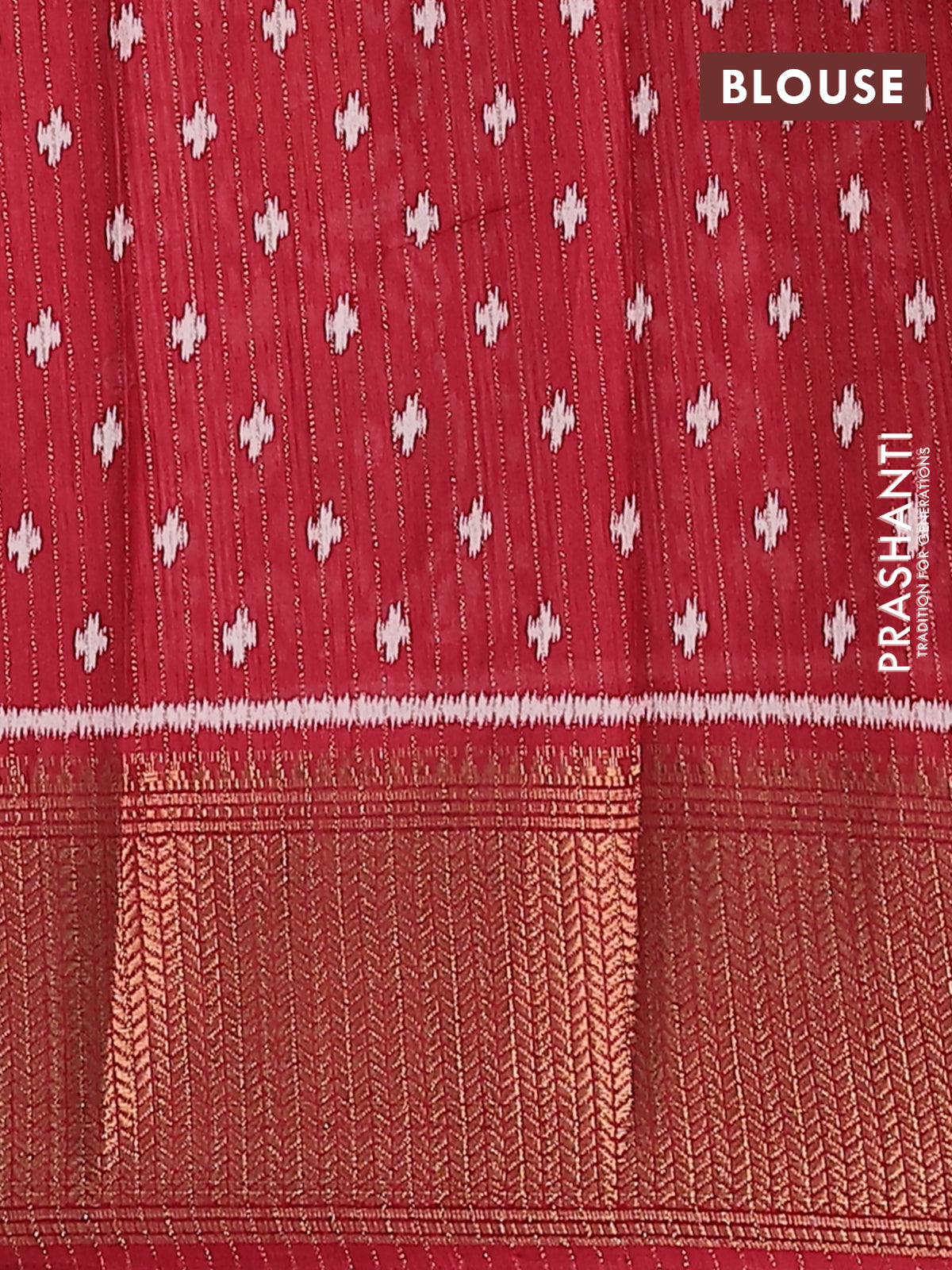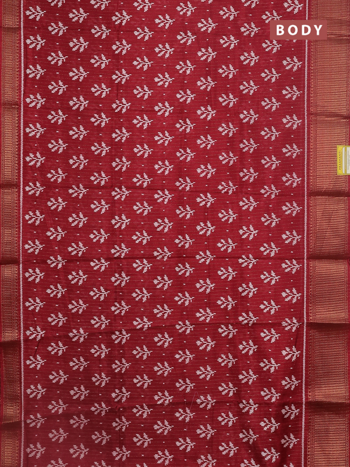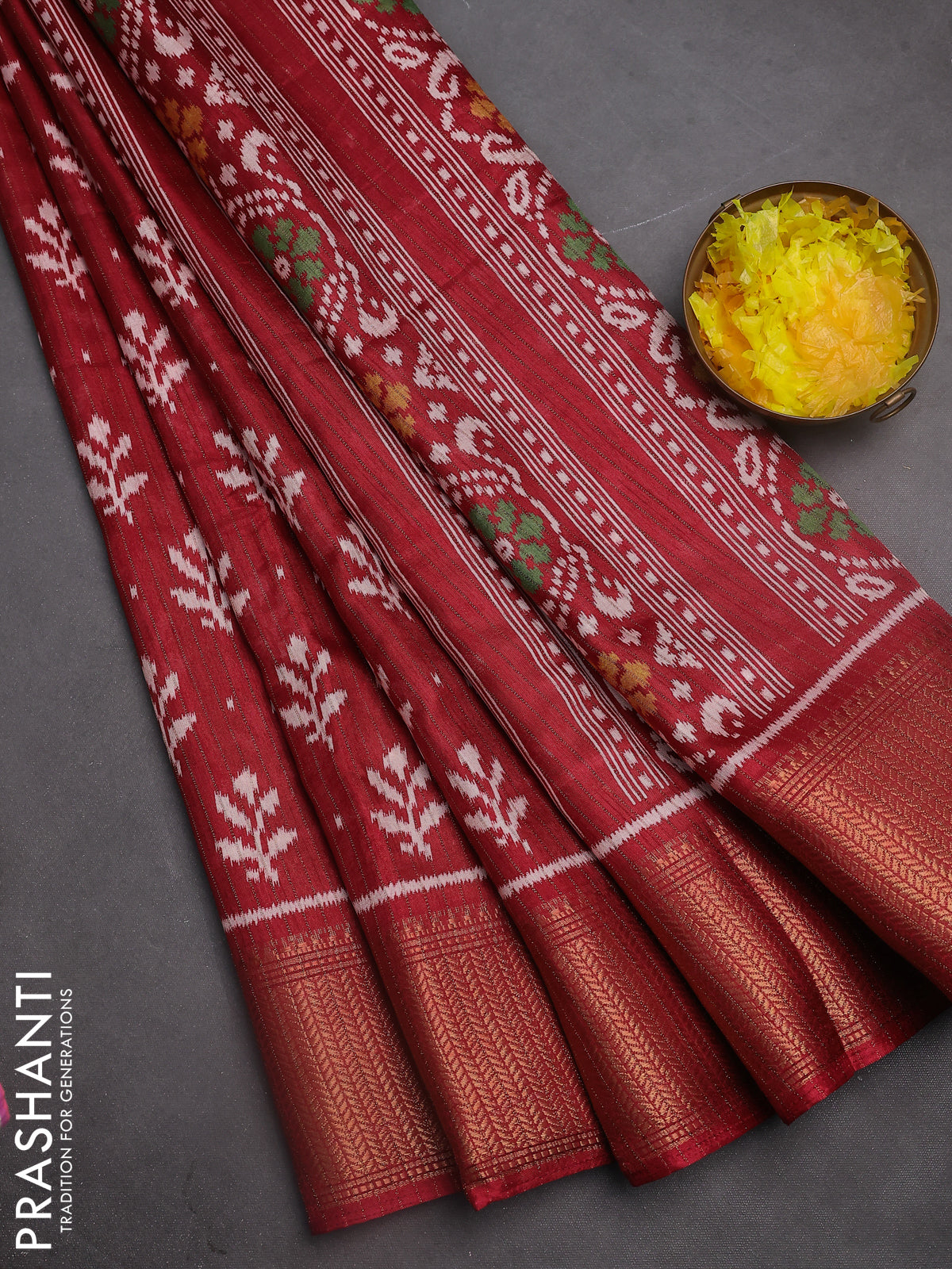 Semi dola saree maroon with zari stripes pattern & ikat prints and zari woven border