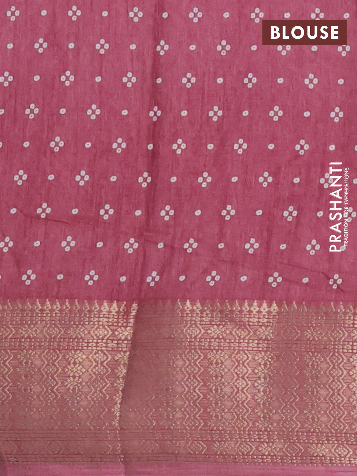 Semi dola saree mauve pink with allover bandhani prints and zari woven border