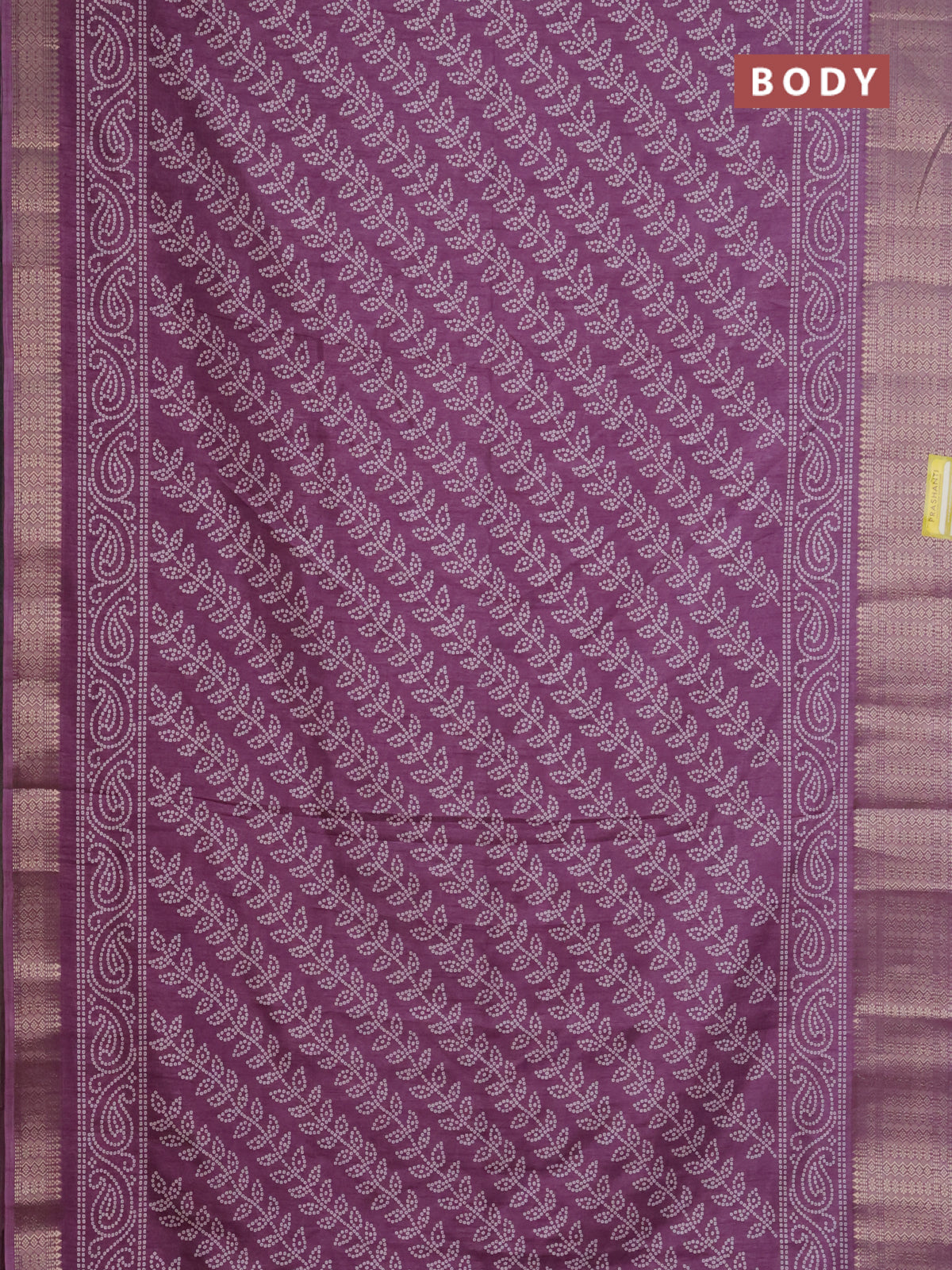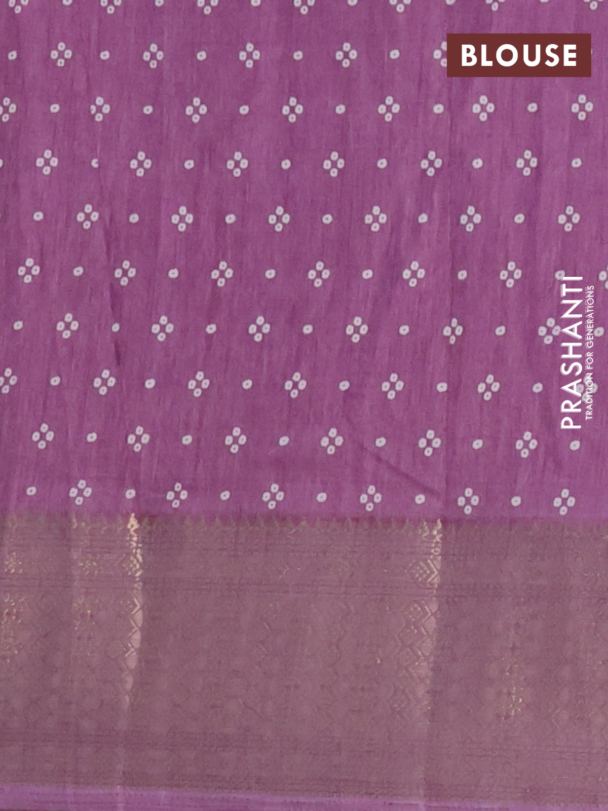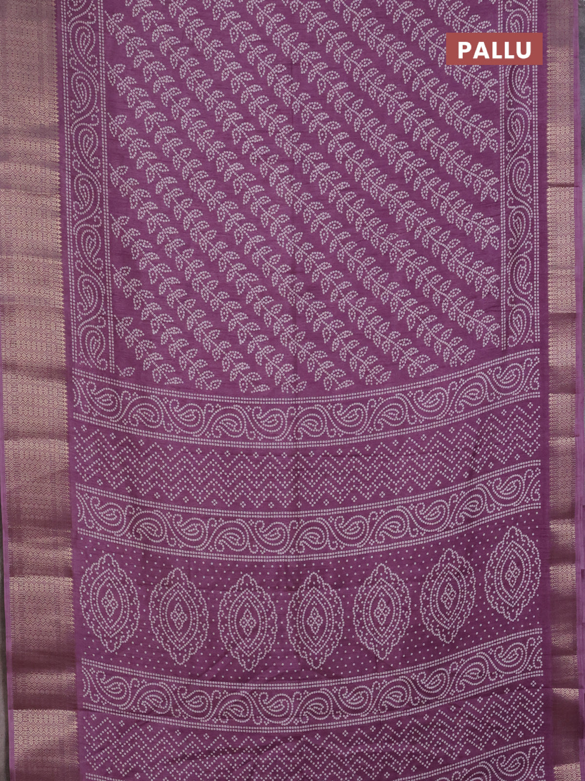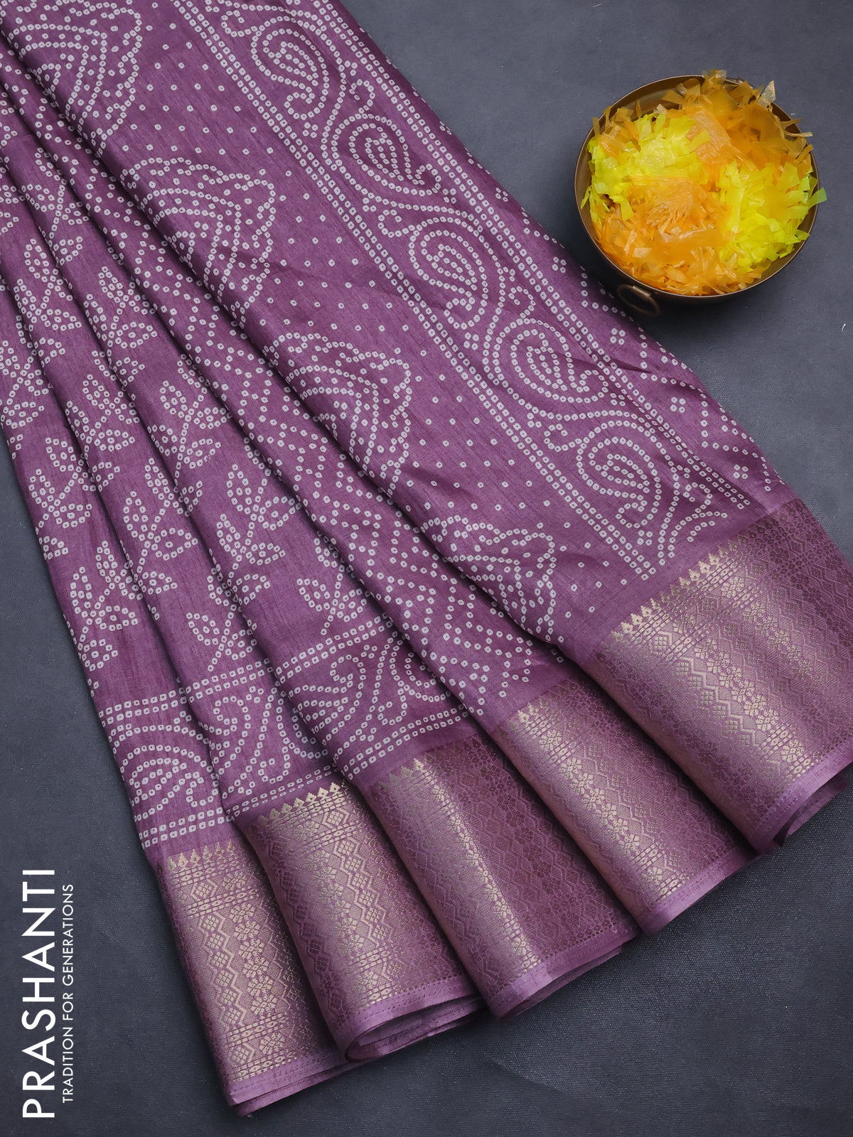 Semi dola saree mild purple with allover bandhani prints and zari woven border