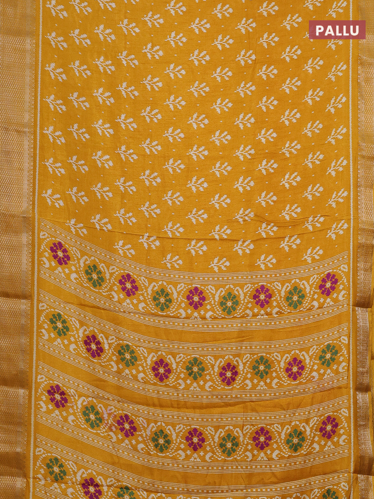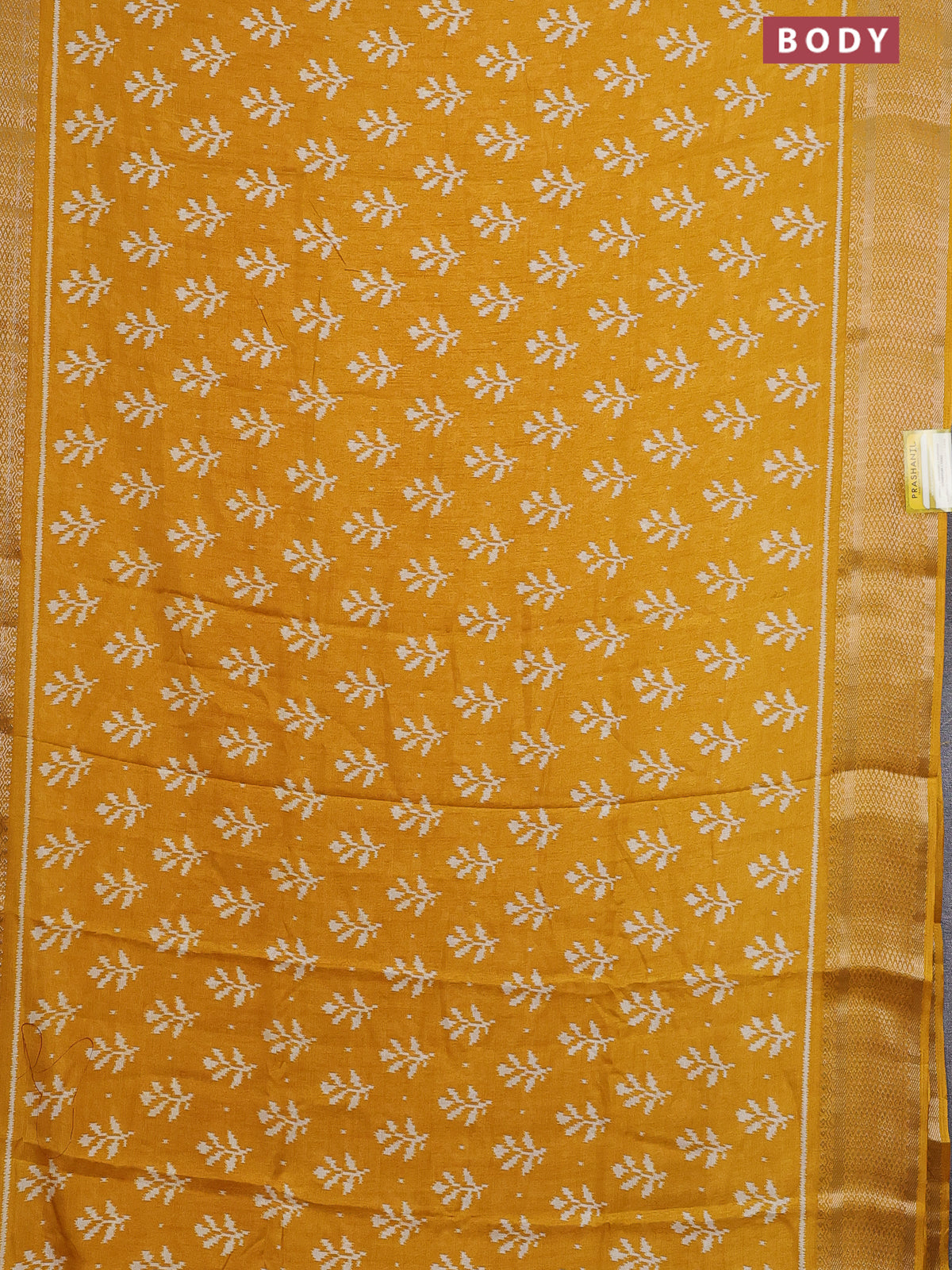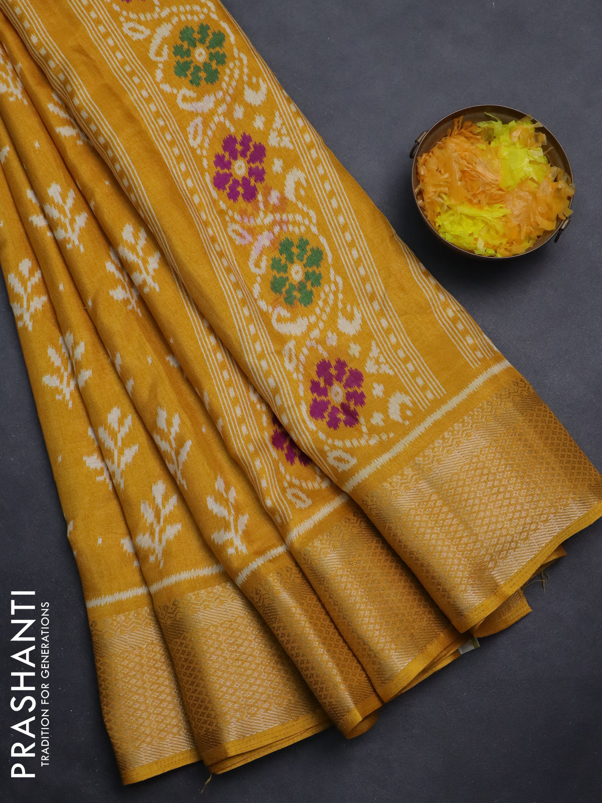 Semi dola saree mustard yellow with allover ikat butta prints and zari woven border