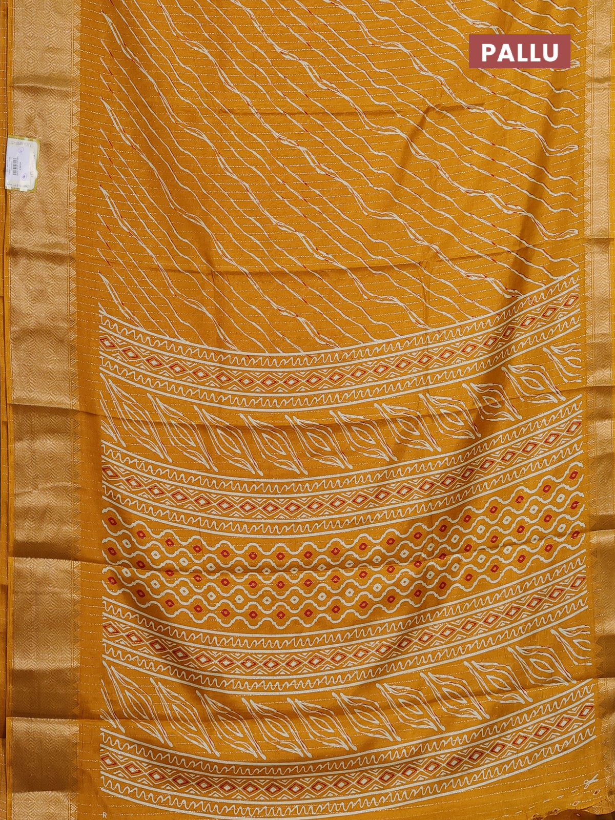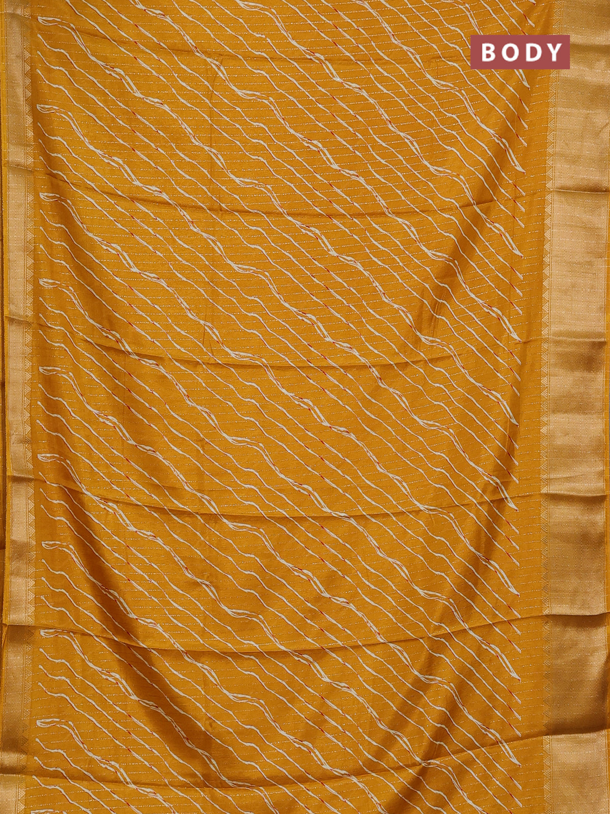 Semi dola saree mustard yellow with allover zari weaves & leheriya prints and zari woven border