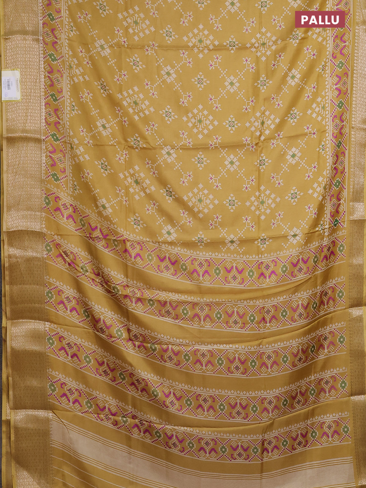 Semi dola saree pale yellow with allover prints and zari woven border