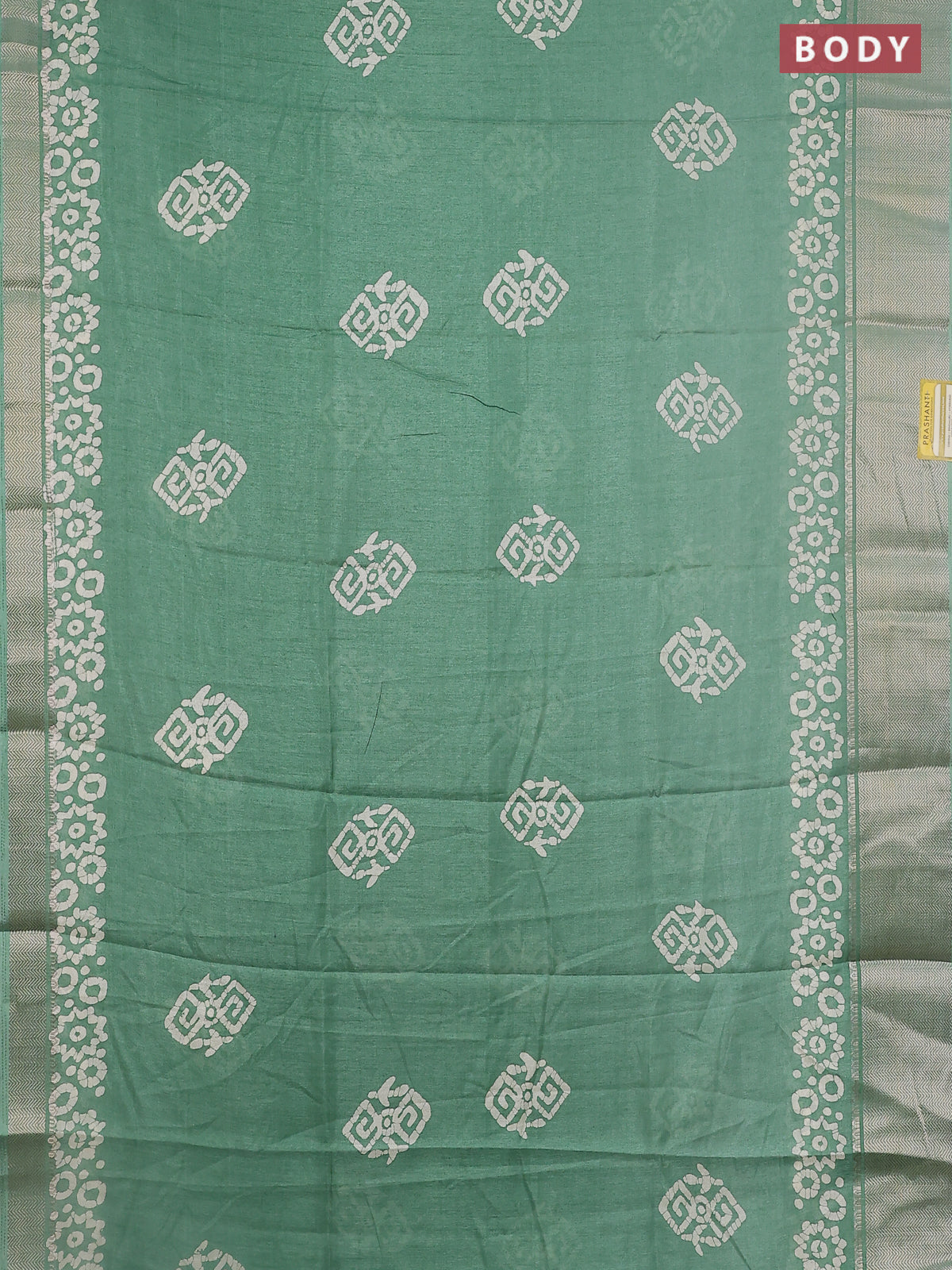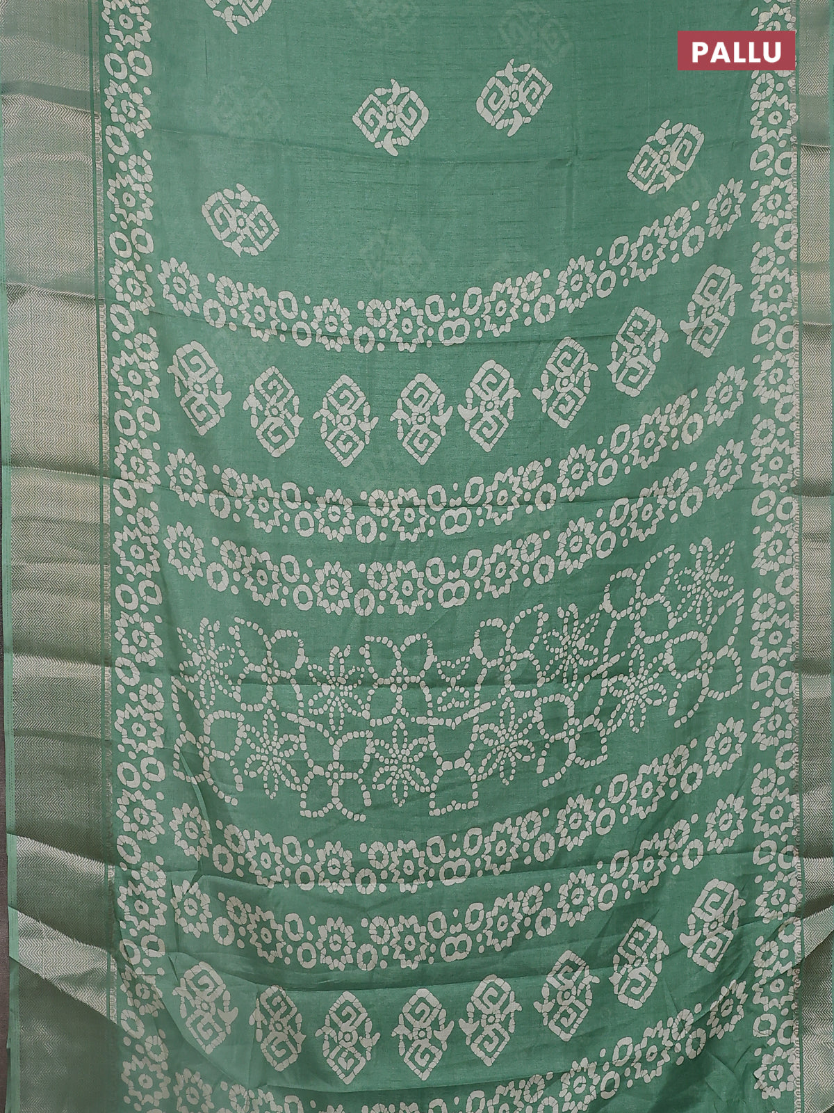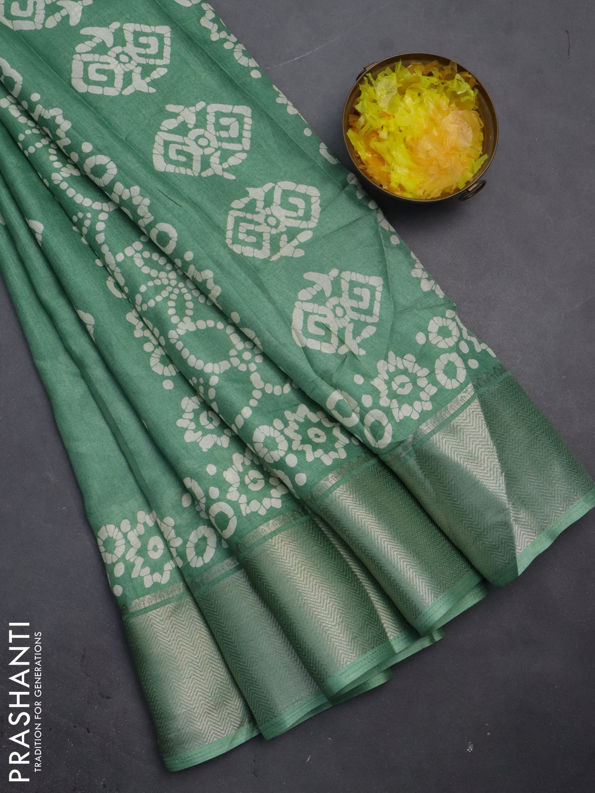 Semi dola saree pastel green with batik butta prints and zari woven border