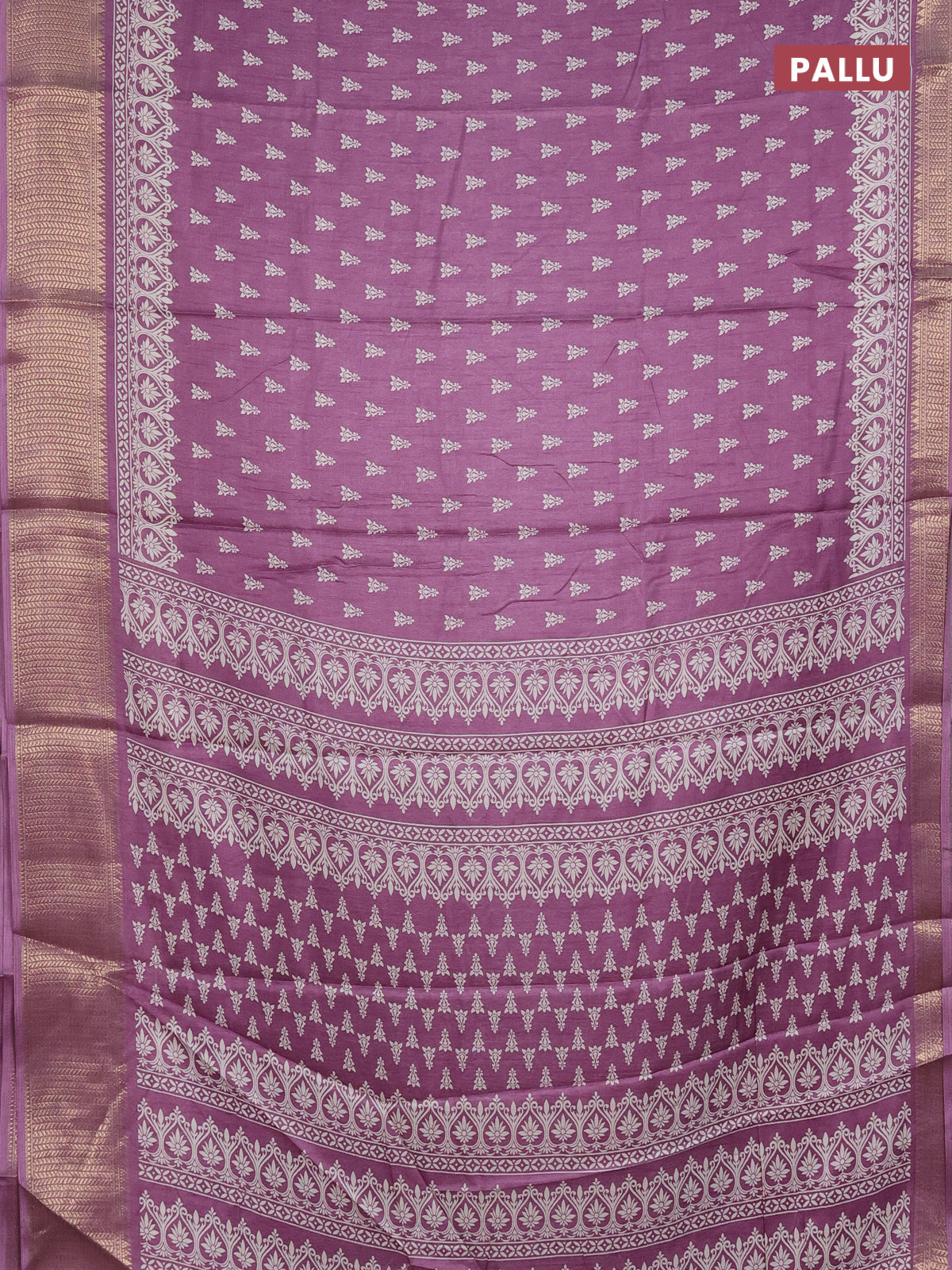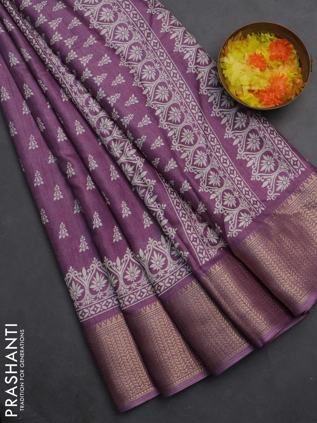 Semi dola saree pastel lavender with butta prints and zari woven border