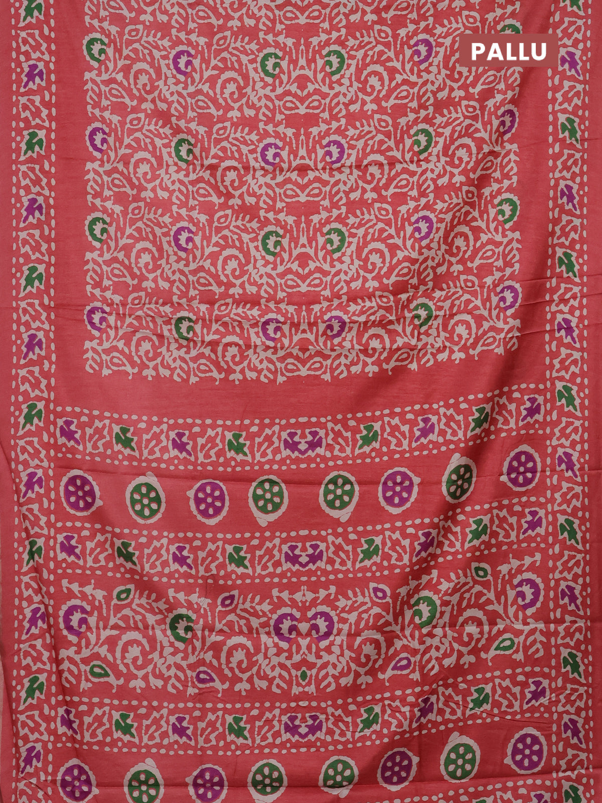 Semi dola saree peach shade with allover batik prints and zari woven border