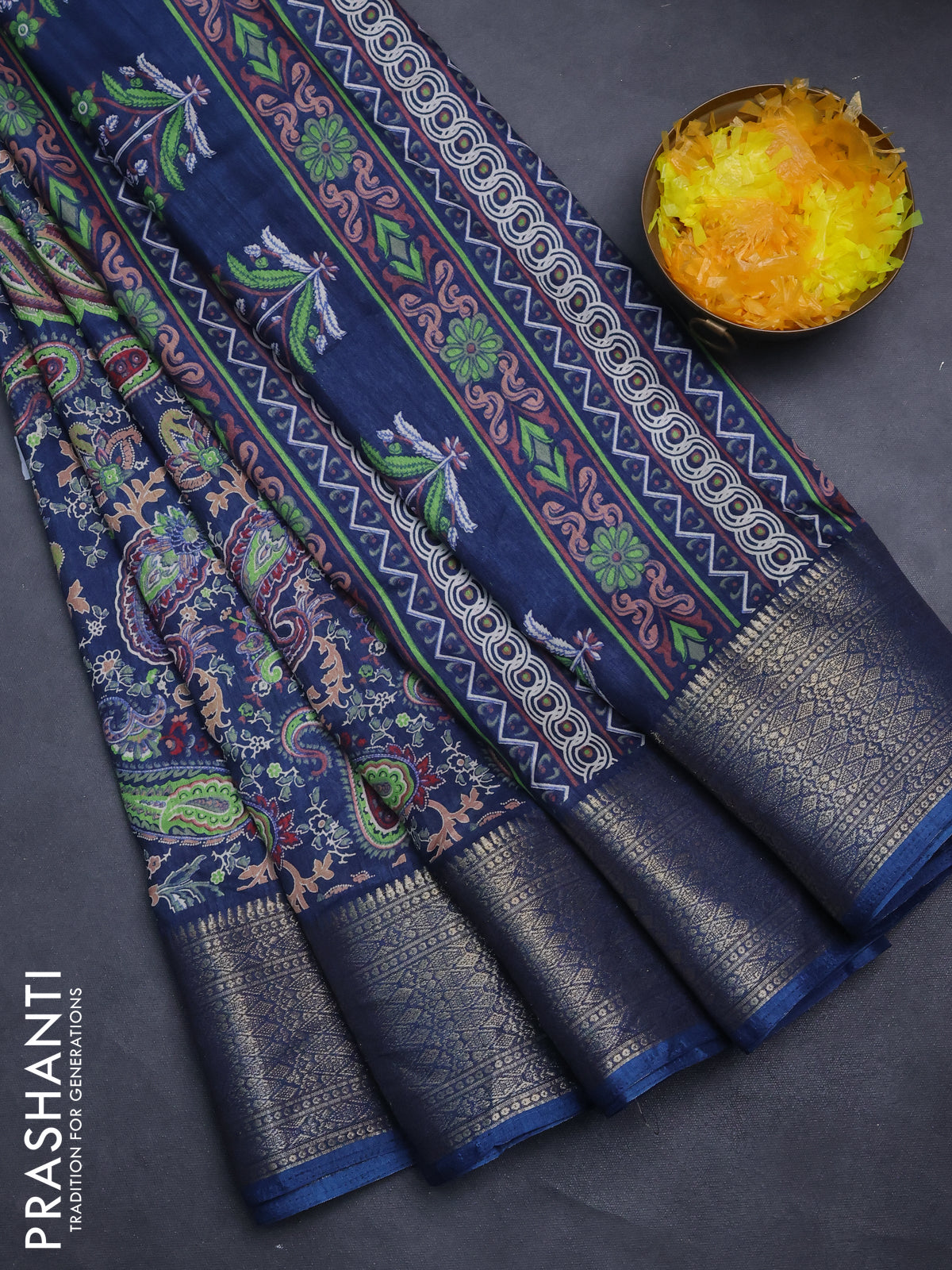Semi dola saree peacock blue with allover prints and zari woven border