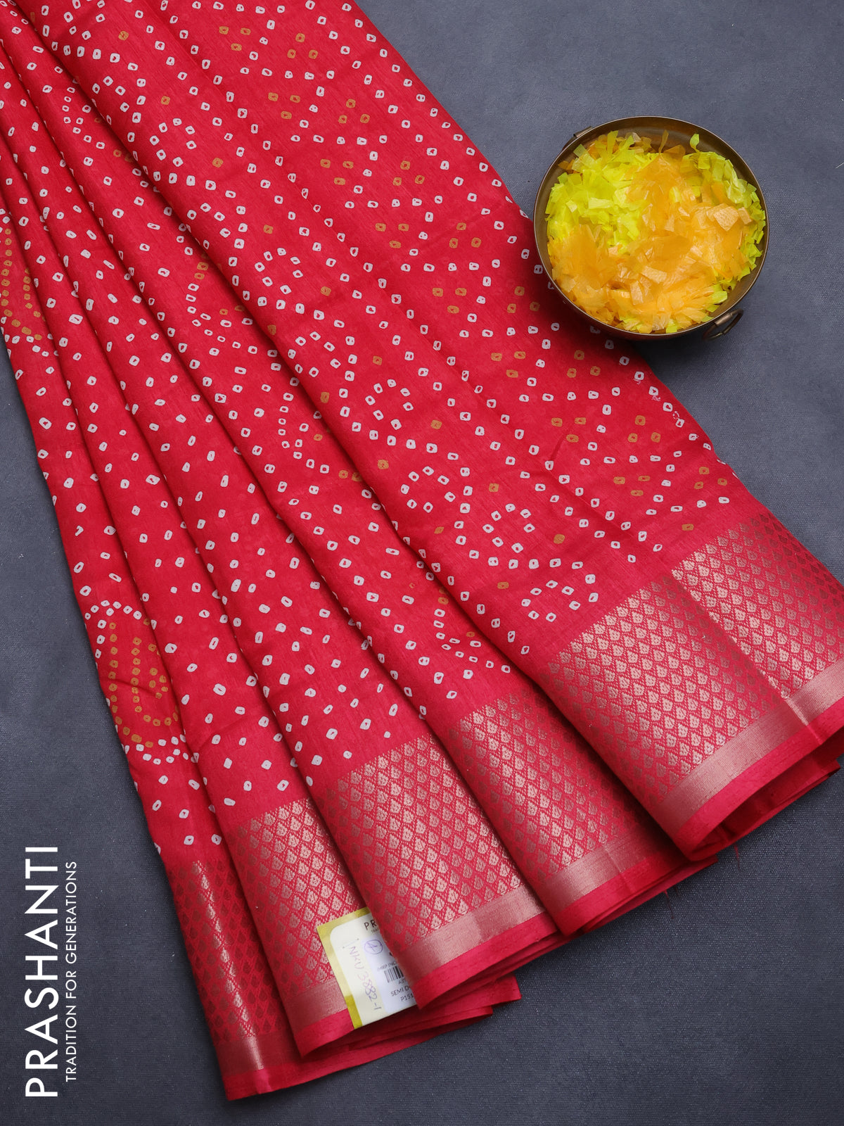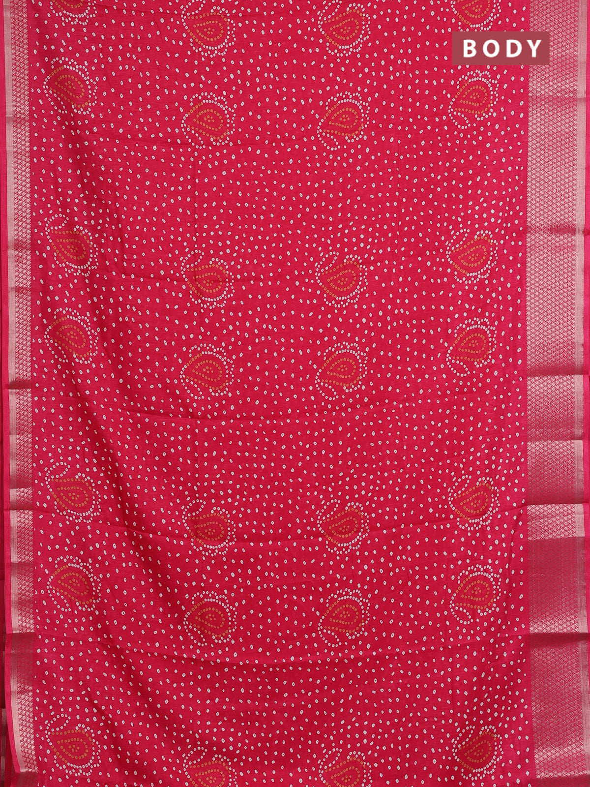 Semi dola saree pink with allover bandhani prints and zari woven border
