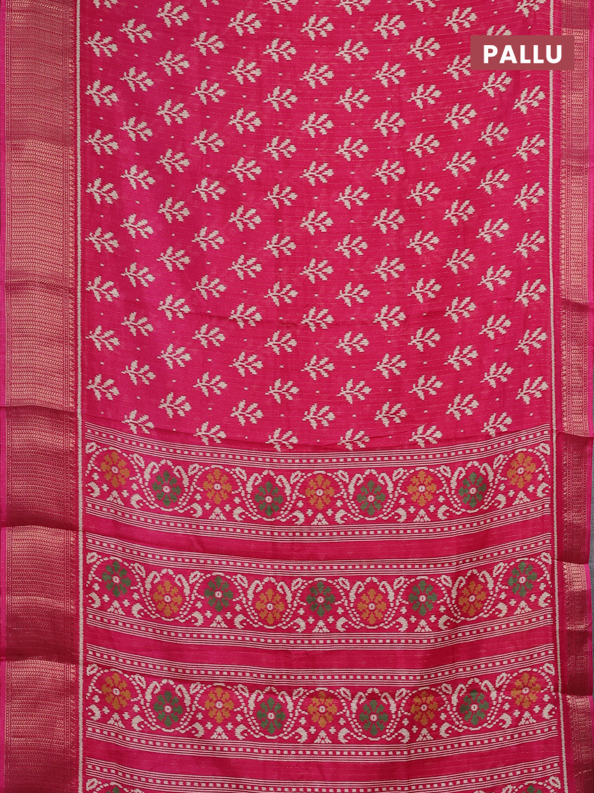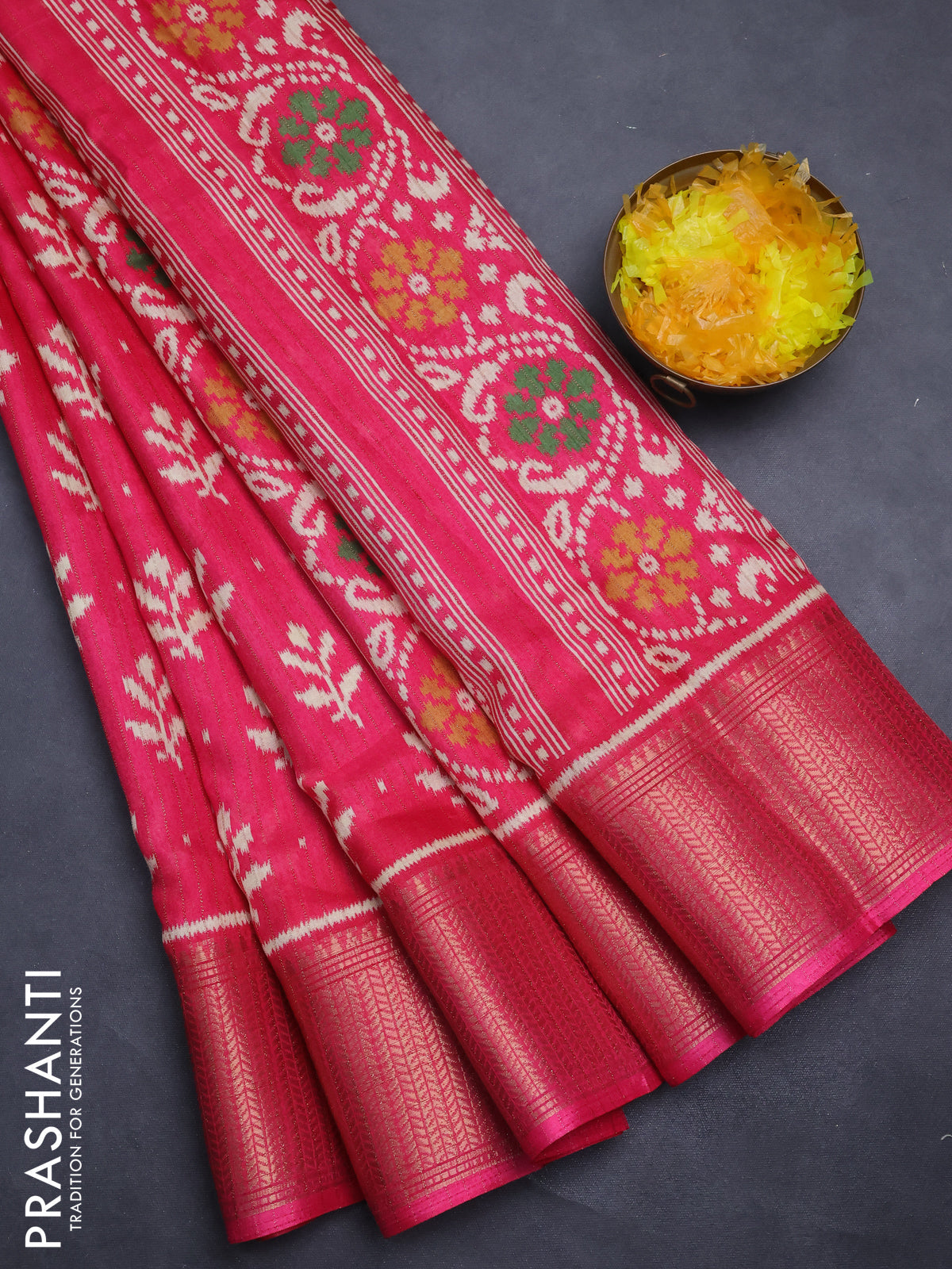 Semi dola saree pink with allover ikat butta prints & zari weaves and zari woven border