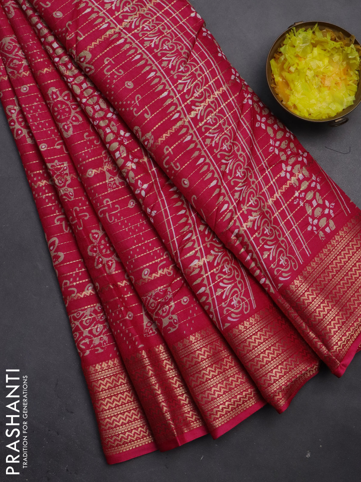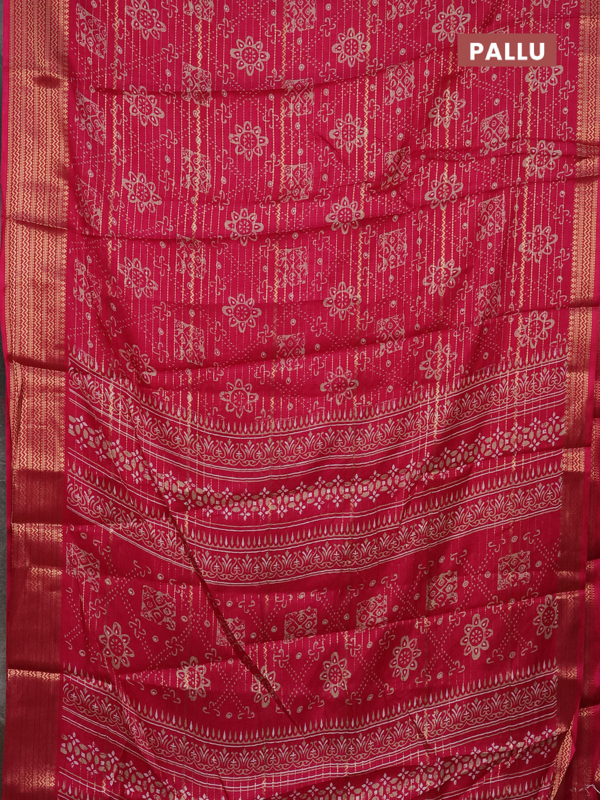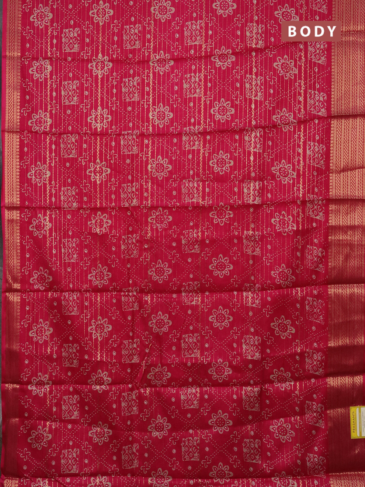 Semi dola saree pink with allover zari stripes & prints and zari woven border
