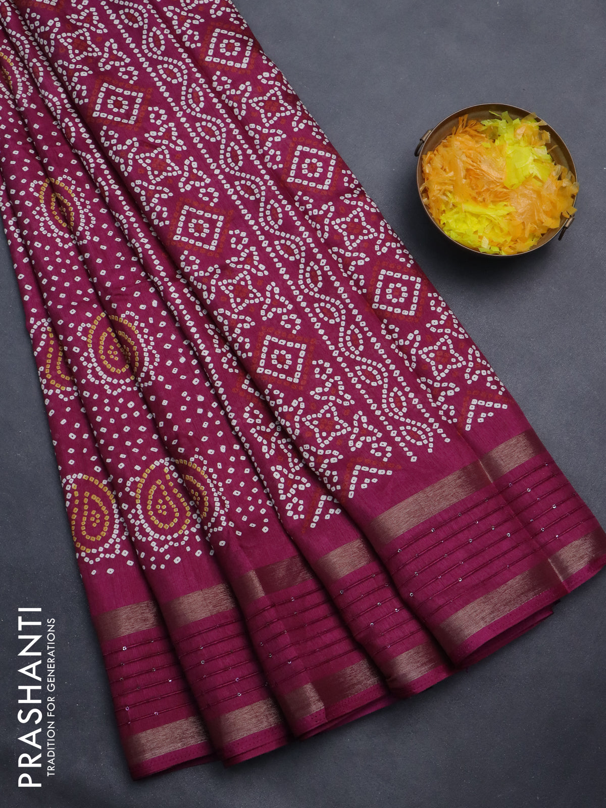 Semi dola saree purple with allover bandhani prints and sequin work border