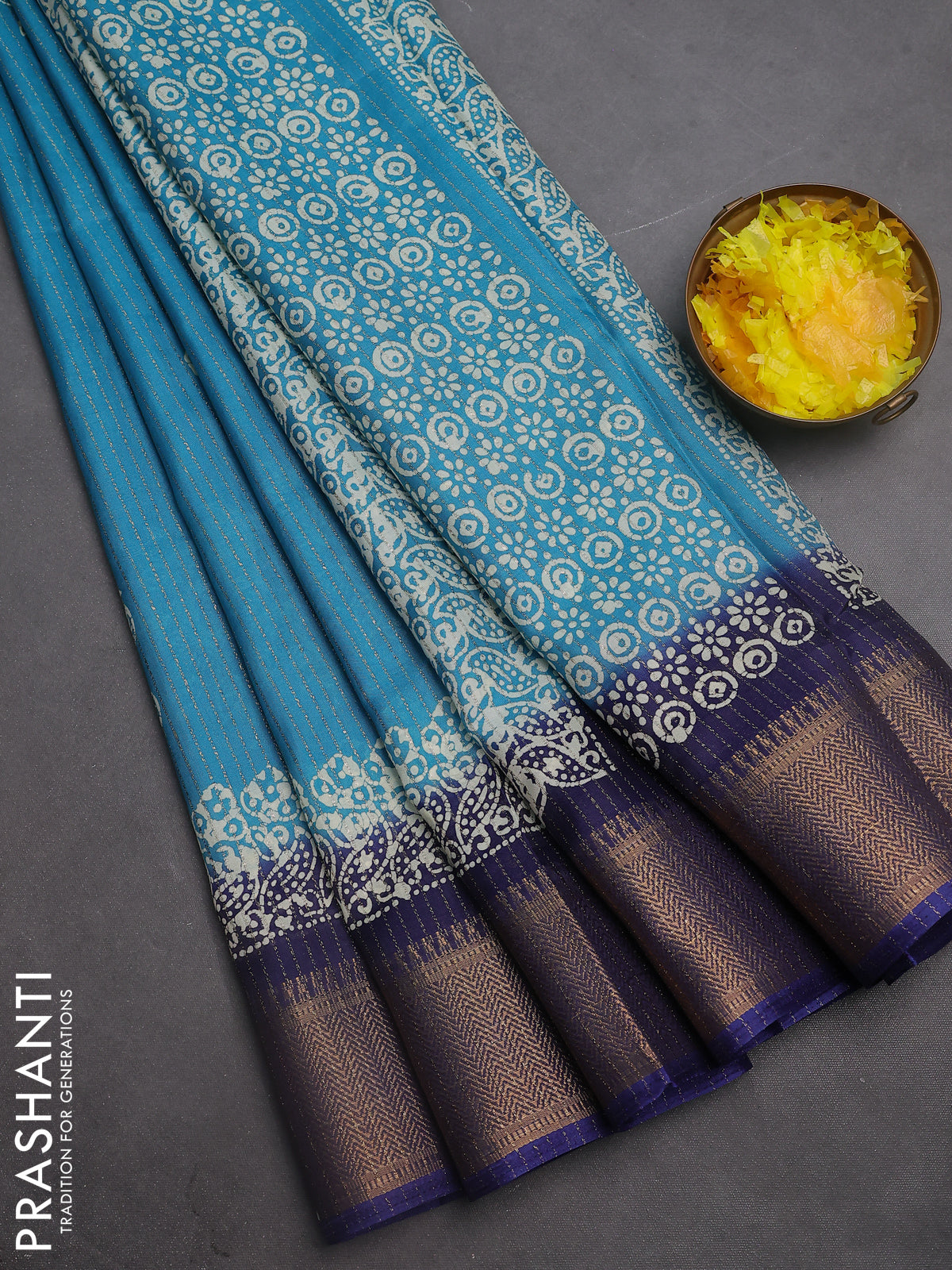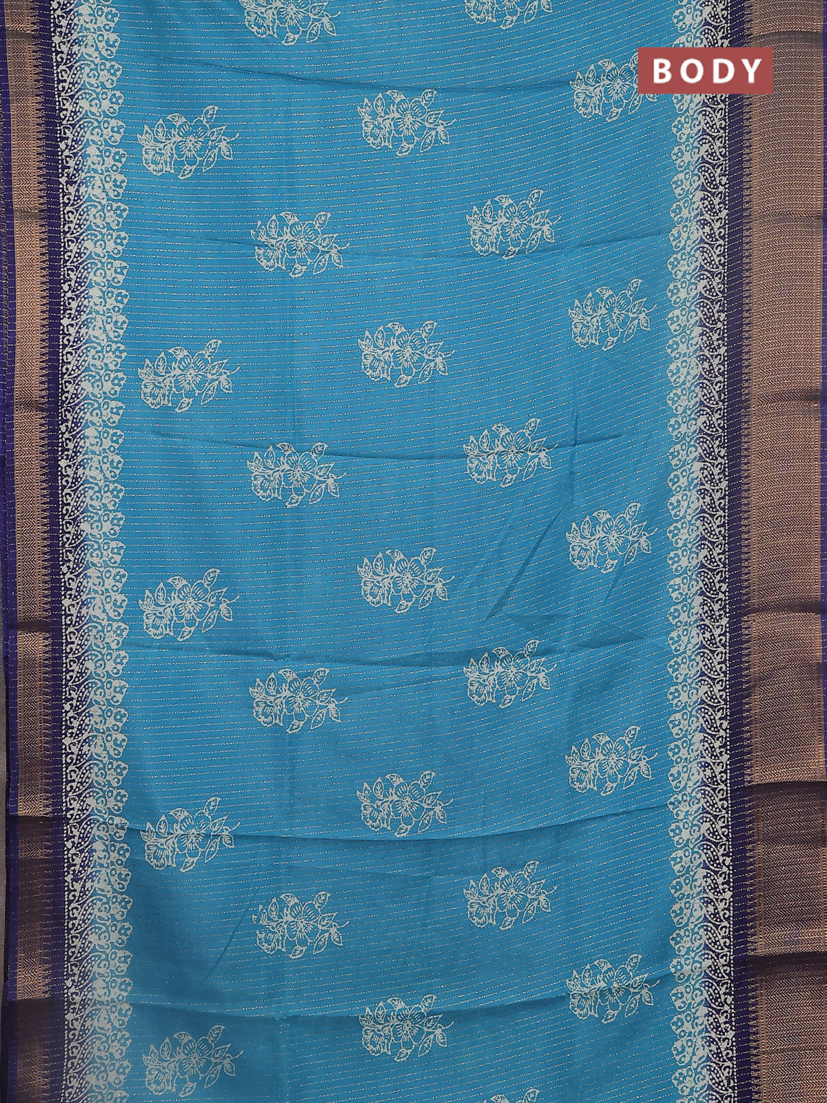 Semi dola saree teal blue and blue with zari stripes pattern & butta prints and zari woven border