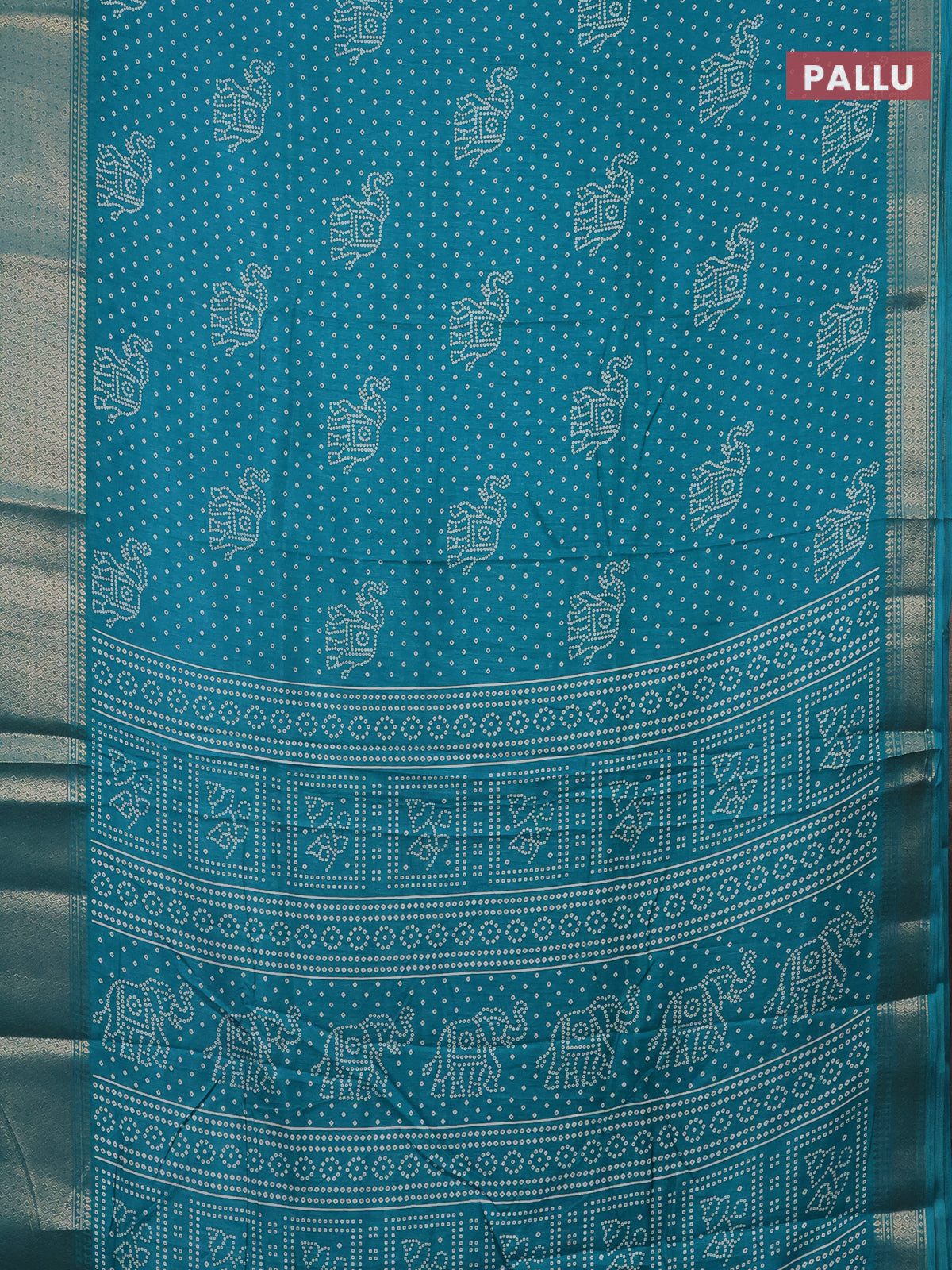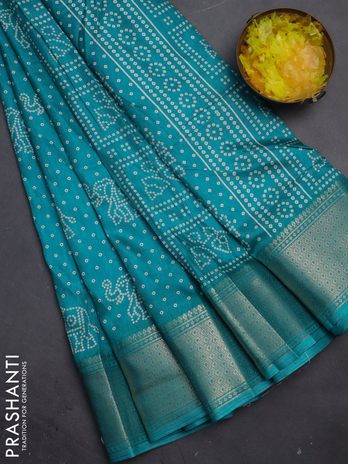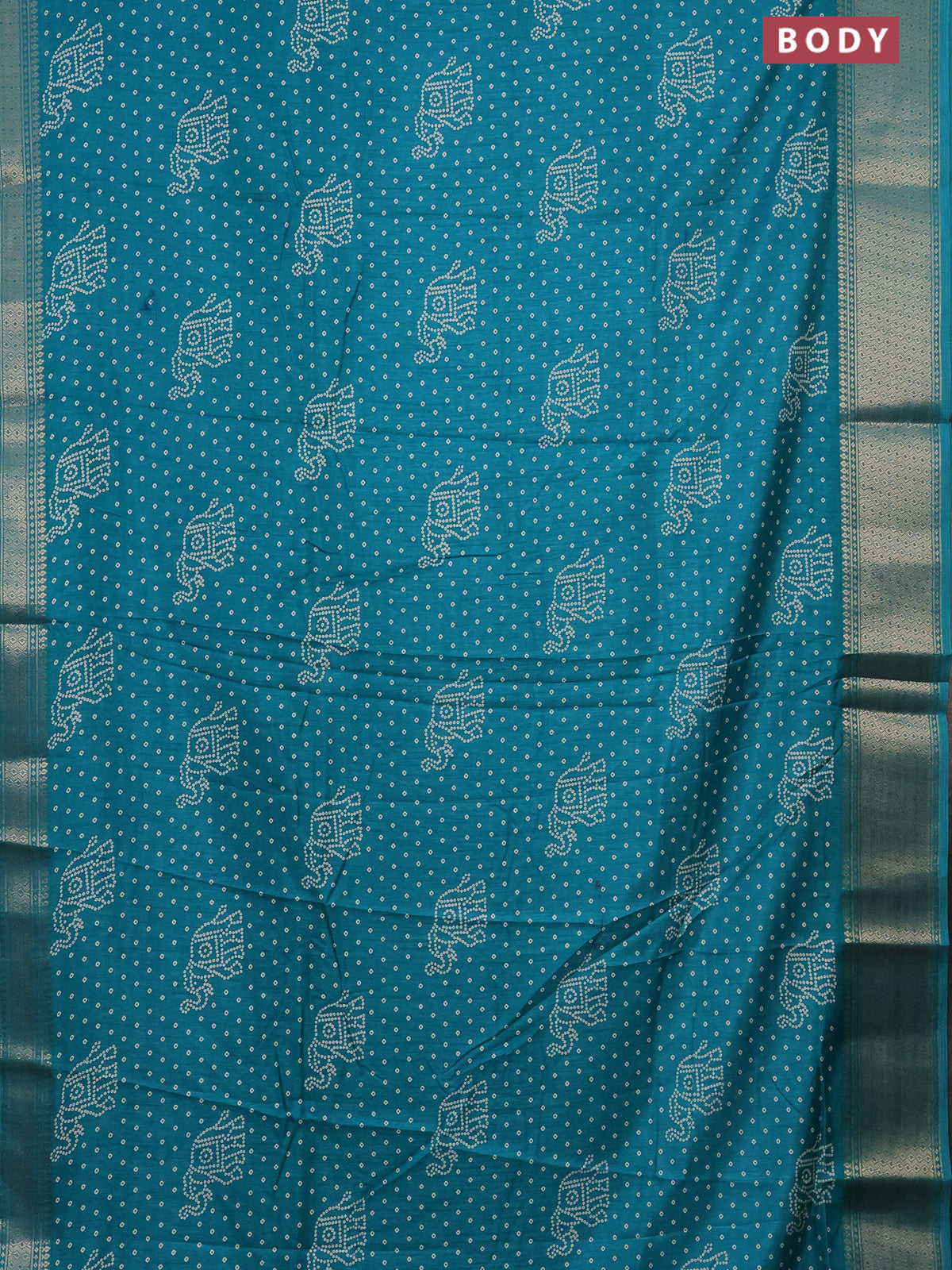 Semi dola saree teal blue with bandhani butta prints and zari woven border